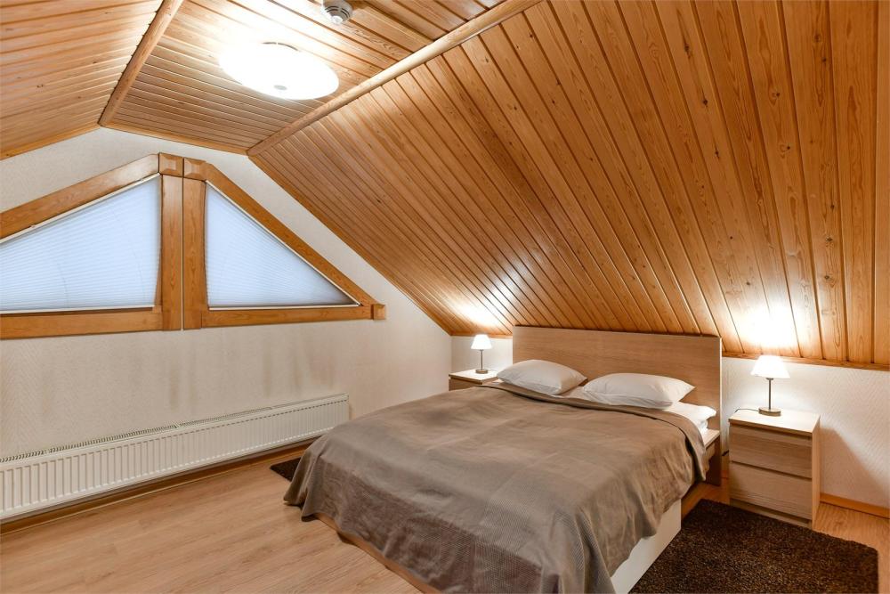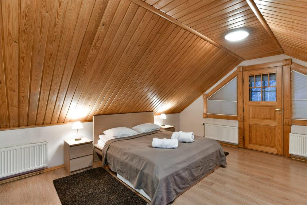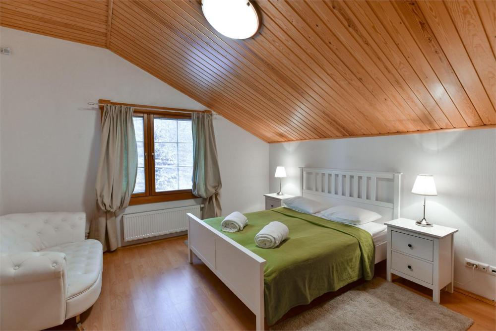 Просторный 2-этажный дом. На первом этаже - гостиная с камином и мягкой мебелью, оборудованная кухня, обеденная зона, сауна, комната для бытовых нужд и спальня. На втором этаже - 3 спальни. Интерьер и экстерьер коттеджей может отличаться от представленных фотографий. Конкретный номер дома присваивается накануне заезда.