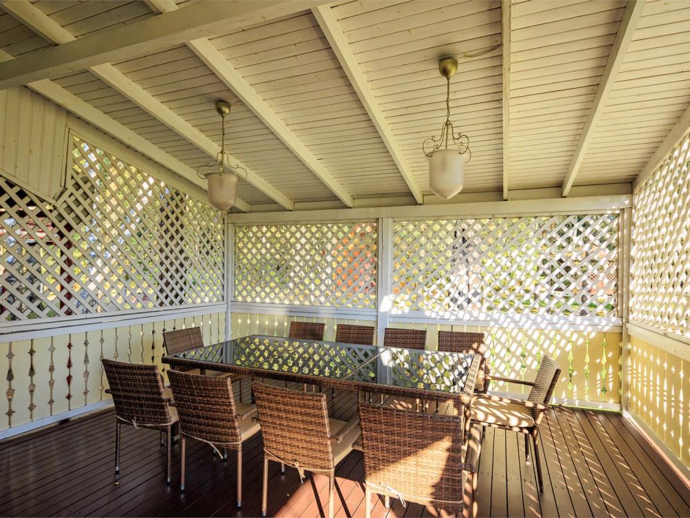 Дача с 5 спальнями, 3 с/у, каминный зал, сауна, терраса, балкон, оборудованная кухня. Гостиная со вторым светом. Интерьер и экстерьер коттеджей может отличаться от представленных фотографий. Конкретный номер дома присваивается накануне заезда.