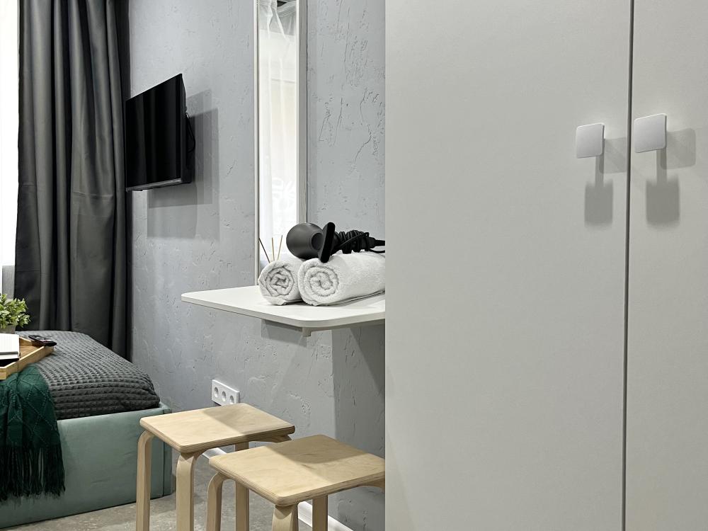 Уютная квартира-студия, расположена в Апарт-отеле «Парк Сити». Поблизости находится множество медицинских клиник, Торговый Центр, ледовая арена, 5 мин на машине до исторического центра города. Хороший район с развитой инфраструктурой. Апартаменты оснащены: телевизор, кабельное ТВ, WI-FI; фен, утюг, гладильная доска, холодильник, чайник, плита, микроволновка, посуда, кухонные принадлежности; чистое постельное бельё, полотенца.