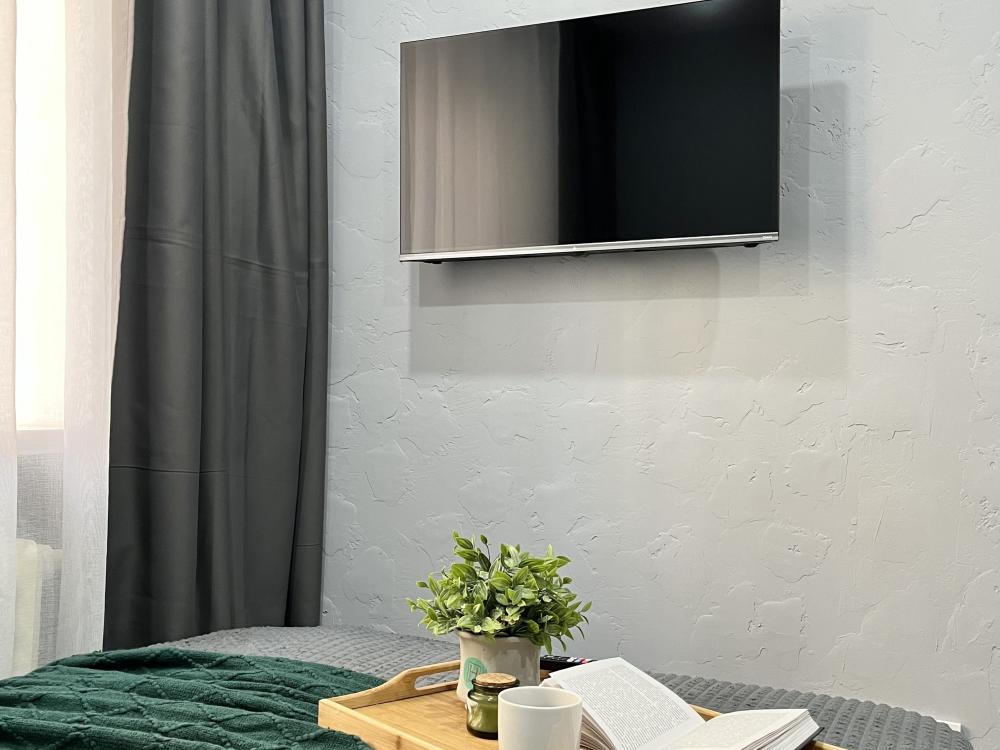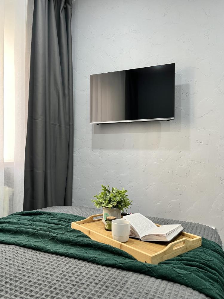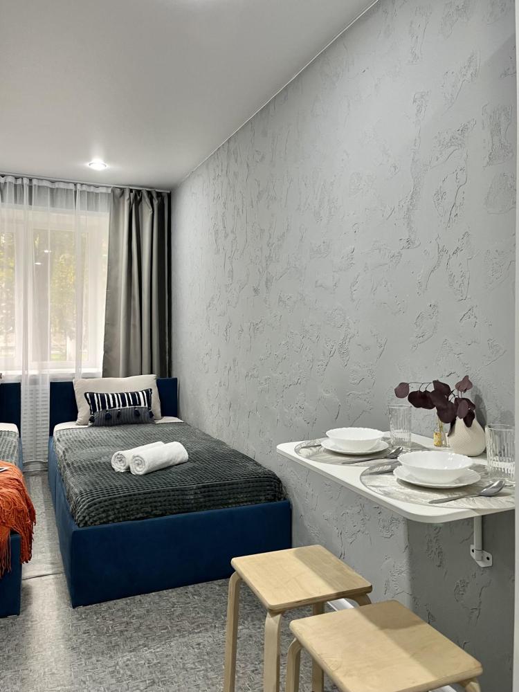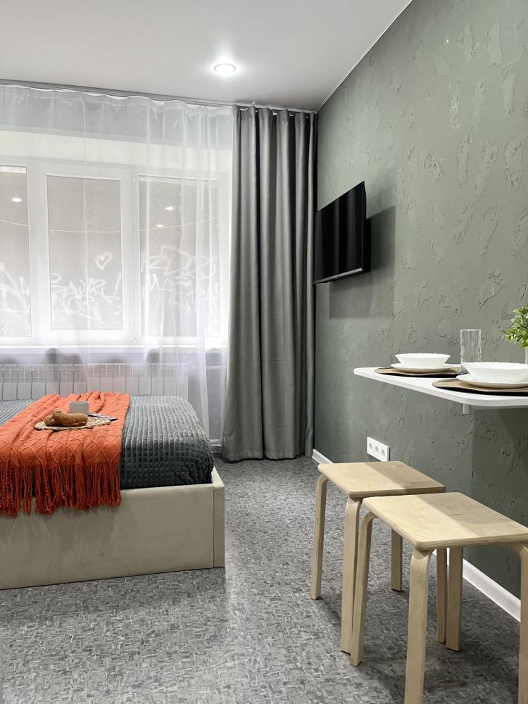 Уютная квартира-студия. Поблизости находится множество медицинских клиник, Торговый Центр, ледовая арена, 5 мин на машине до исторического центра города. Хороший район с развитой инфраструктурой. Апартаменты оснащены: телевизор, кабельное ТВ, WI-FI, фен, утюг, гладильная доска, холодильник, чайник, микроволновка, посуда, кухонные принадлежности, чистое постельное бельё, полотенца.