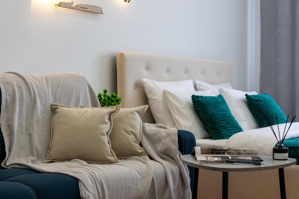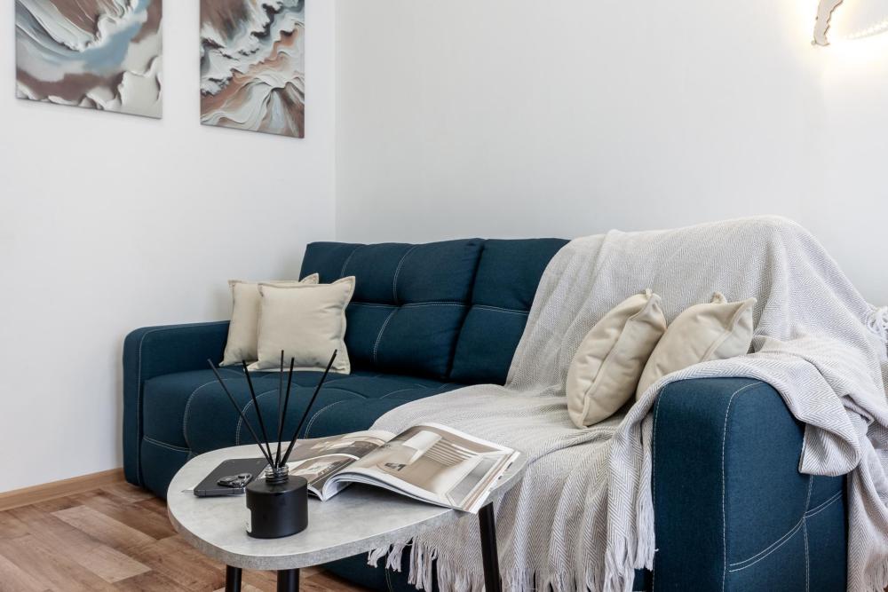 - Мягкий диван, где приятно почитать книгу или посмотреть фильмы вечерами, для этого у нас подключены кинотеатры Окко и Старт, работает YouTube.