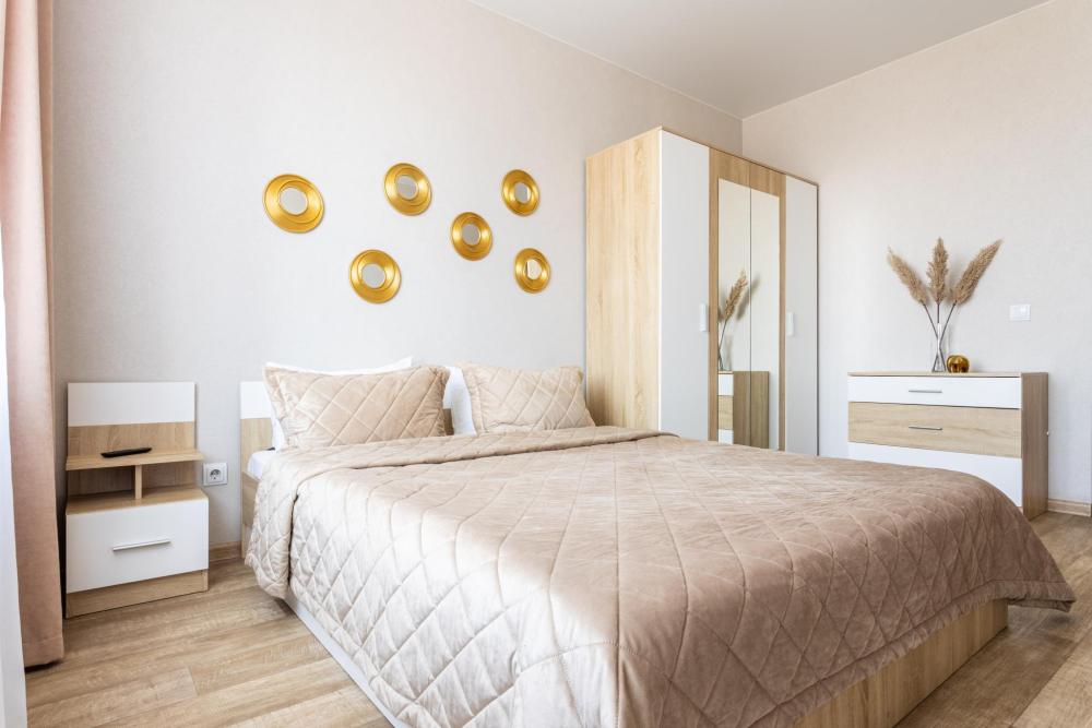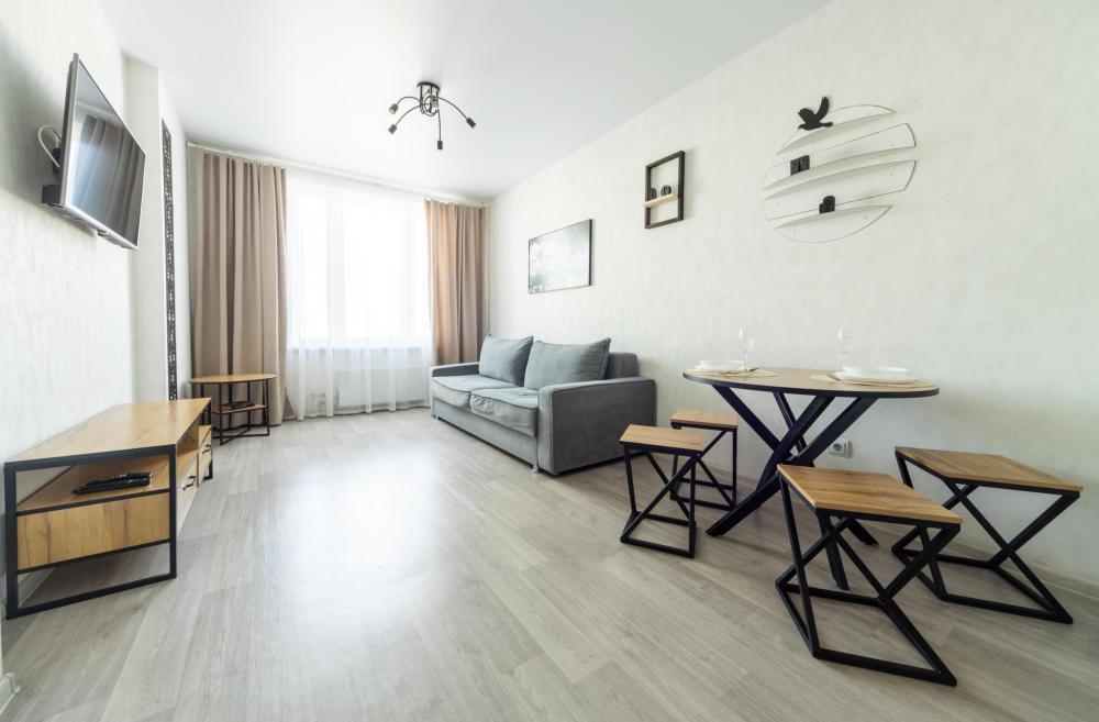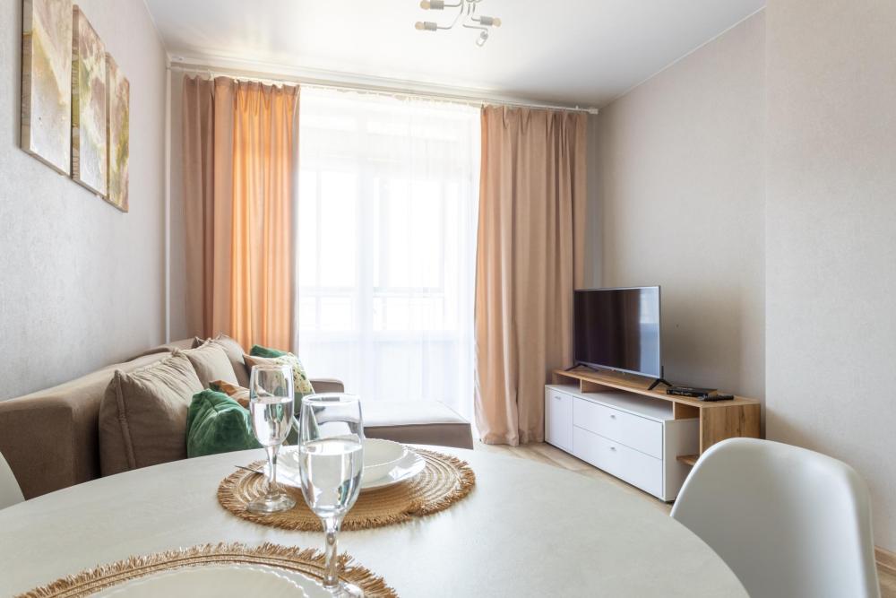 Новый дом в ЖК «Притяжение» предусмотрено все для комфортной жизни: система «Умный Дом», видеонаблюдение как с внешней, так и с внутренней стороны дома, большой, зеленый двор как для игр с детьми, так и для занятий спортом. Выход на террасы, имеется подземный паркинг (оплачивается отдельно). В квартире абсолютно все новое, свежий ремонт и продуманно все для вашего комфортного пребывания, а именно: Кухня - просторная, светлая - укомплектована всей необходимой посудой: тарелки, стаканы, бокалы, штопор, столовые приборы, кастрюля, сковорода, а также техникой: чайник, холодильник, микроволновая печь, электрическая плита и духовка; Спальня - отдельная комната с 2-х спальной кроватью, удобным матрасом. Есть постельное белье, одеяла и подушки. На стене плазменная панель. Есть большой шкаф для вещей, комод и тумбы около кровати; 3. Ванная комната - есть все туалетные принадлежности: зубной набор, шампунь, мыло, гель для душа, туалетная бумага, фен, полотенца. Есть стиральная машинка, утюг, гладильная доска и сушилка также есть в квартире; 4. Гостиная - есть телевизор на тумбе, удобный диван, который раскладывается и превращается в дополнительную 2-х спальную кровать, есть еще один комод для одежды; 5. В квартире есть балкон. С 15-ого этажа прекрасный вид открывается на весь город. Во всей квартире бесплатный Wi-Fi.