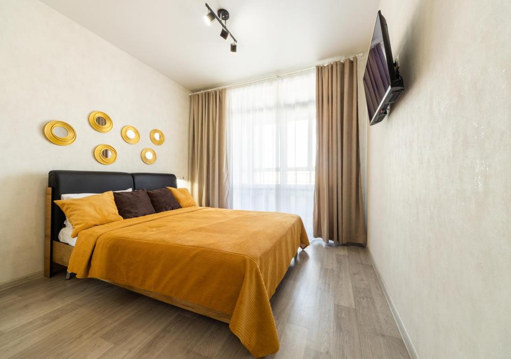 Апартаменты бизнес-класса на улице 78-й Добровольческой Бригады. В квартире шикарный ремонт, абсолютно новая мебель и бытовая техника. Есть все необходимое для комфорта: хорошее постельное белье, белоснежные полотенца, бесплатный зубной набор и набор для душа, фен, утюг, кондиционер, посудомоечная машина, гладильная доска, сушилка и вся необходимая посуда, кабельное ТВ, Wi-Fi.