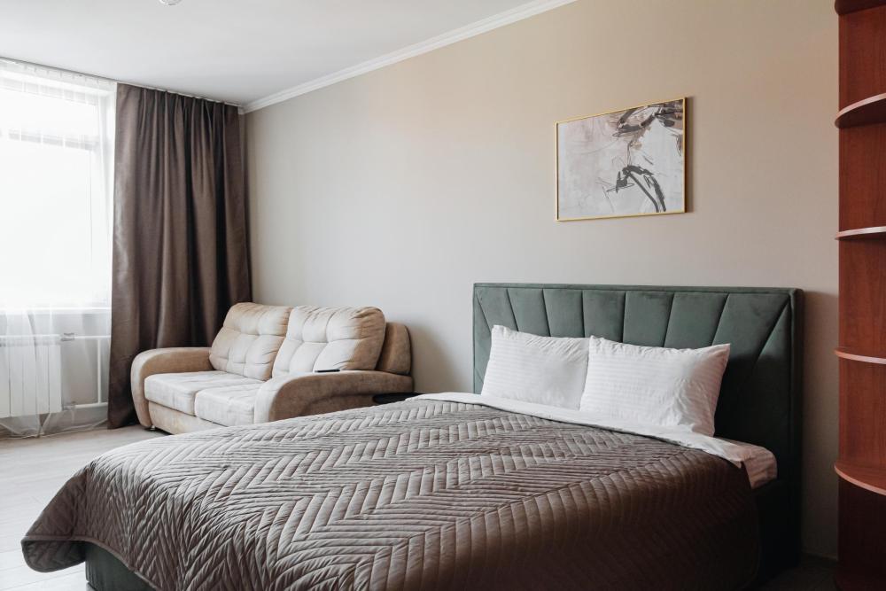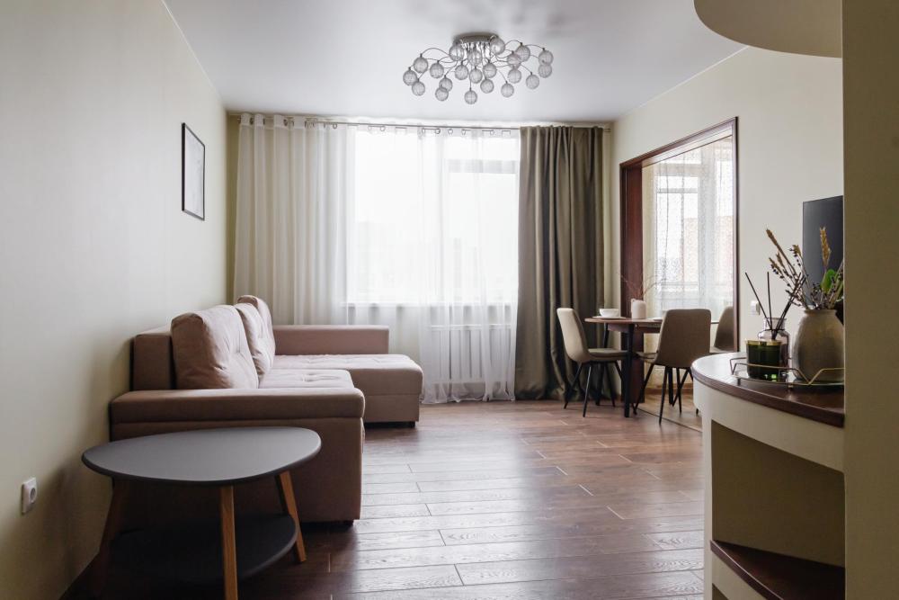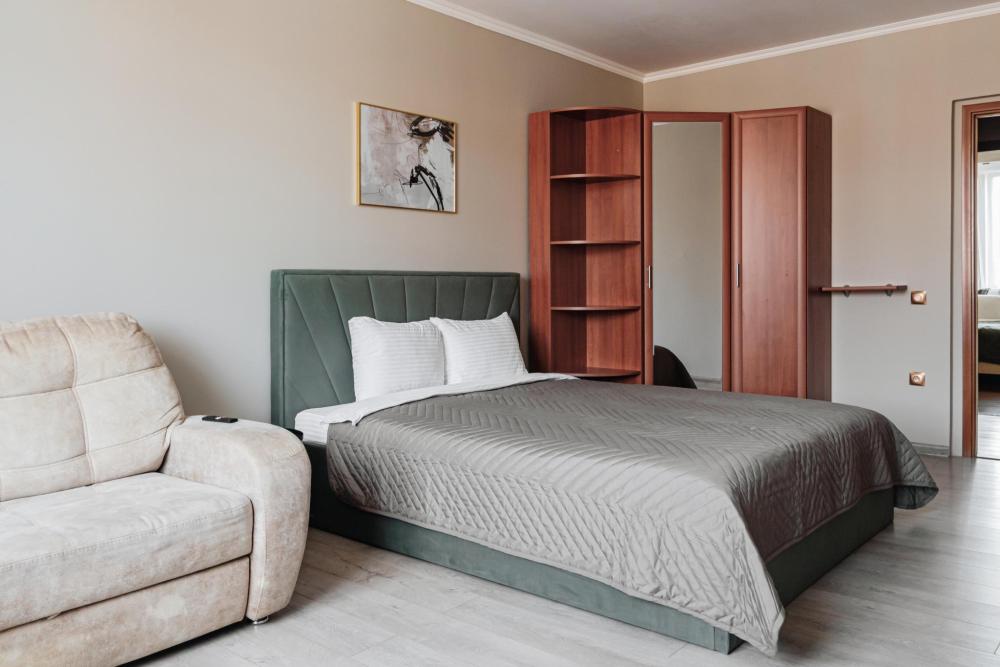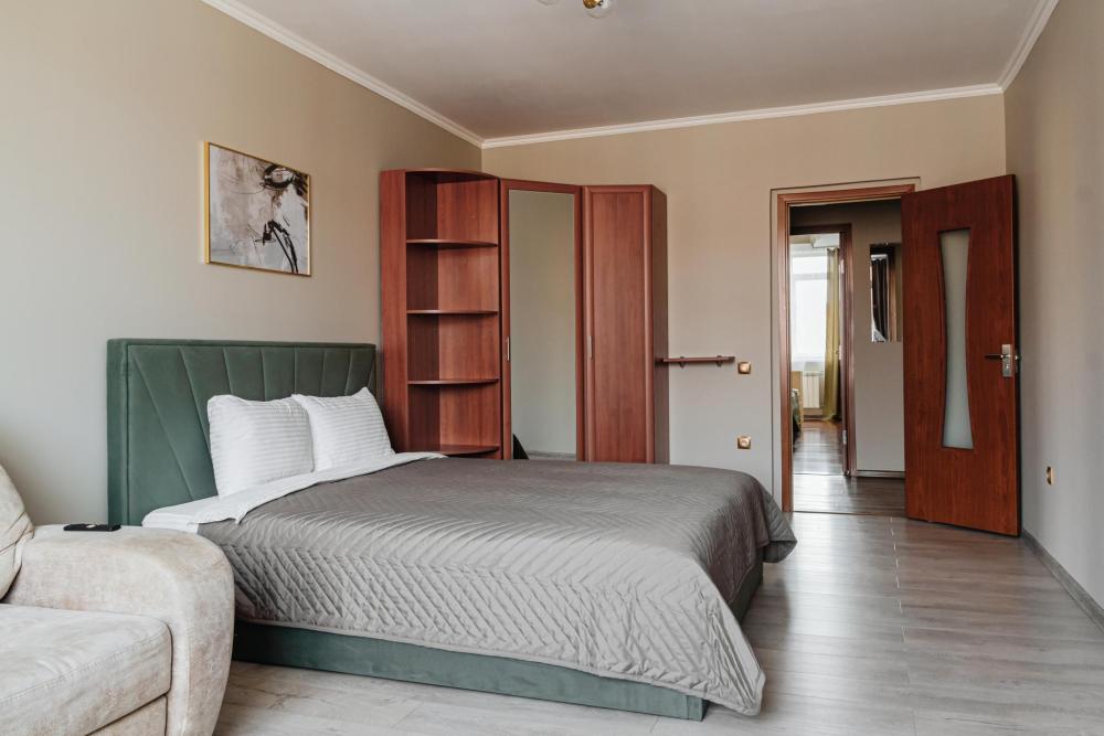 Дорогой гость, рады приветствовать Вас в сети апартаментов "Матрёшкин ДОМ". У нас всегда тепло, уютно и чисто. Ведь мы знаем толк в гостеприимстве! Просторная трехкомнатная квартира комфорт-клacca в пешей доступности от ТРЦ "Планета". ЖК расположен в тихом районе, с комфортной транспортной развязкой. Расстояние до аэропорта 40 км (40 минут езды), до ЖД вокзала 17 км (30 минут), 700 м до ТРЦ Планета, до центра города 9 км (25 минут), до острова Татышев Парк 6 км (10 минут). В квартире есть все необходимое для комфортного проживания до 8 человек: стиральная машина, холодильник, микроволновая печь, электроплита, чайник. Вся посуда и бытовая химия, фен для волос. Кабельное телевидение и высокоскоростной безлимитный Wi-Fi. Два телевизора smаrt ТV. Гостям доступно 4 спальных места: две 2-спальные кровати, с удобными ортопедическими матрасами, два дивана-кровати. А так же постельные принадлежности, полотенца, гигиенические наборы. Чай, кофе и сладости.