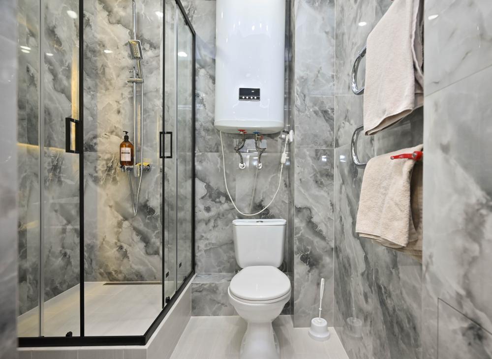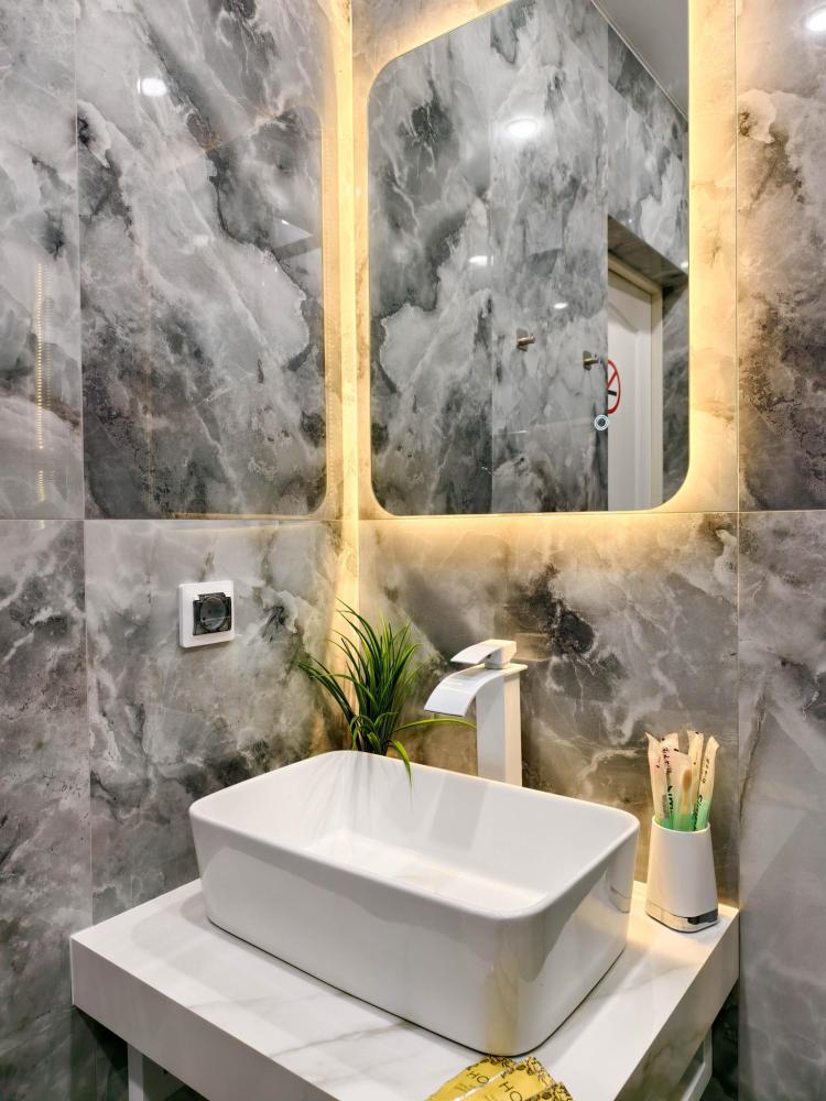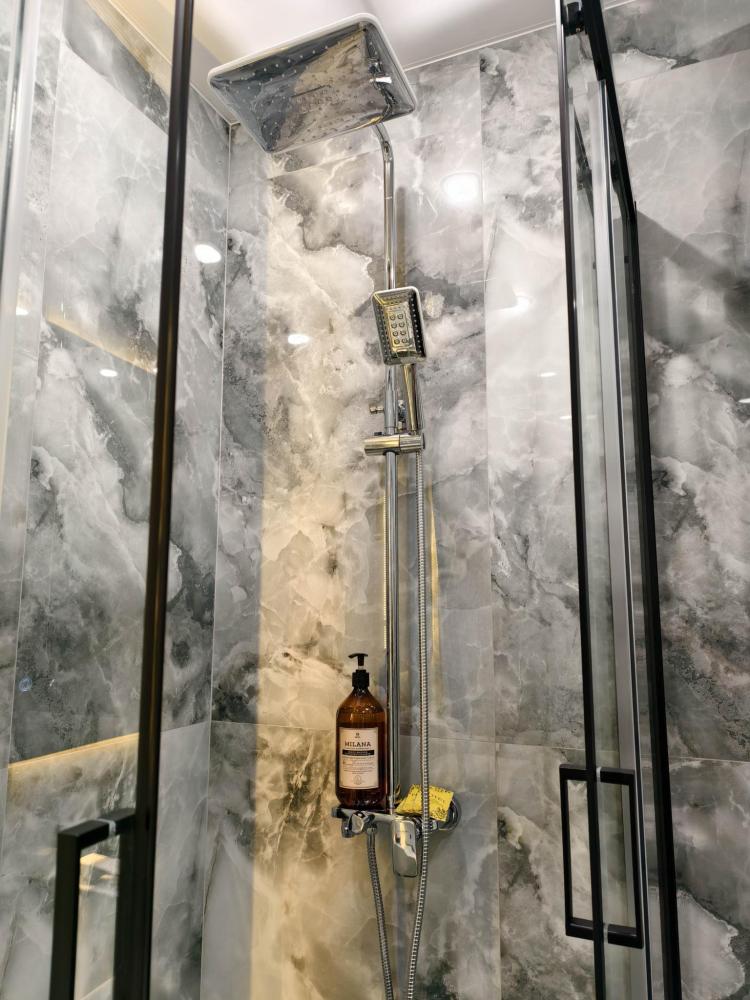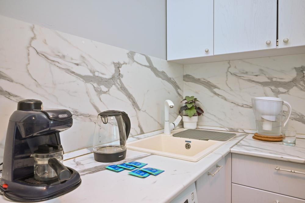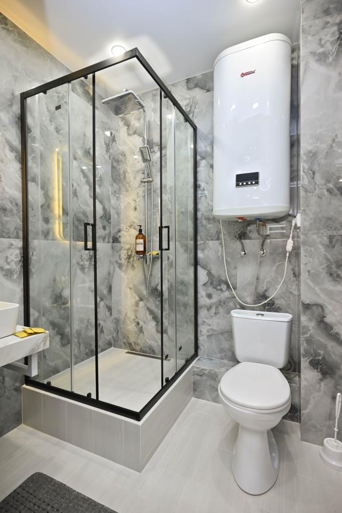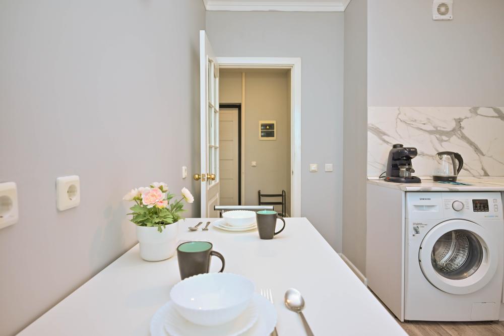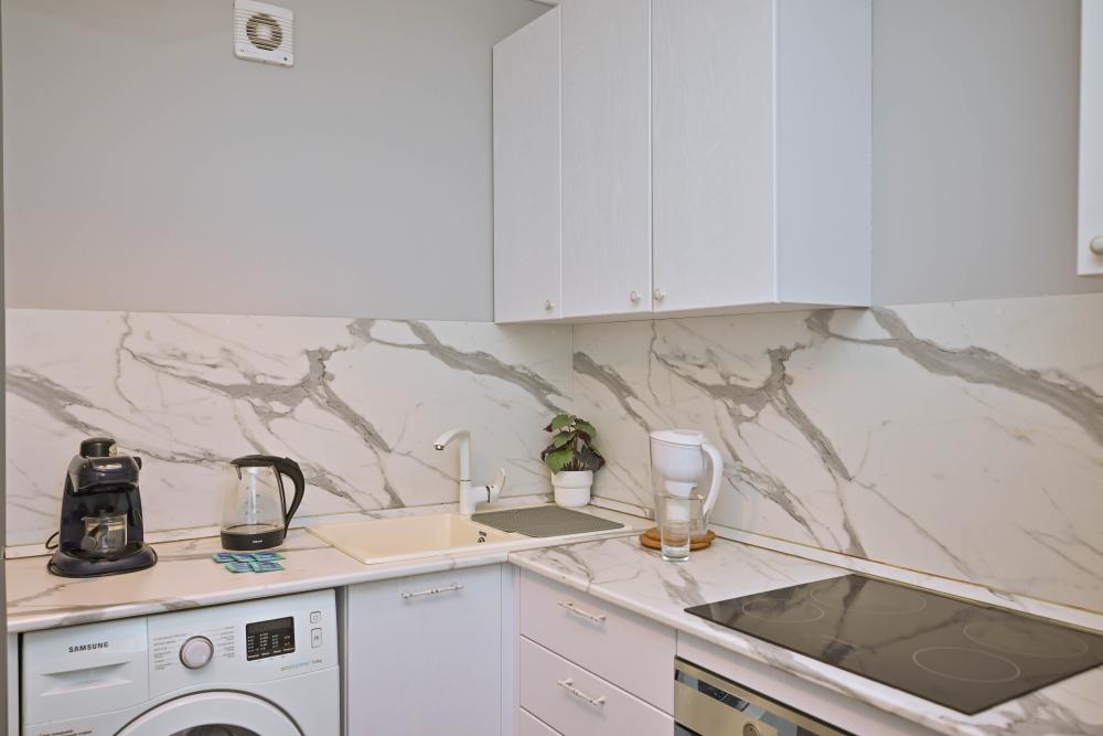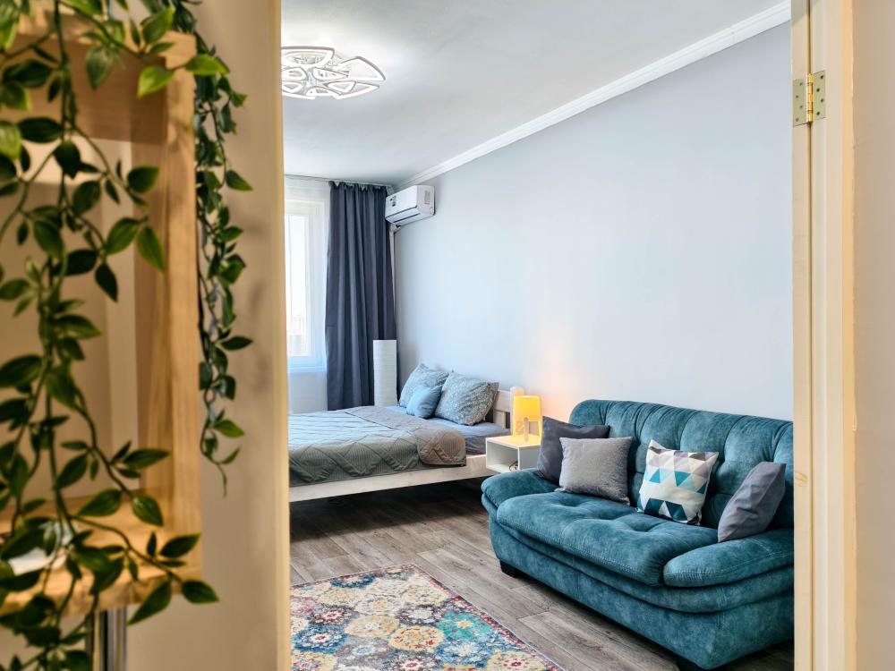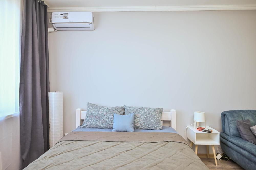 В квартире есть всё необходимое для проживания. В большой комнате находится: двуспальная кровать с комфортным ортопедическим матрасом; прикроватная тумба; диван с ортопедическим основанием и матрасом; телевизор с большим выбором каналов; большой комод для вещей; гладильная доска с утюгом. Для хранения верхней одежды предусмотрена гардеробная с зеркалом в полный рост. Кухня в современном дизайне имеет все удобства для приготовления пищи. Большой балкон с красивым видом на город . Ванная комната оснащена белоснежным санфаянсом со всеми удобствами.