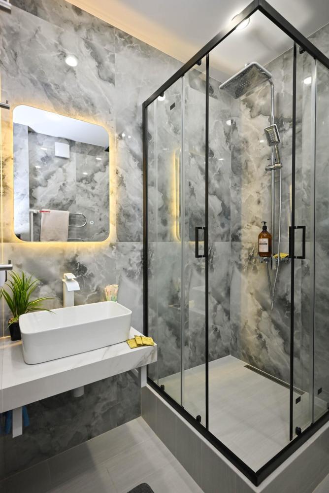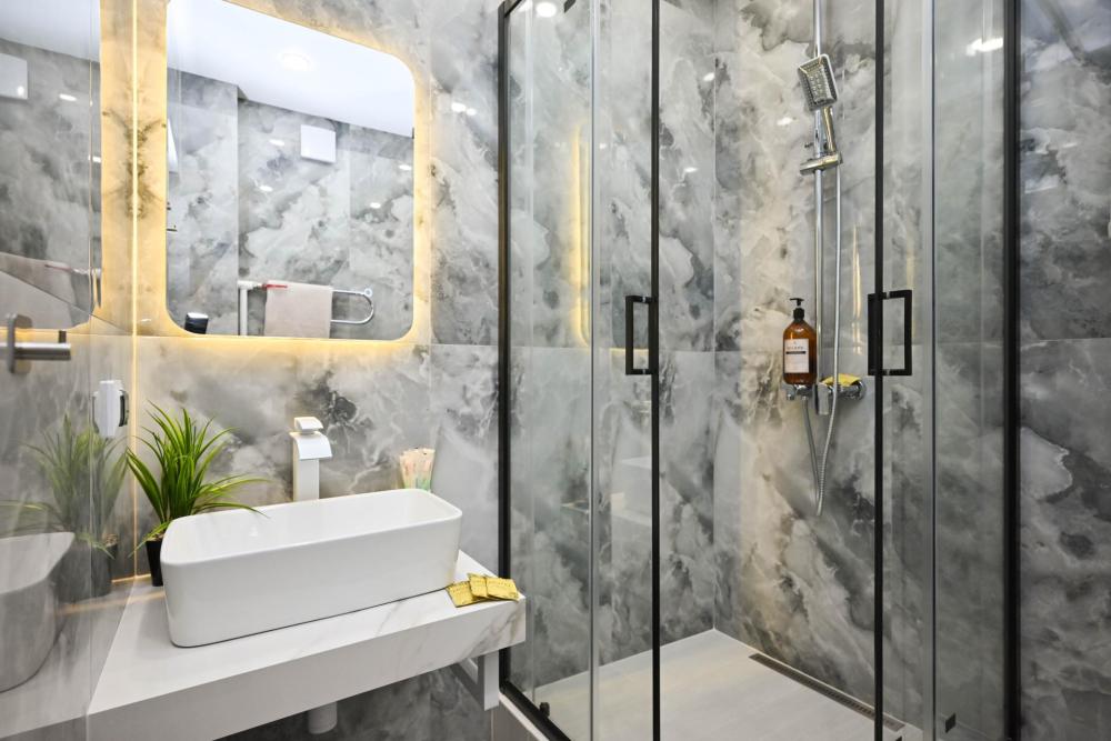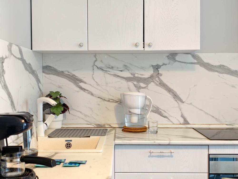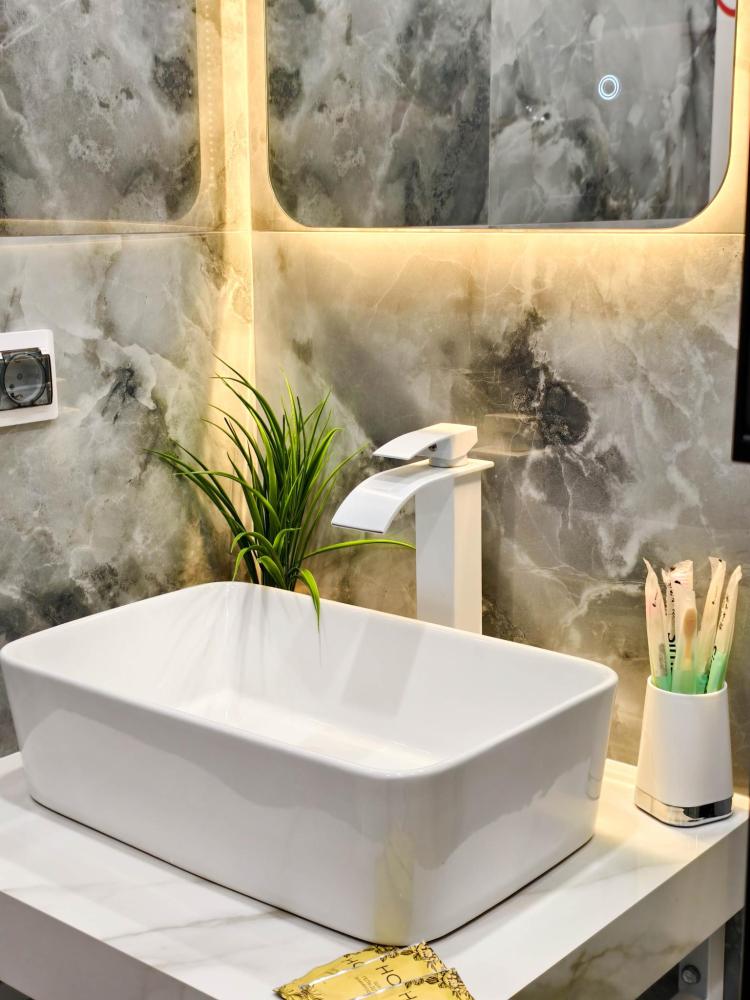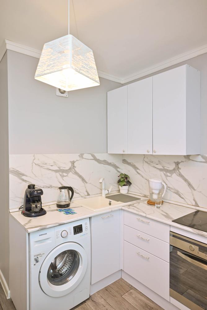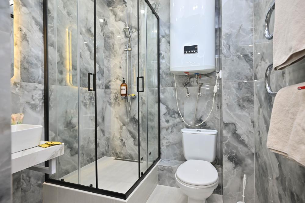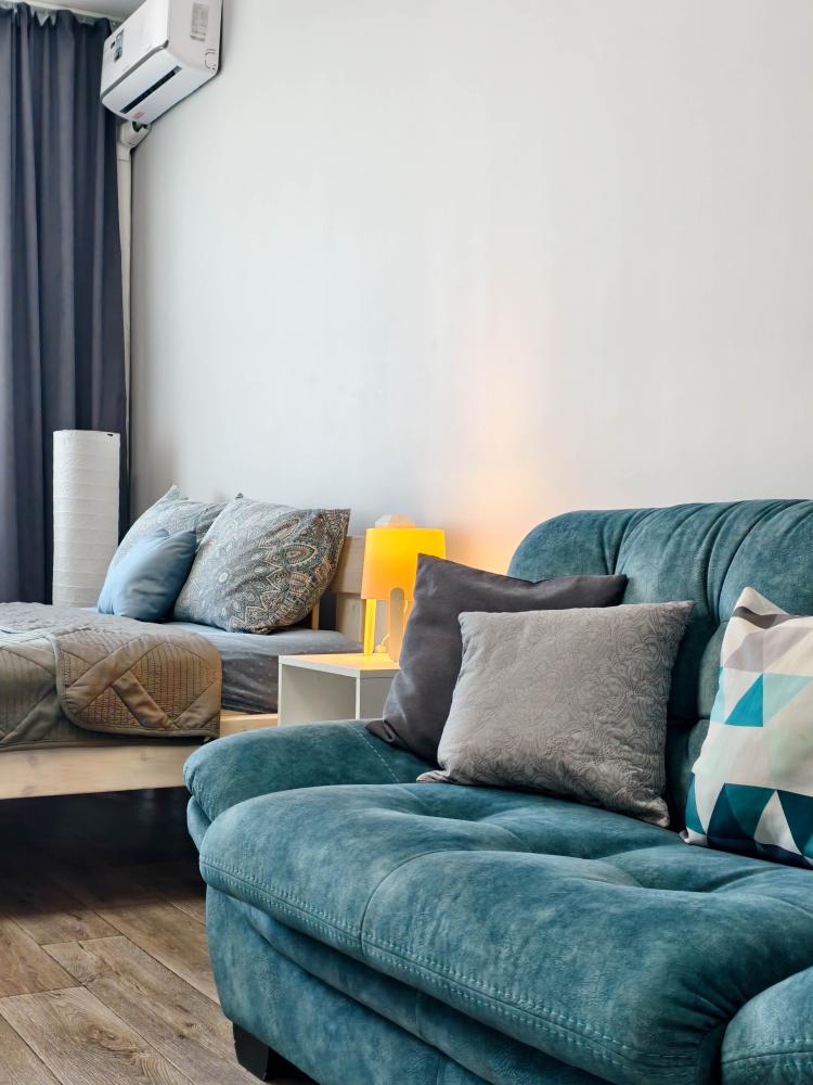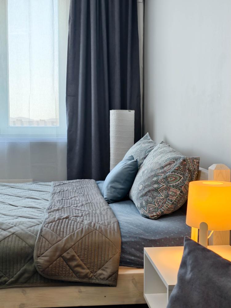 В квартире есть всё необходимое для проживания. В большой комнате находится: двуспальная кровать с комфортным ортопедическим матрасом; прикроватная тумба; диван с ортопедическим основанием и матрасом; телевизор с большим выбором каналов; большой комод для вещей; гладильная доска с утюгом. Для хранения верхней одежды предусмотрена гардеробная с зеркалом в полный рост. Кухня в современном дизайне имеет все удобства для приготовления пищи. Большой балкон с красивым видом на город . Ванная комната оснащена белоснежным санфаянсом со всеми удобствами.