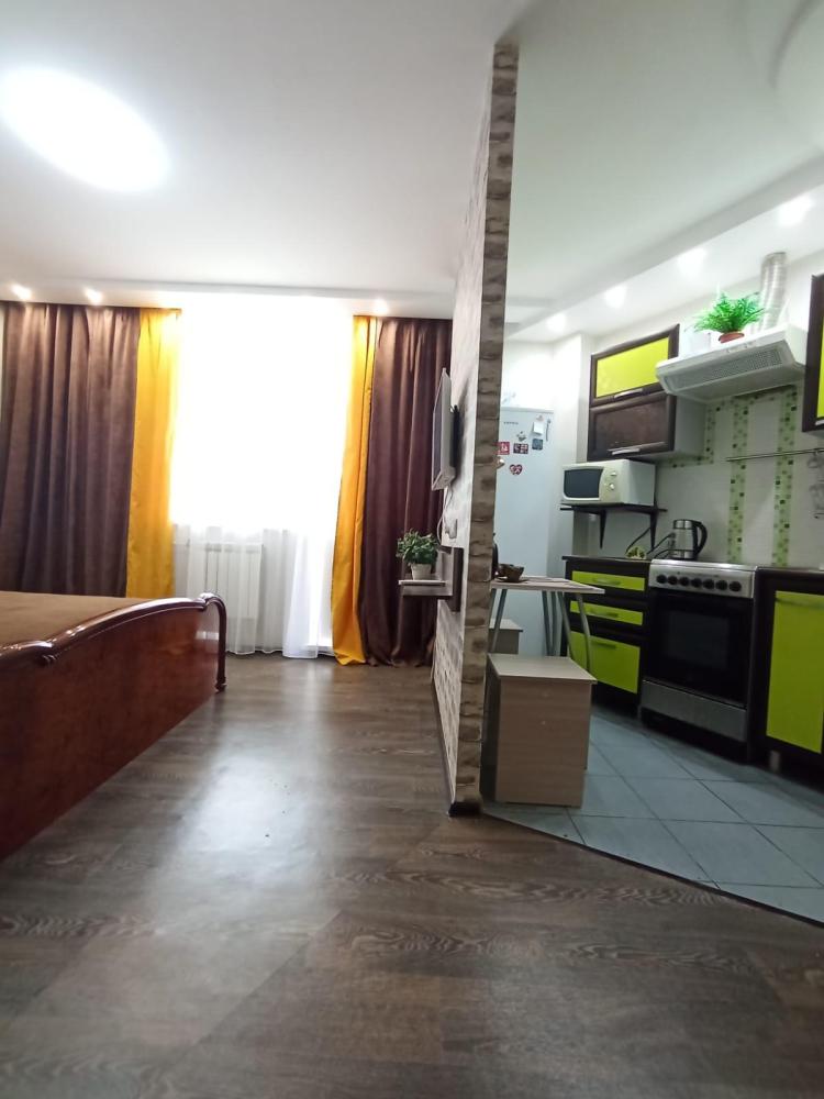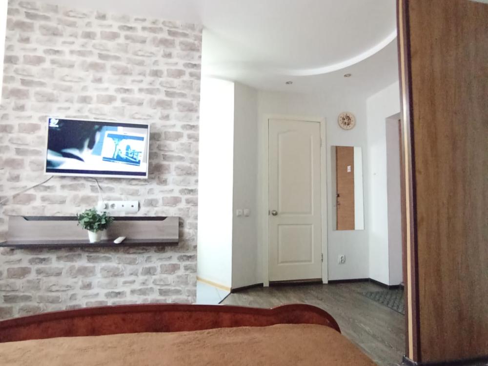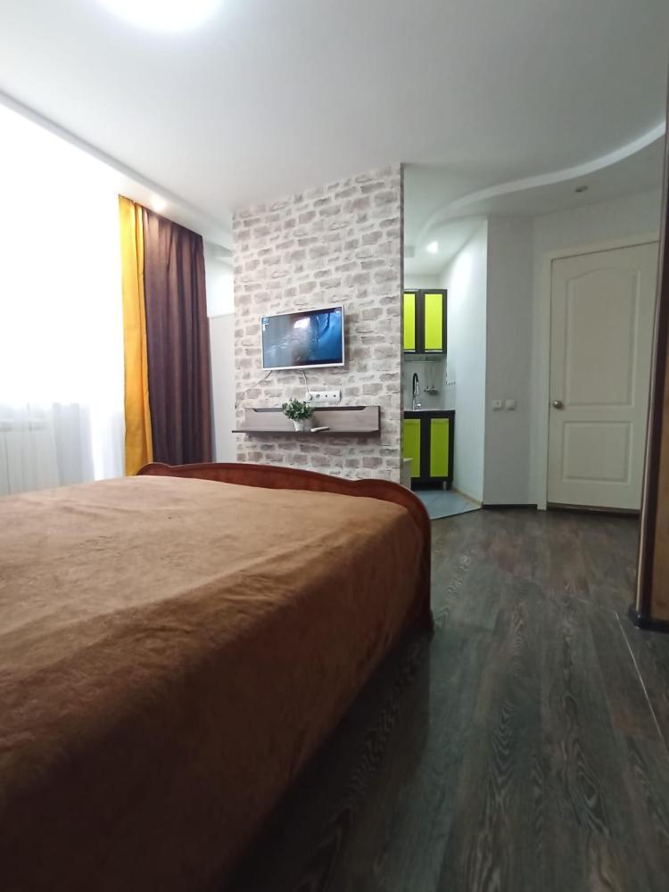 Студия для размещения двух человек. Прекрасный вид из окна на набережную Енисея. Удобный матрас с большой кроватью,средства для гигиены,полотенца каждому гостю,тапочки. Есть вся необходимая мебель,посуда,беспроводной интернет.