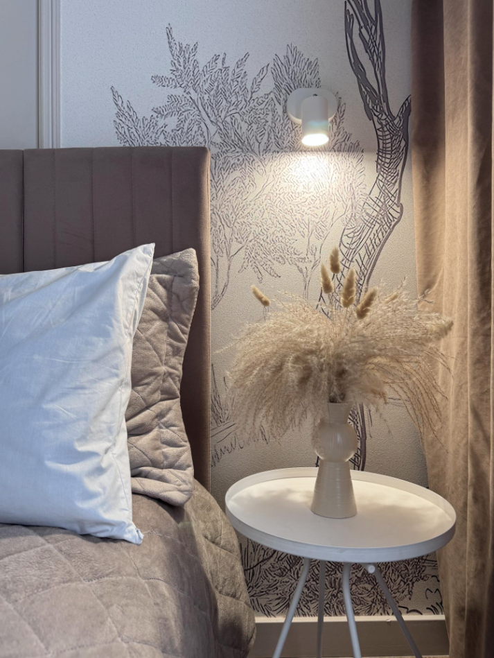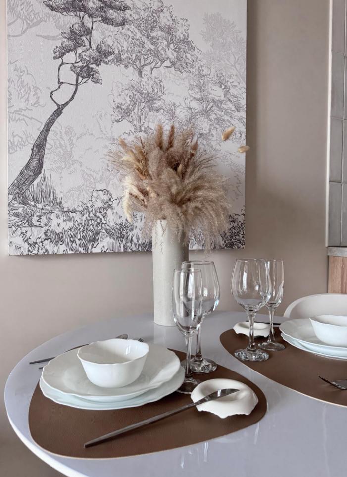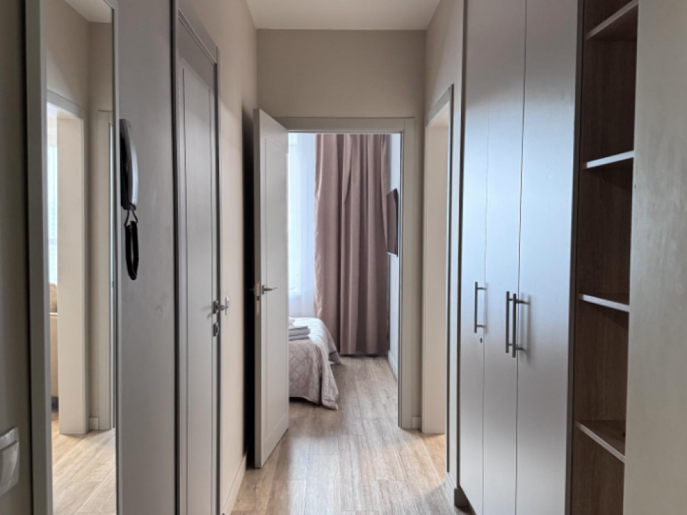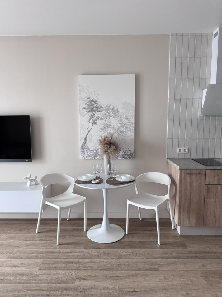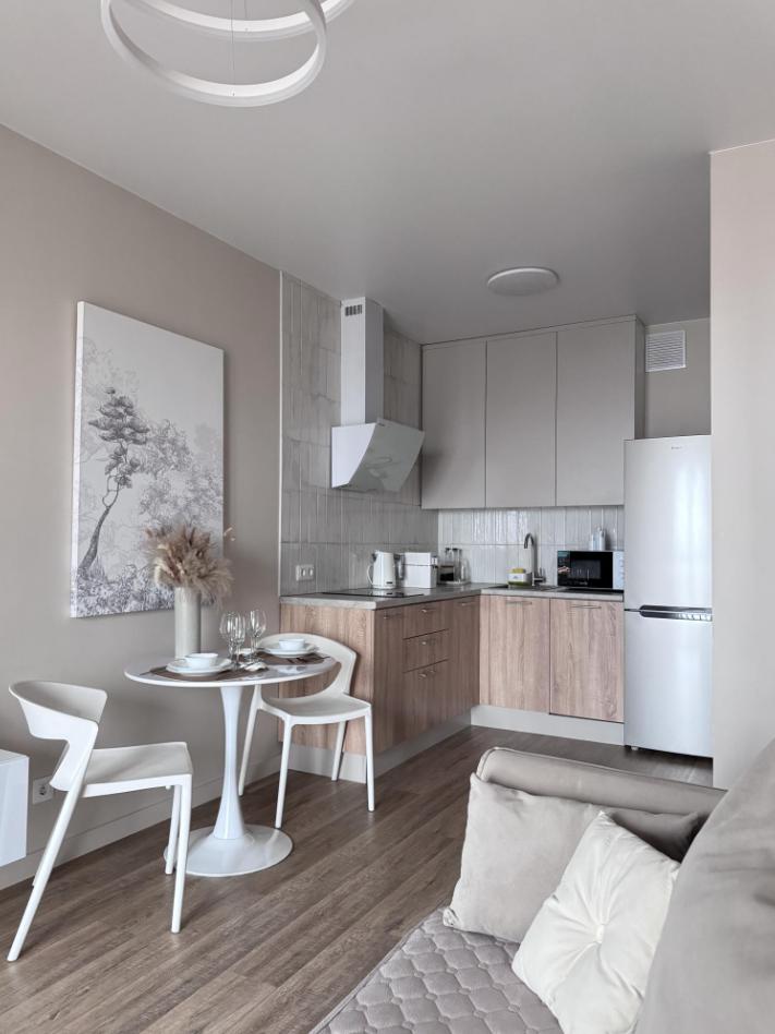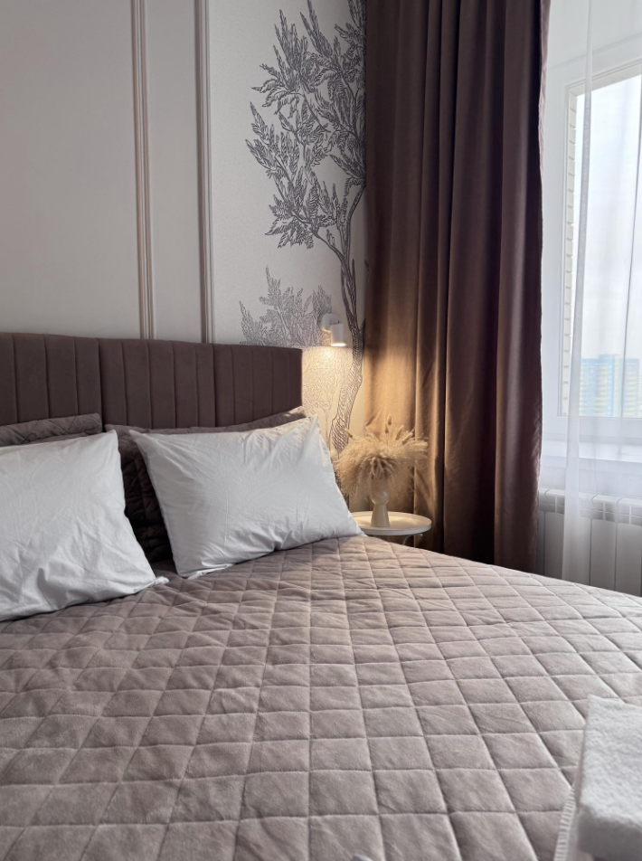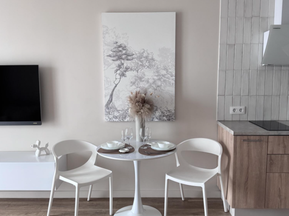 В апартаментах всегда свежий ремонт, аромат хлопка и льна, красивая посуда и выглаженное постельное белье.