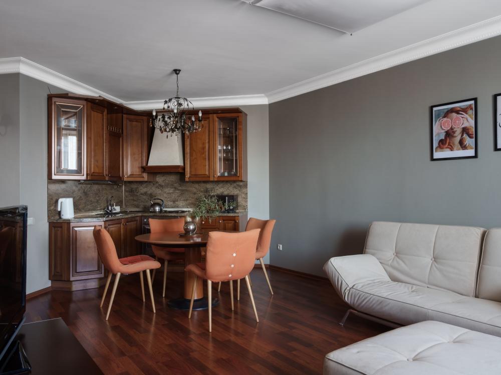 Стильная квартира с тремя изолированными комнатами и сауной в ЖК Синие крыши в сердце Взлетки. Квартира станет идеальным решением для семейного отдыха или деловой поездки. В квартире современный дизайн интерьера и мебели высокого уровня. Она оснащена всем необходимым для комфортного проживания: кухонный гарнитур со всеми удобствами для приготовления, просторный санузел с большой гидромассажной ванной и душевой кабиной, уютная тихая спальня, гостиная с электрическим камином. Прямо в квартире есть инфракрасная сауна, где вы сможете погреться и отдохнуть после насыщенного рабочего дня. На каждого гостя комплект белоснежных полотенец, всегда свежее чистое постельное белье. Халат, тапочки, фен, утюг. После каждого проживания проводится профессиональная уборка и дезинфекция поверхностей.
