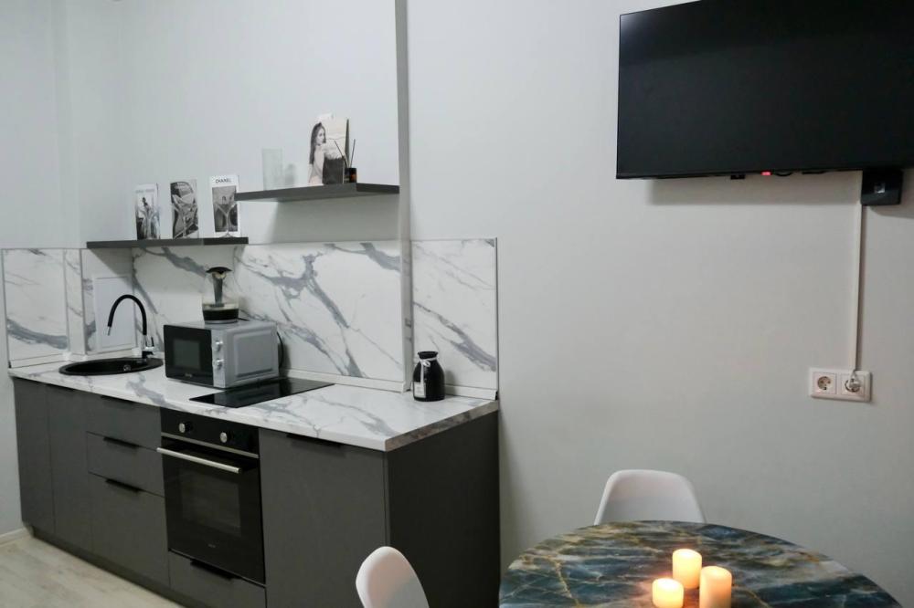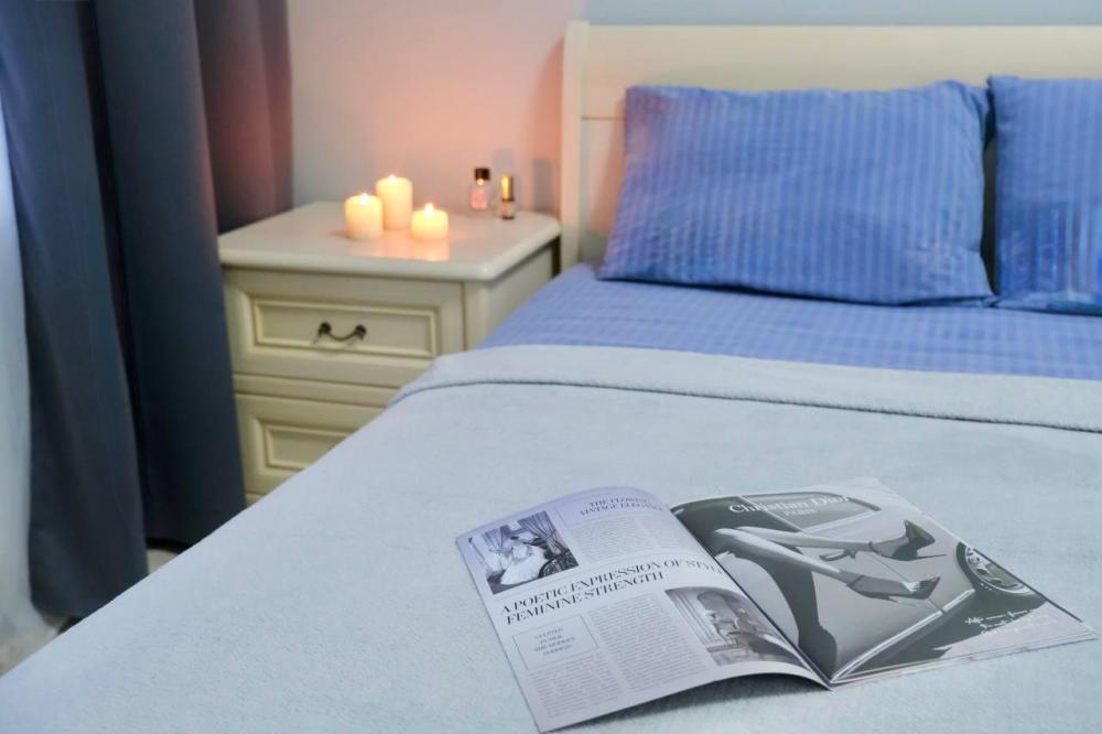 В квартире: фен, утюг, гладильная доска, полный набор посуды. Полотенца и постельное белье. Кровать с ортопедическим матрасом, большой диван. Современная техника, WI FI.