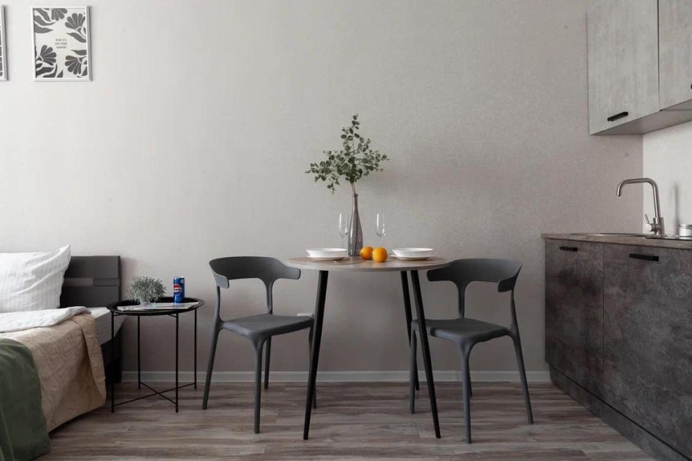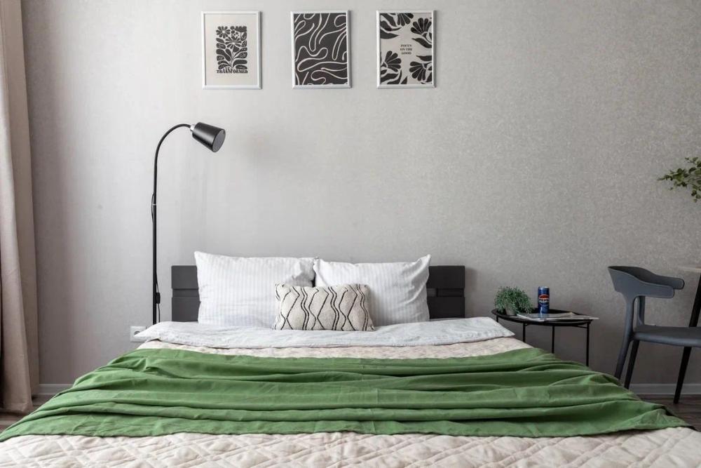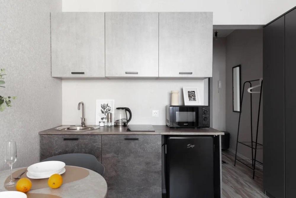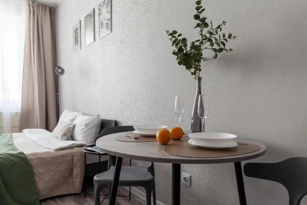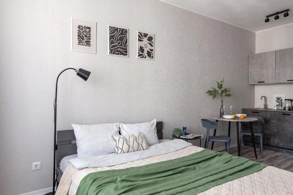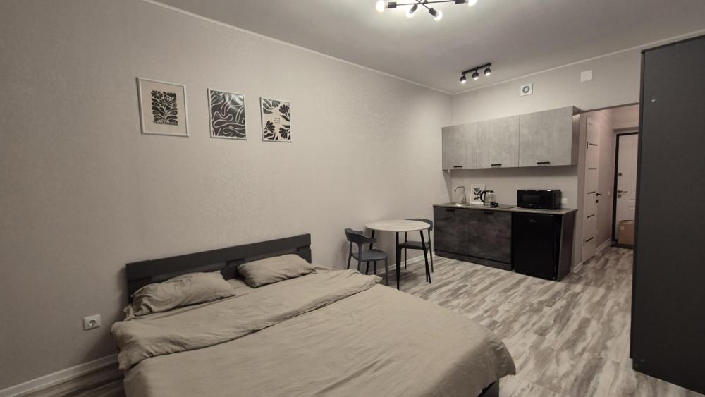 Уютные апартаменты, оборудованные всем необходимым для комфортного проживания. в апартаментах двуспальная кровать, оборудованная кухонная зона с обеденным столом, санузел.