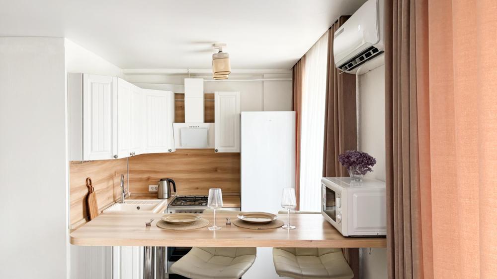 В квартире предусмотрено всё необходимое для комфортного проживания: холодильник, телевизор, электрический чайник, микроволновая печь, стиральная машина-автомат, кондиционер, комплект посуды, чистое постельное белье, полотенца, доступ к бесплатному высокоскоростному Wi-Fi. Для отдыха предусмотрены два удобных спальных места: двуспальная кровать и удобный диван.