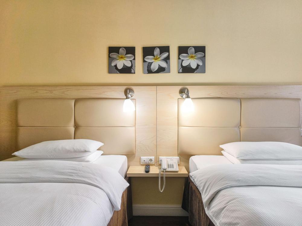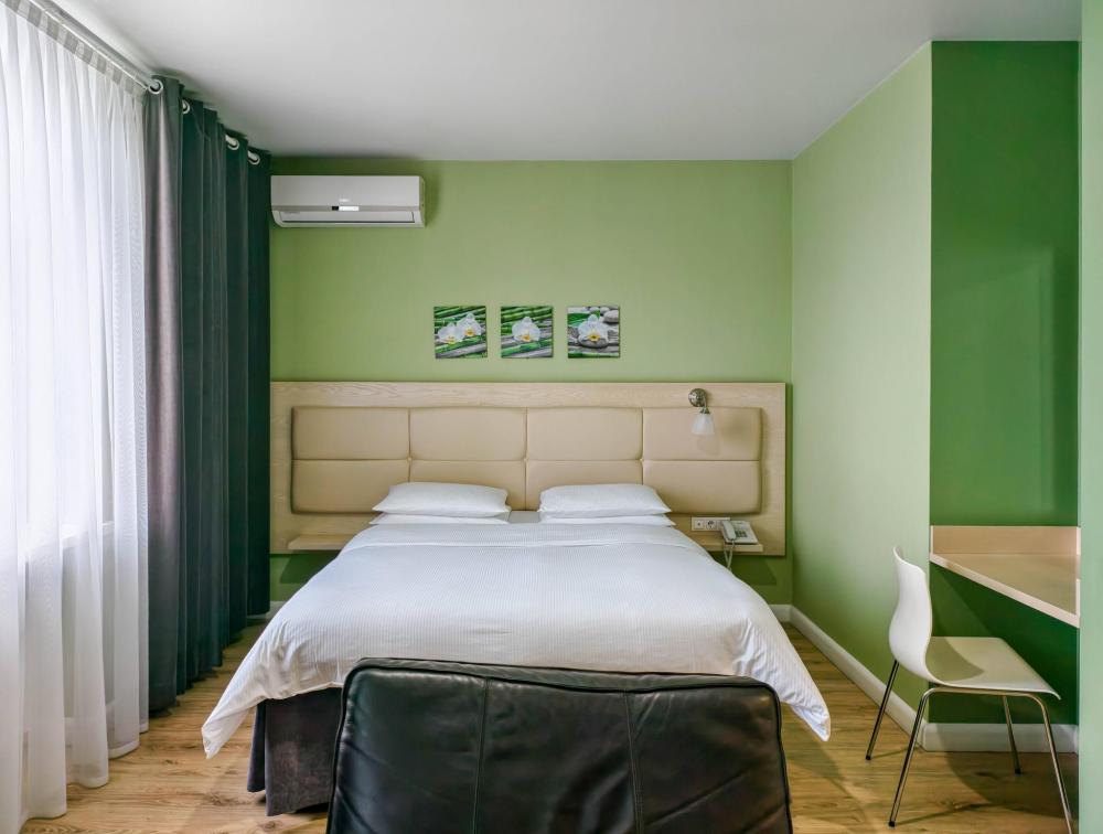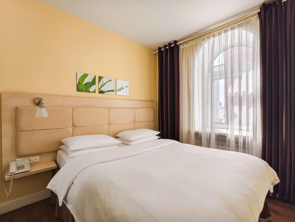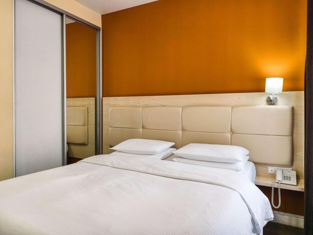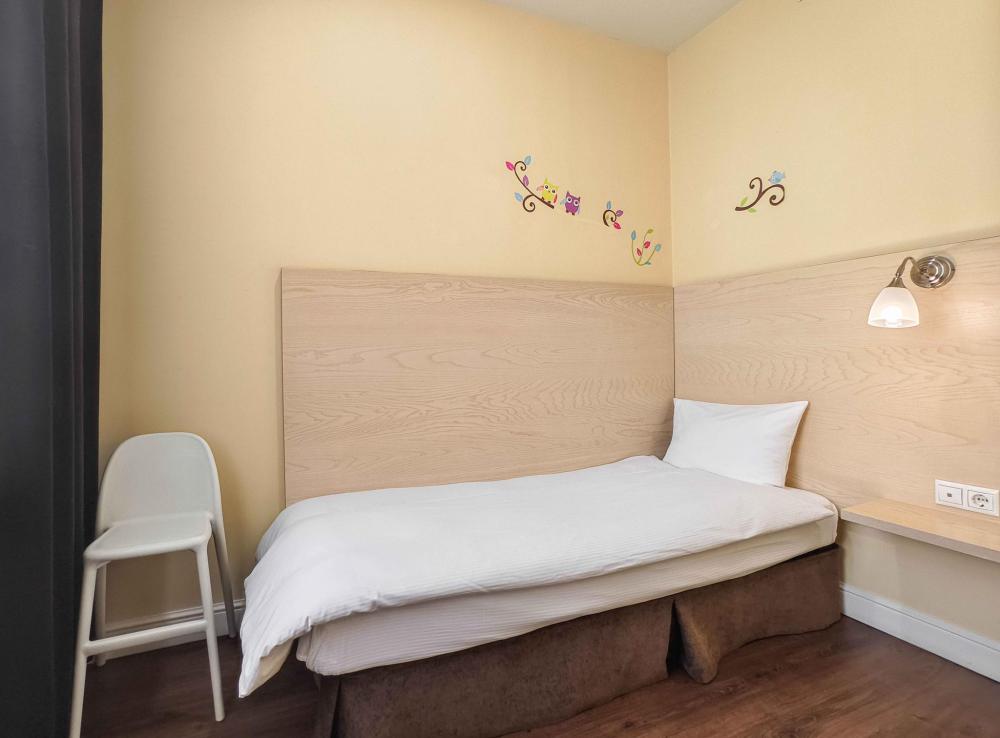В номере: Полуторная кровать 120*200, Мини–холодильник, Чайник, Халаты и тапочки, Набор гостеприимства с чайными принадлежностями.