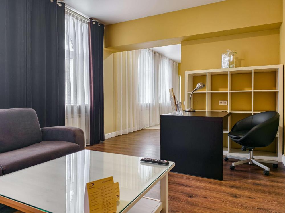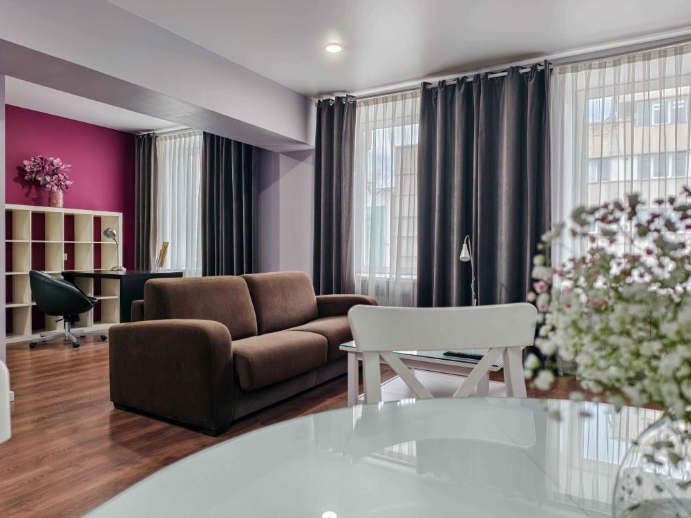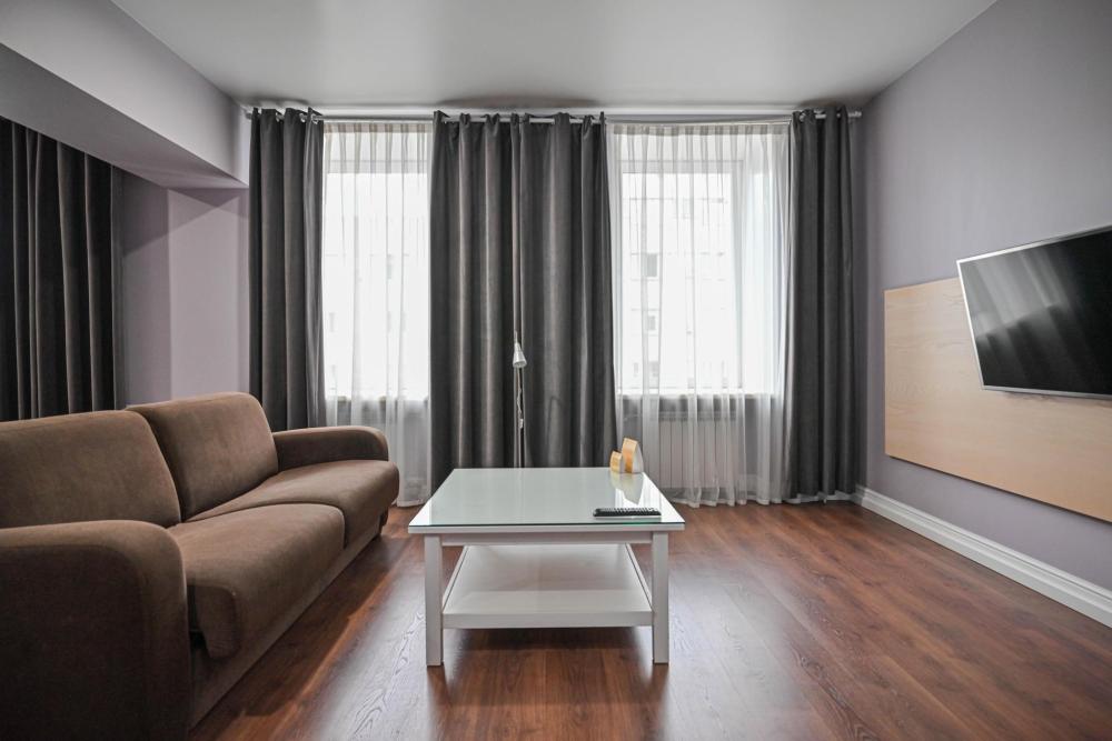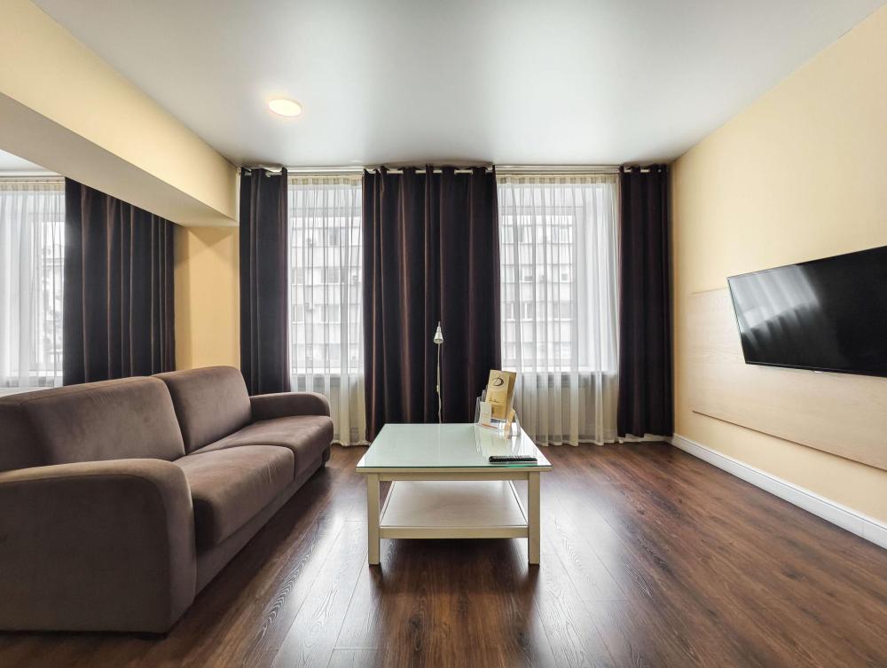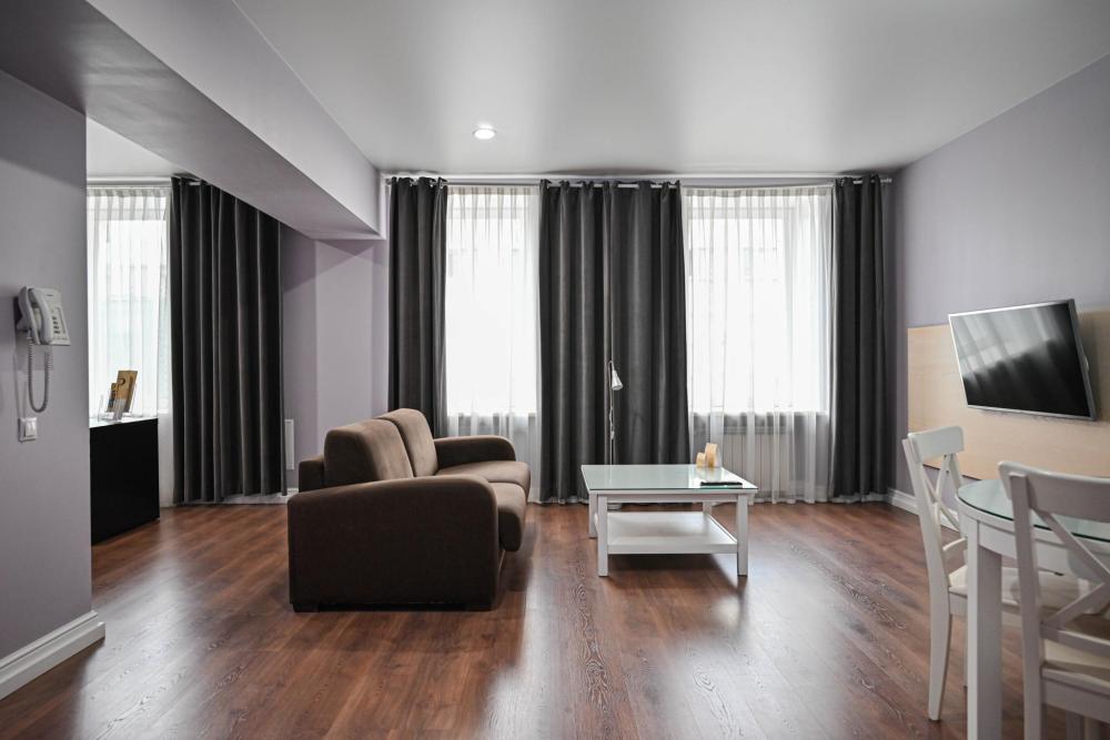 В номере: Двуспальная кровать, Мягкая мебель, Кондиционер, Холодильник, Кофемашина, Варочная панель, Микроволновая печь, Чайник, Оборудованная кухня.