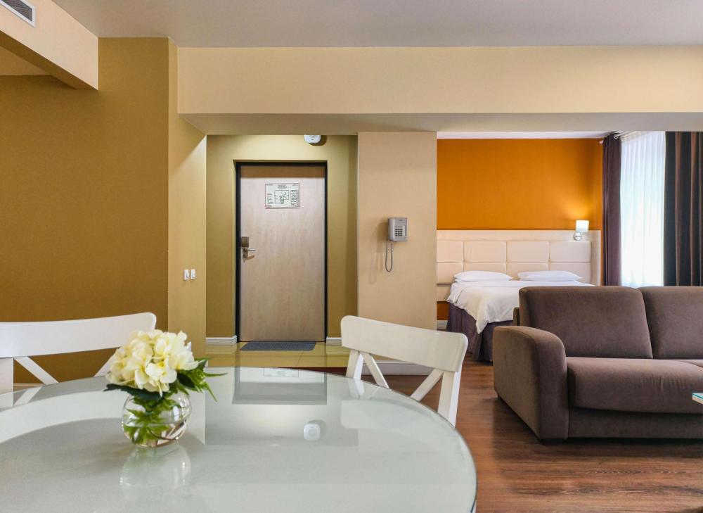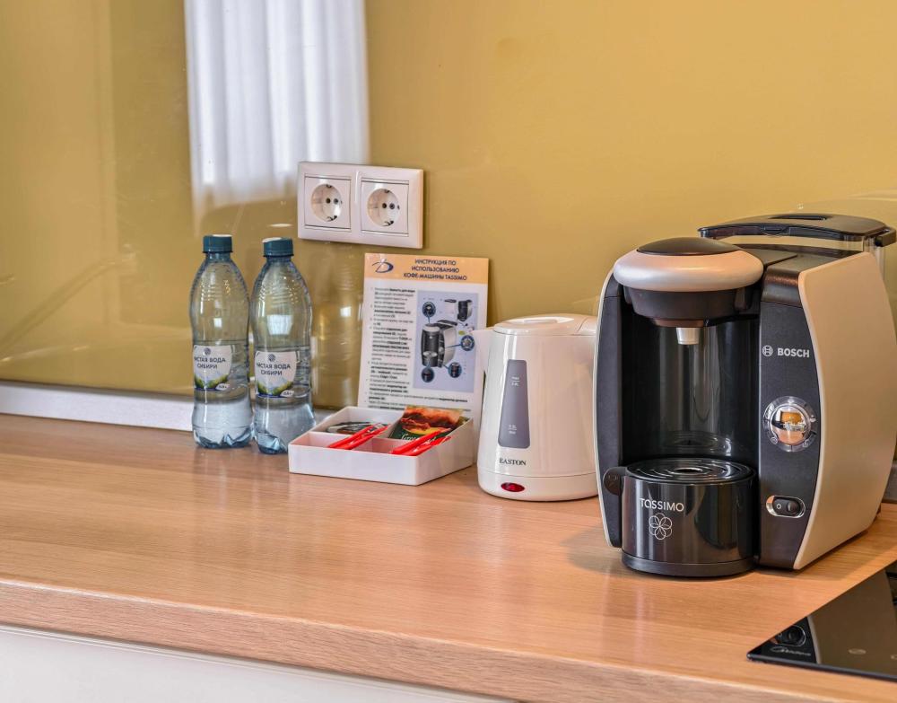 В номере: две односпальные кровати, Индивидуальная вентиляция, Мягкая мебель, Холодильник, Кофемашина, Варочная панель, Микроволновая печь, Чайник, Оборудованная кухня.