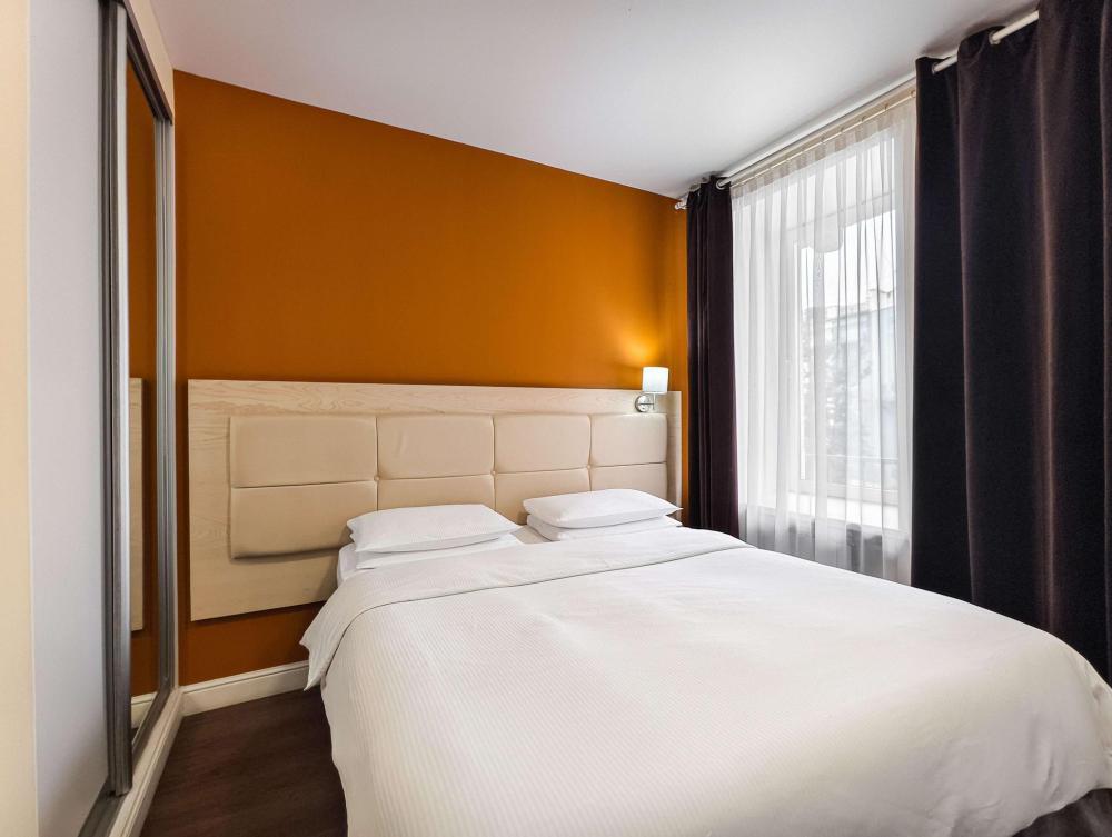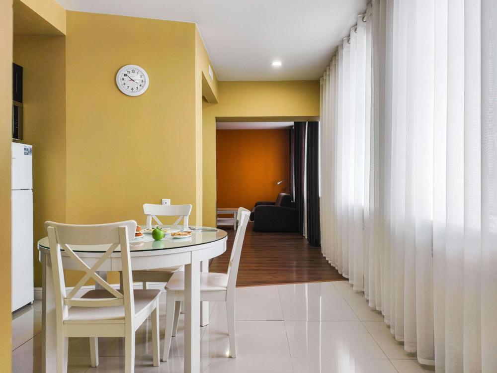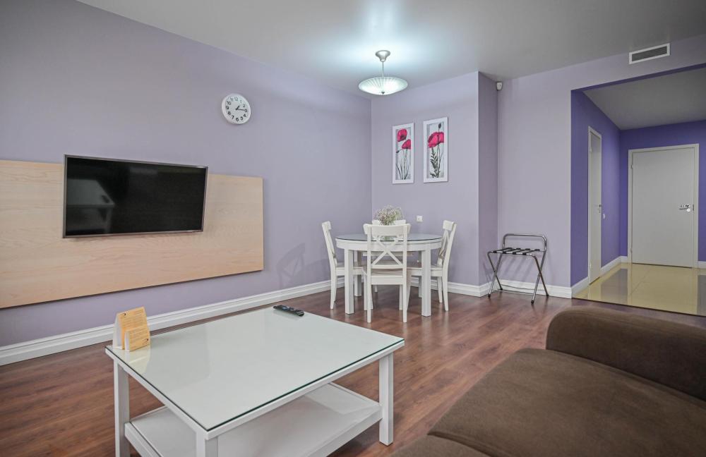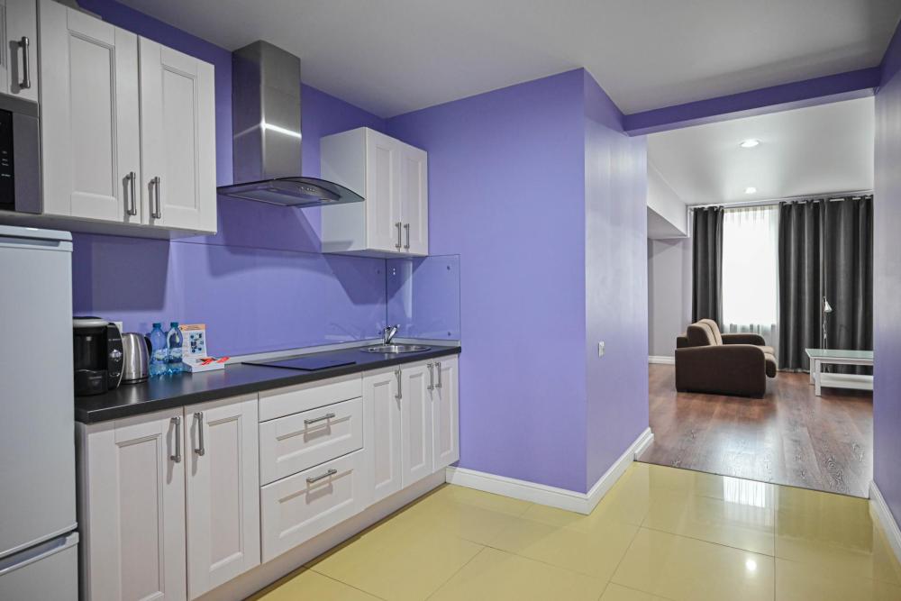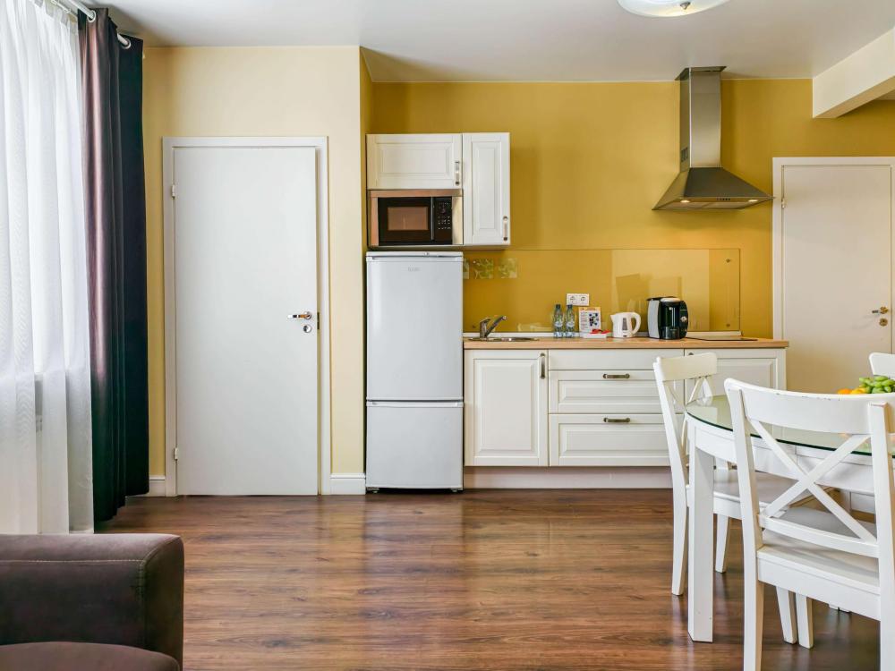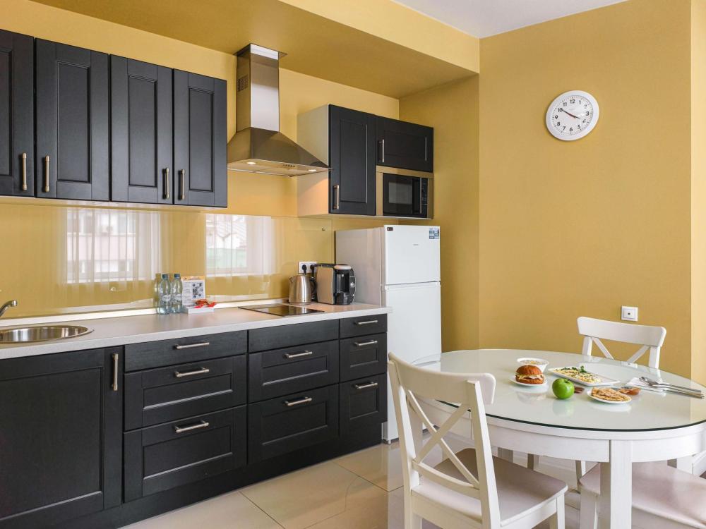 В номере: Двуспальная кровать, Индивидуальная вентиляция, Мягкая мебель, Холодильник, Кофемашина, Варочная панель, Микроволновая печь, Чайник, Оборудованная кухня, Детская мебель.