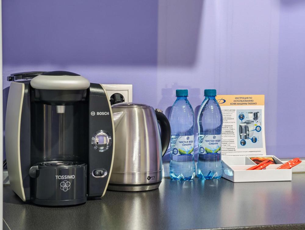 В номере: Полуторная кровать, Мини–холодильник, Чайник, Халаты и тапочки, Набор гостеприимства с чайными принадлежностями.