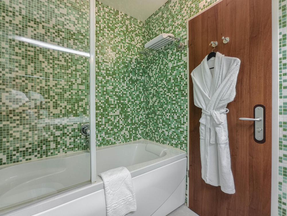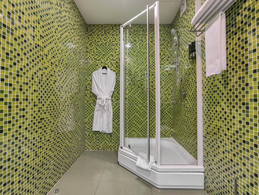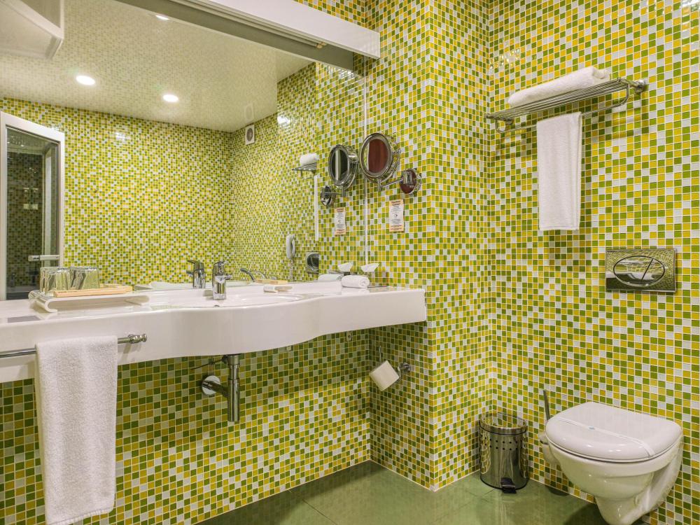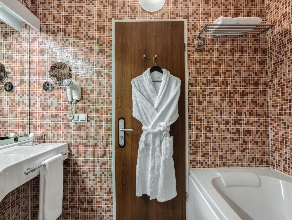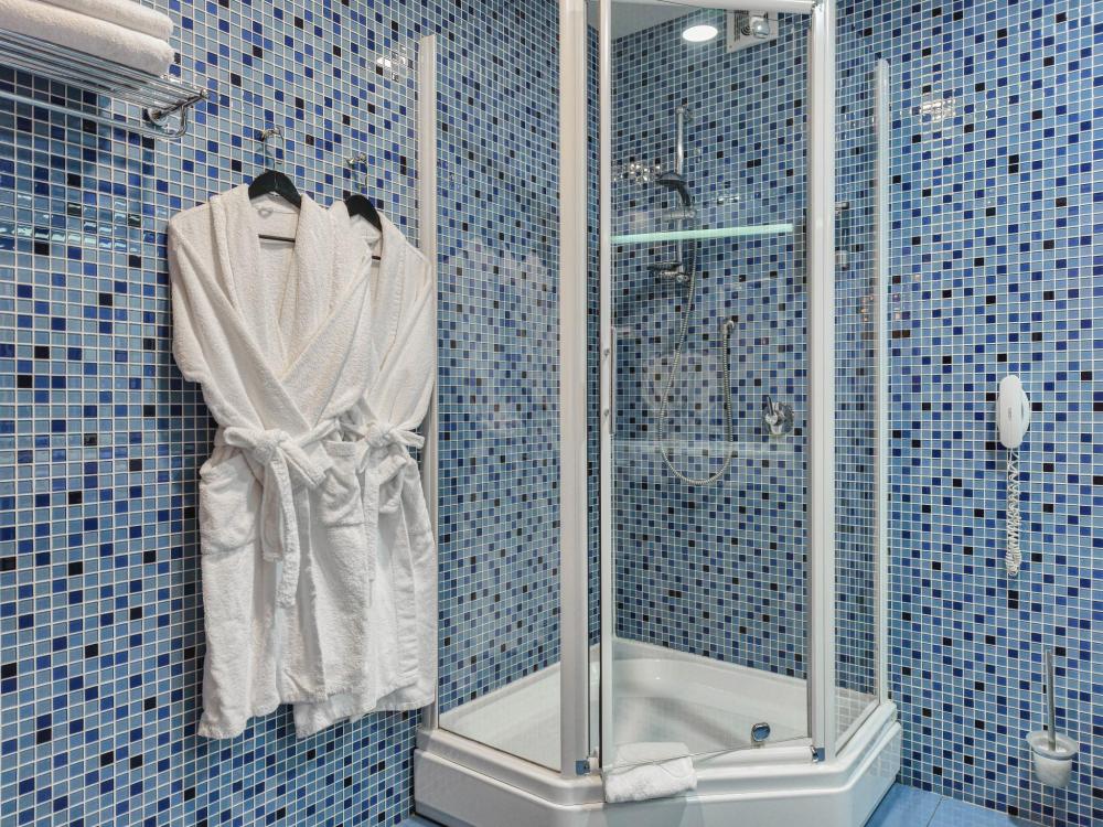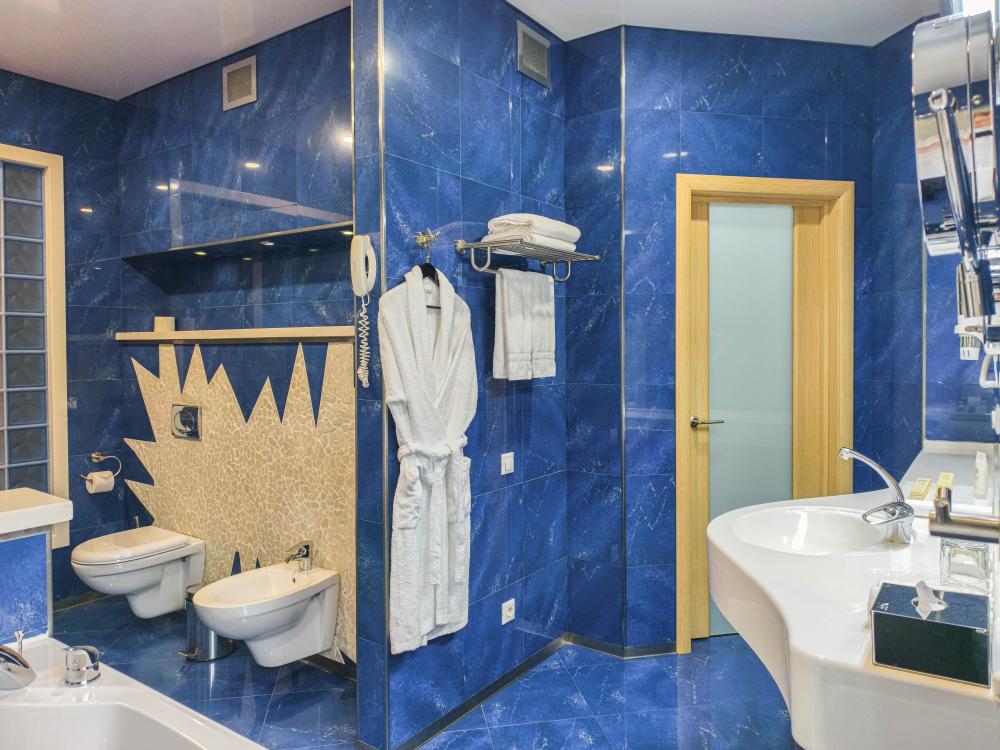 Превосходный двухкомнатный номер площадью 80 кв.м. для настоящих ценителей комфорта и домашнего уюта. Площадь ванной комнаты составляет 15 кв.м. В комплектацию входит угловая ванная с гидромассажем, сауна для 2 человек, полноценный набор предметов индивидуального пользования, халаты и тапочки.