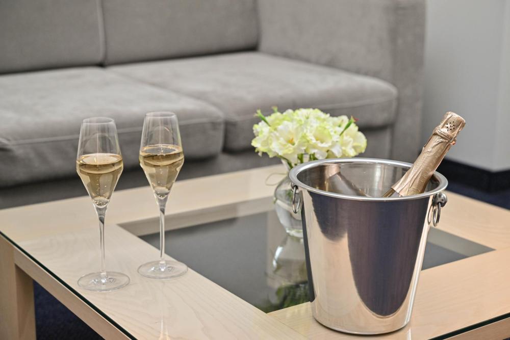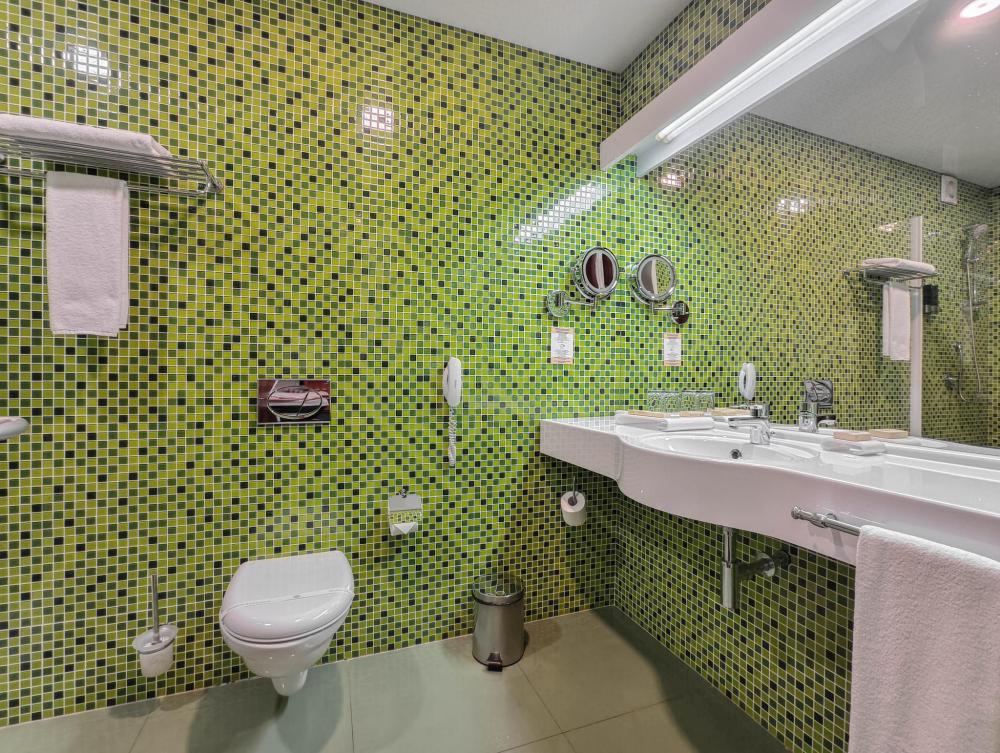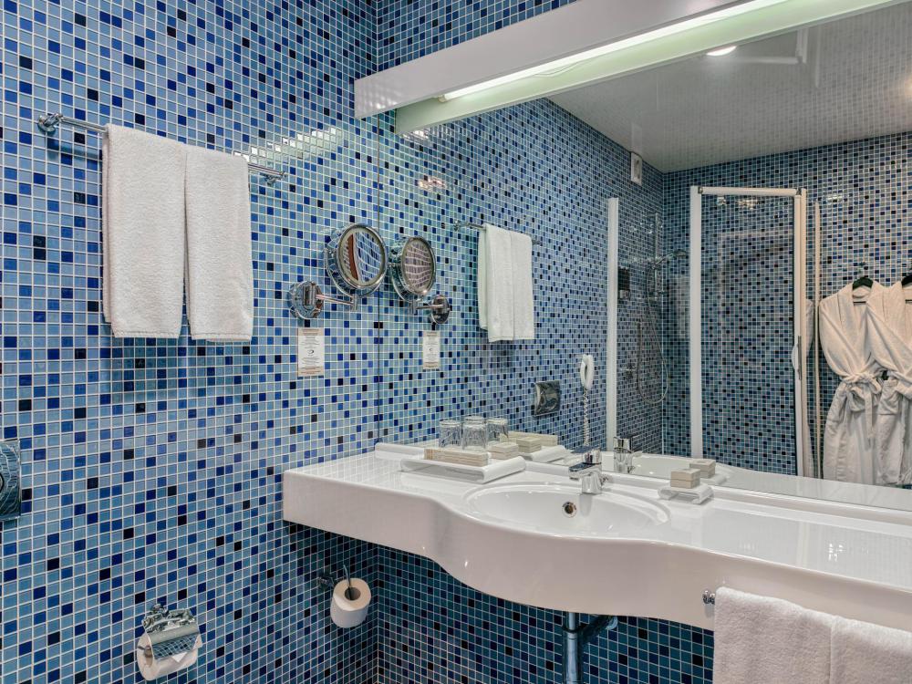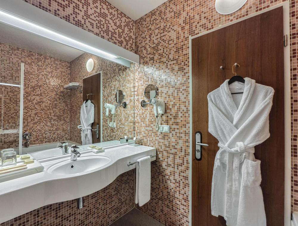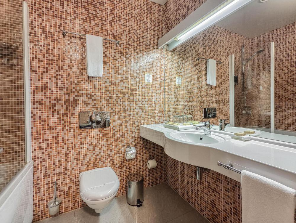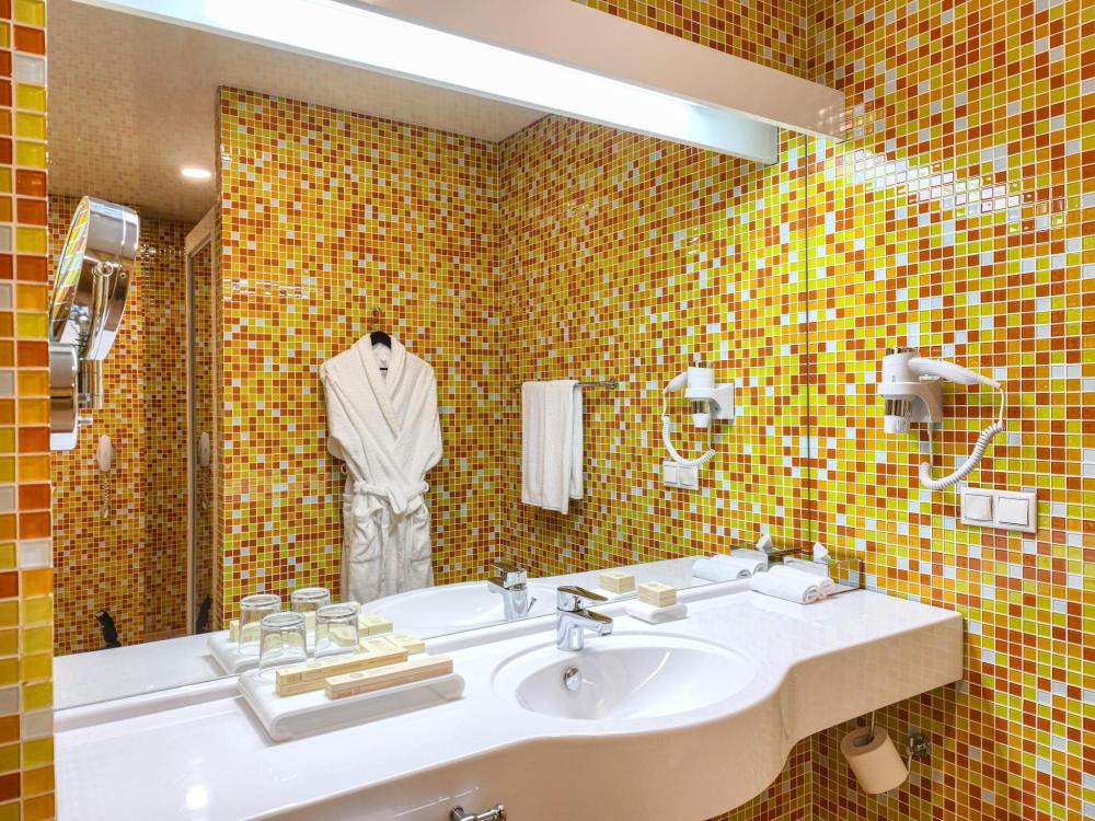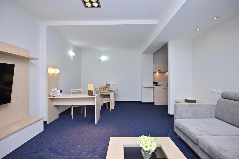 Превосходный двухкомнатный номер площадью 80 кв.м. для настоящих ценителей комфорта и домашнего уюта. Площадь ванной комнаты составляет 15 кв.м. В комплектацию входит угловая ванная с гидромассажем, сауна для 2 человек, полноценный набор предметов индивидуального пользования, халаты и тапочки.