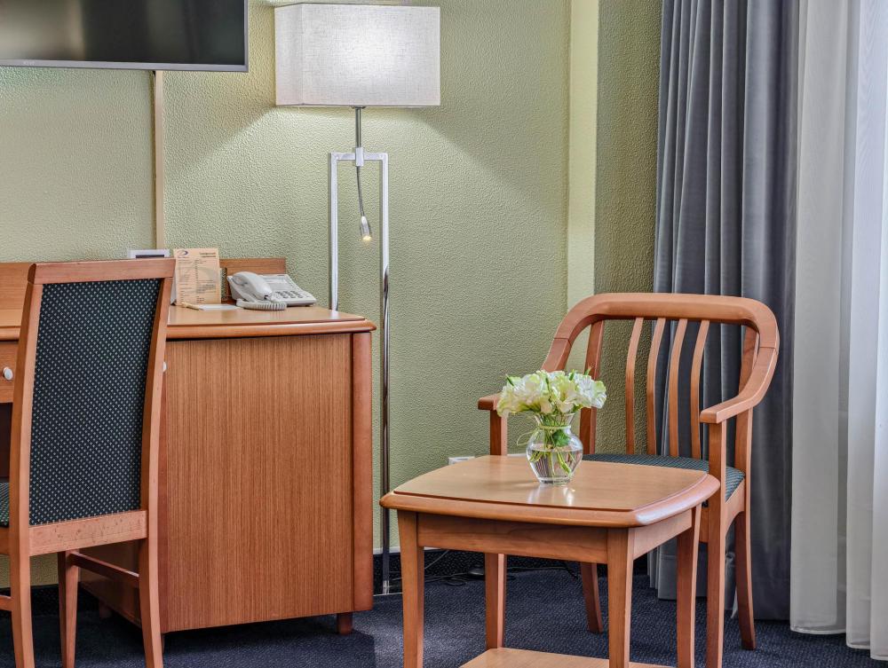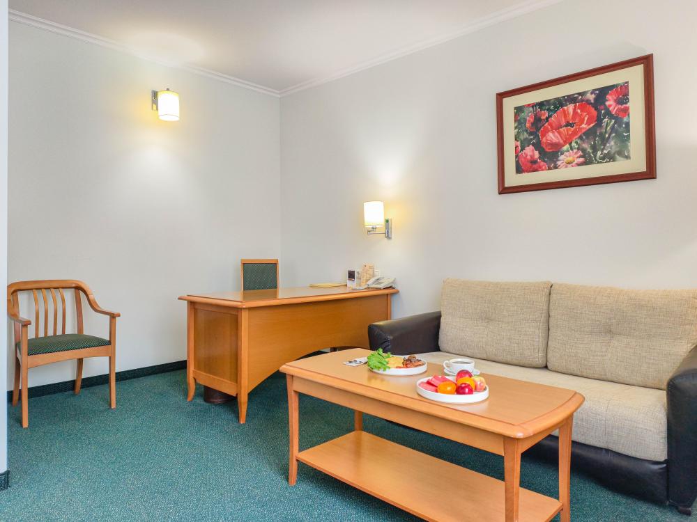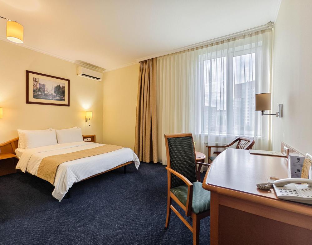 Номер площадью от 40 до 50 кв м, состоящий из одной жилой комнаты с большой кроватью. В этом номере создана рабочая обстановка.