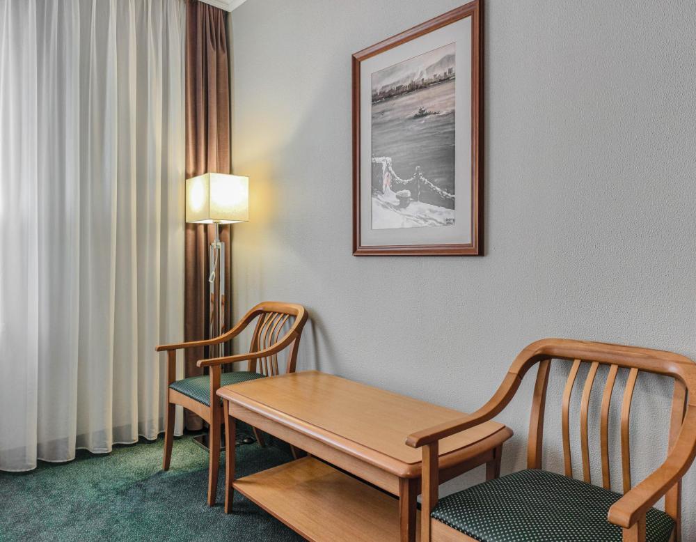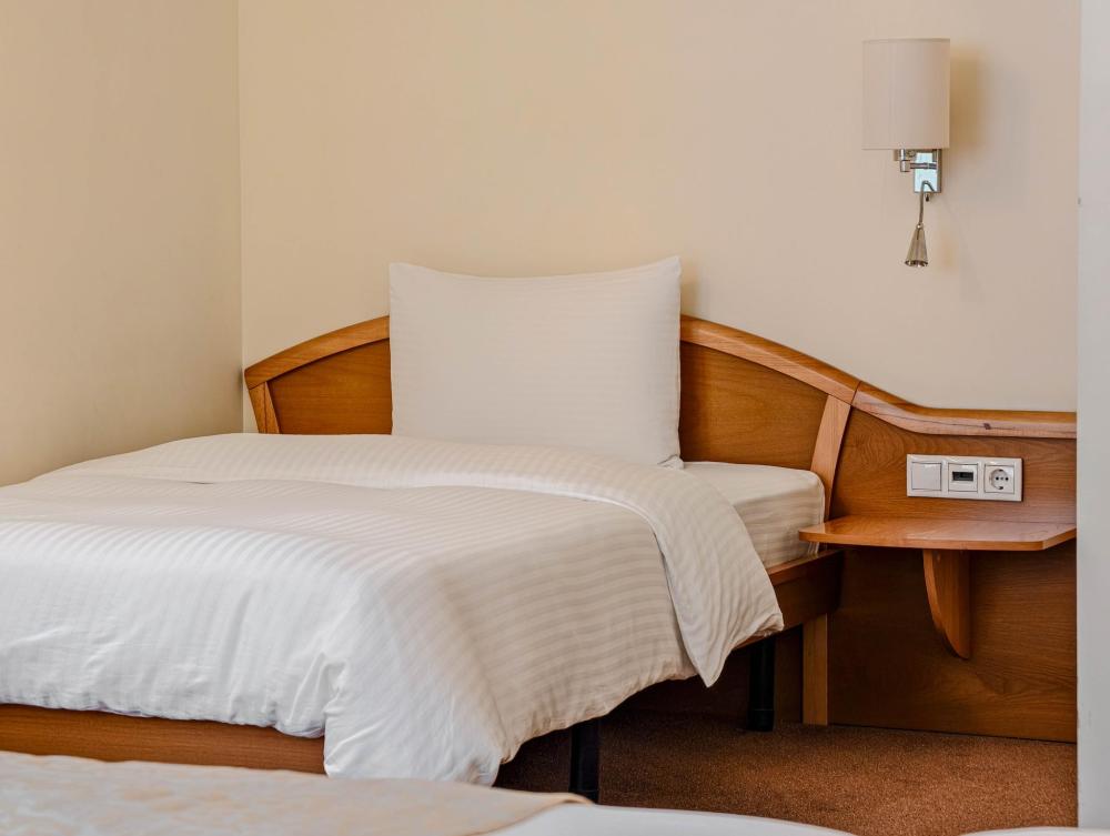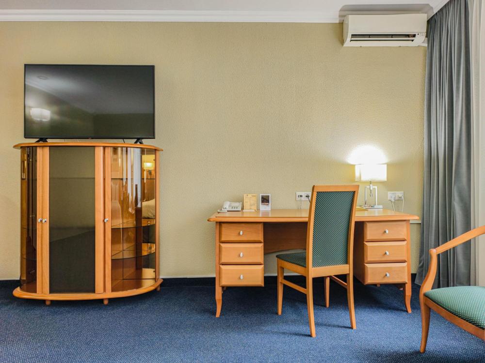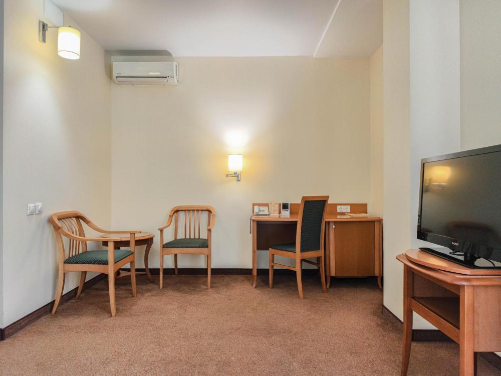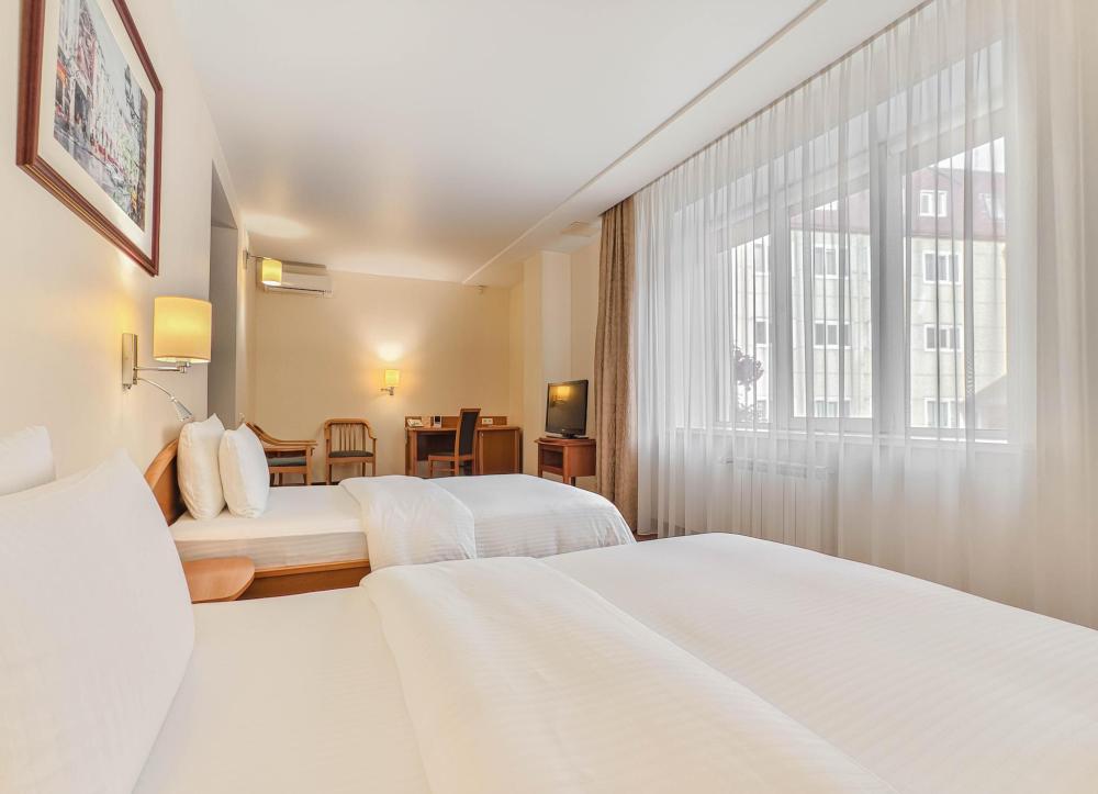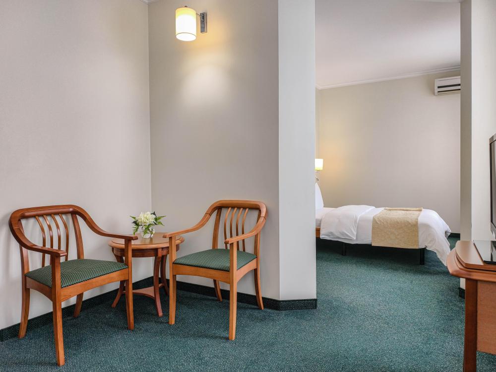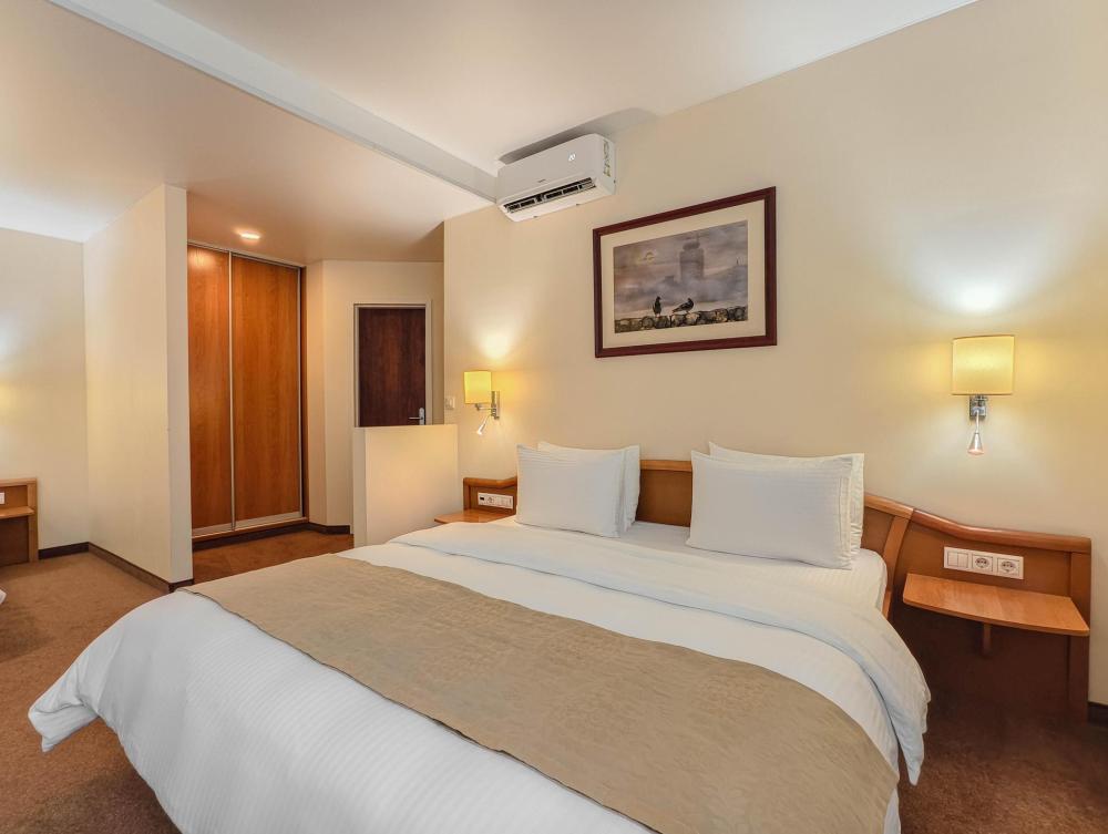 Двухместный номер, площадью 45 кв.м., с 2 раздельными кроватями (120*200) Оборудование номера: Индивидуальная вентиляция Мини-холодильник Мягкая мебель Антистрессовый матрас Халаты и тапочки Свежая пресса Кондиционер Набор чайных принадлежностей 2 бутылки питьевой воды ежедневно