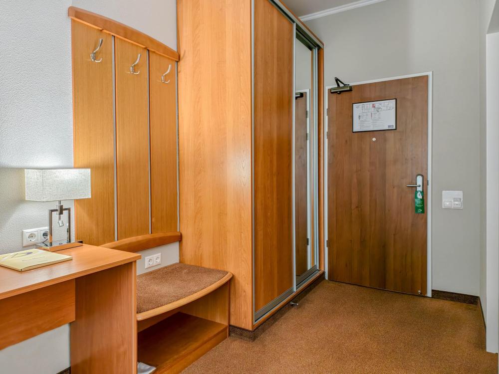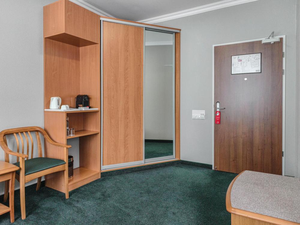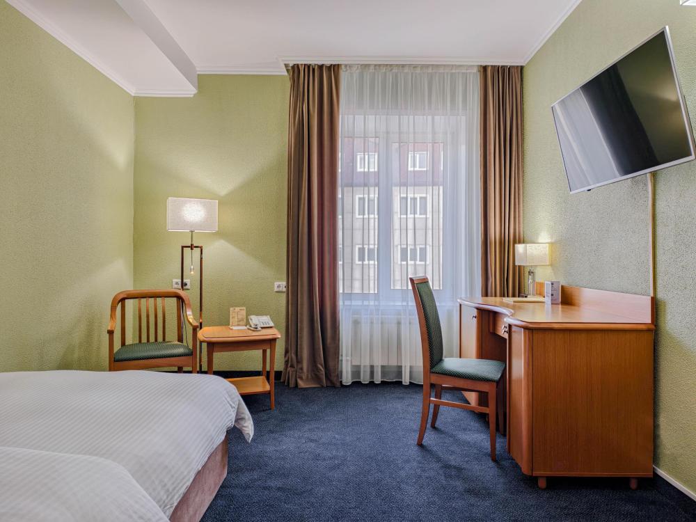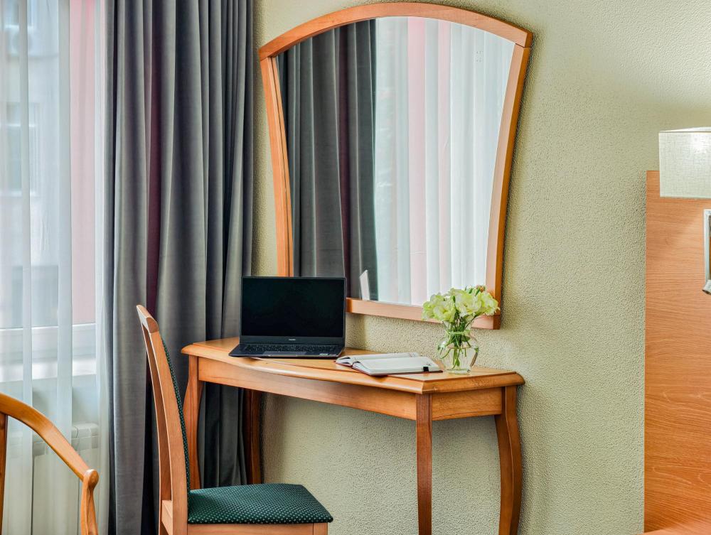 Одноместный номер площадью 16 м2. В номере односпальная кровать 120*200 и удобное оборудованное рабочее место. Номер расположен возле лифта.