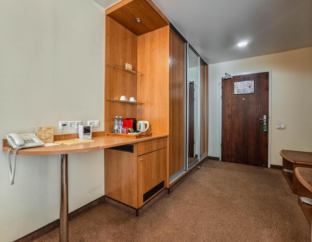 Одноместный номер площадью 18 м2. В номере односпальная кровать 120*200 с антистрессовым матрасом и удобное оборудованное рабочее место.