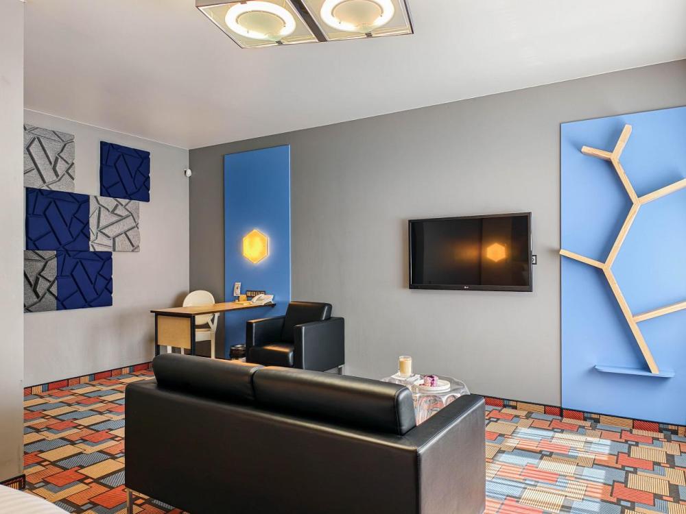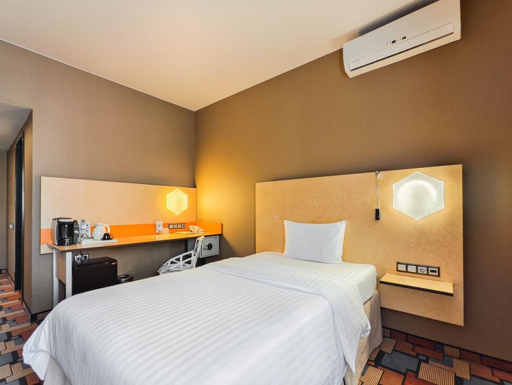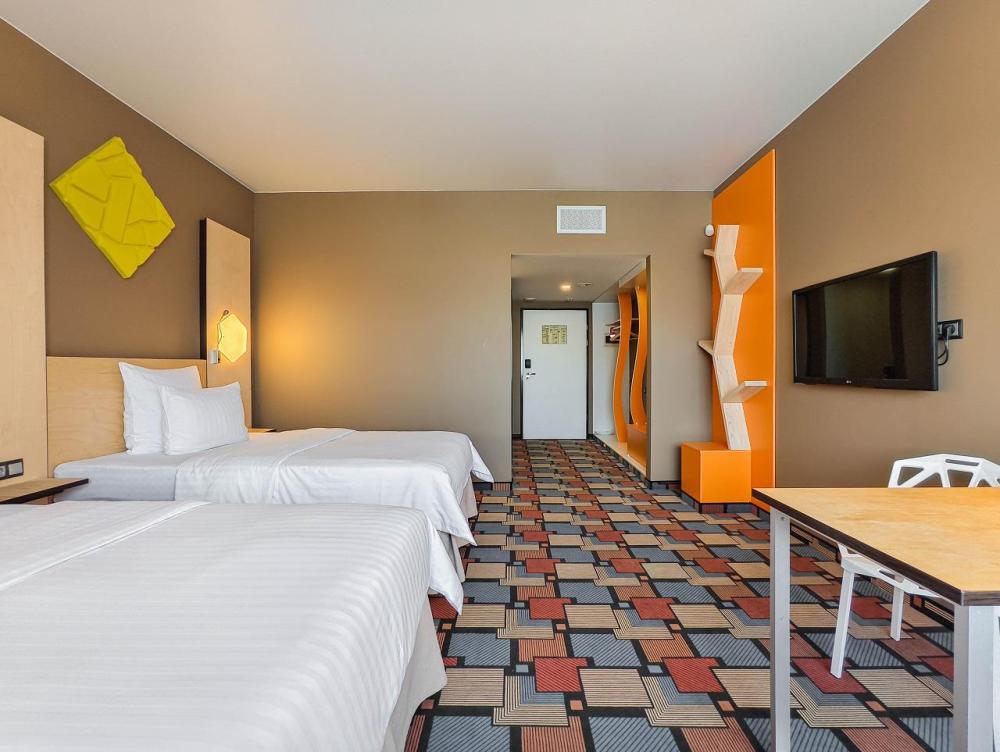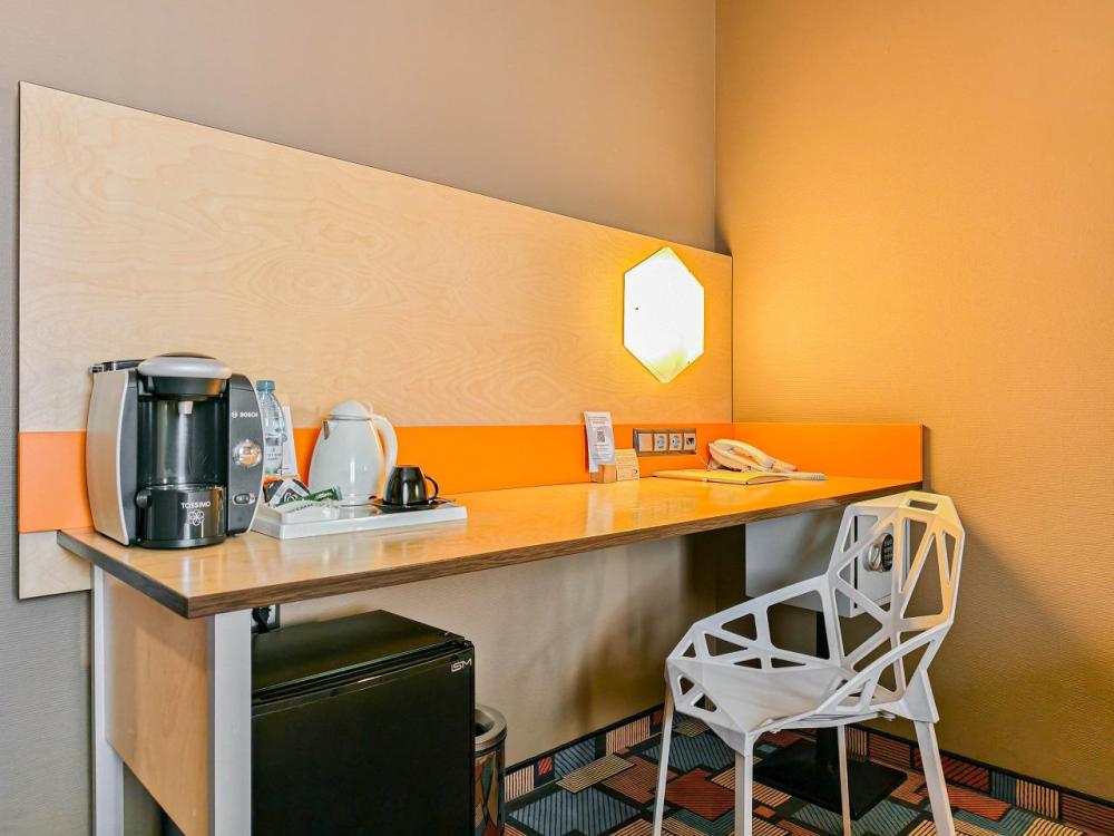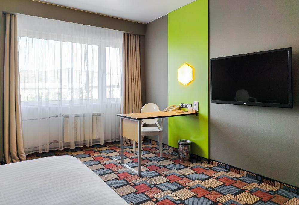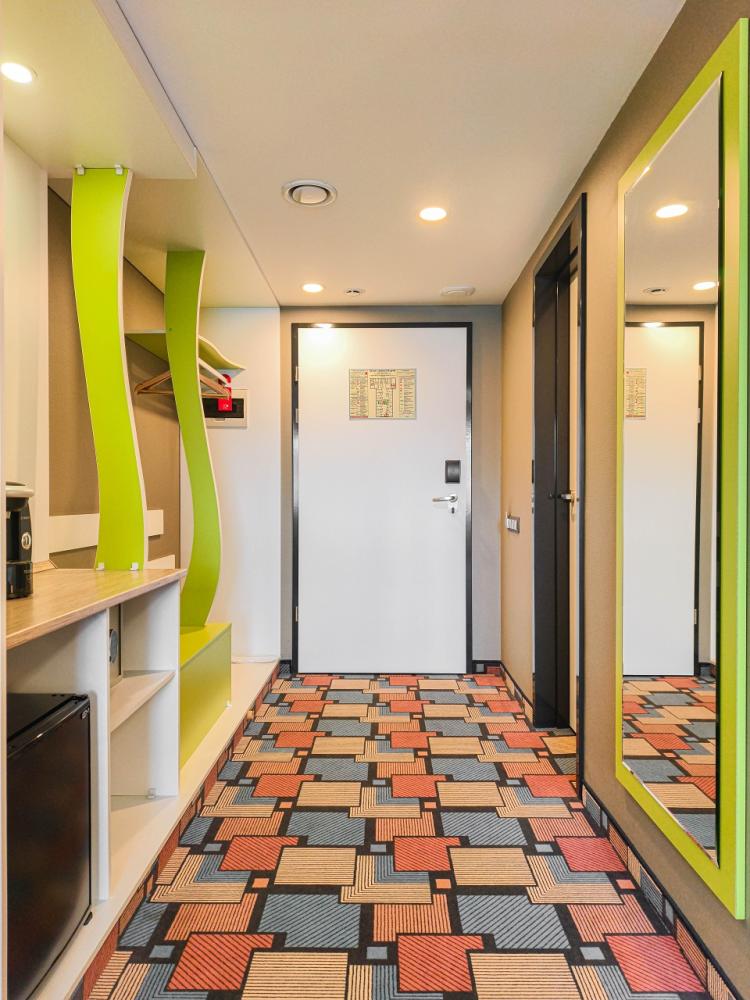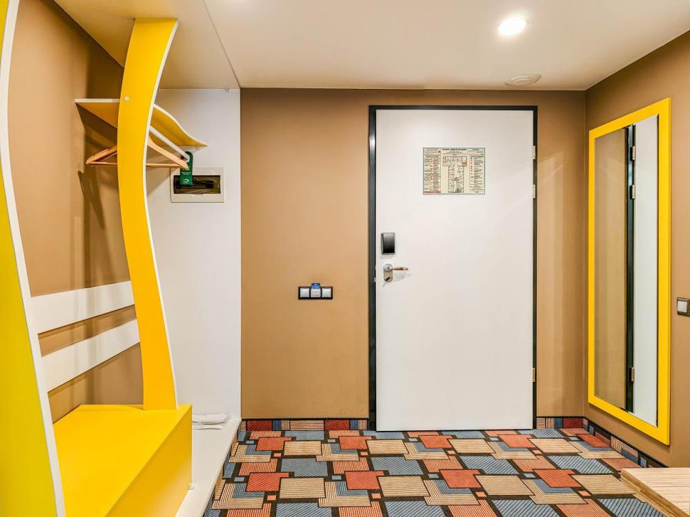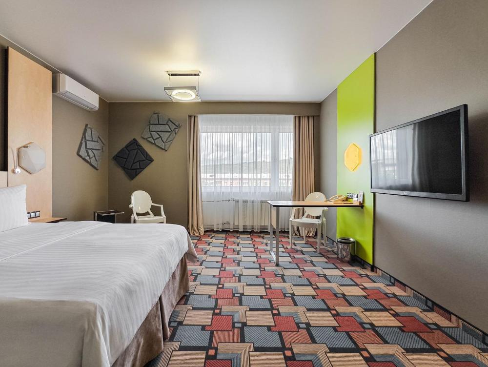В номере: двуспальная кровать и диван-кровать, Индивидуальная вентиляция, Мини–холодильник, Мягкая мебель, Кондиционер, Двуспальная кровать, Чайник, Халаты и тапочки, Набор гостеприимства с чайными принадлежностями, Яркий стильный интерьер, Кабельное ТВ, TV диагональю 47, 42", Душевая кабина, Фен, Гостиничная парфюмерия.