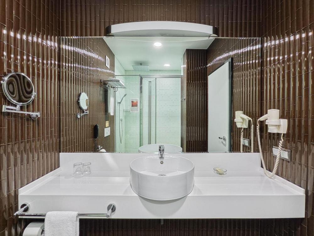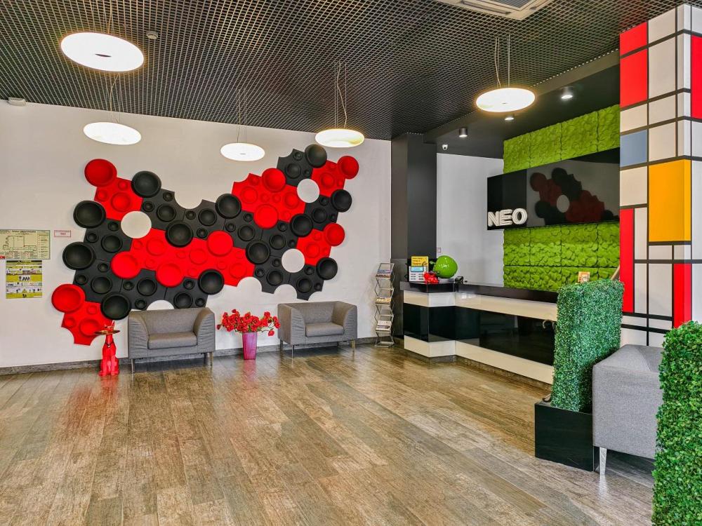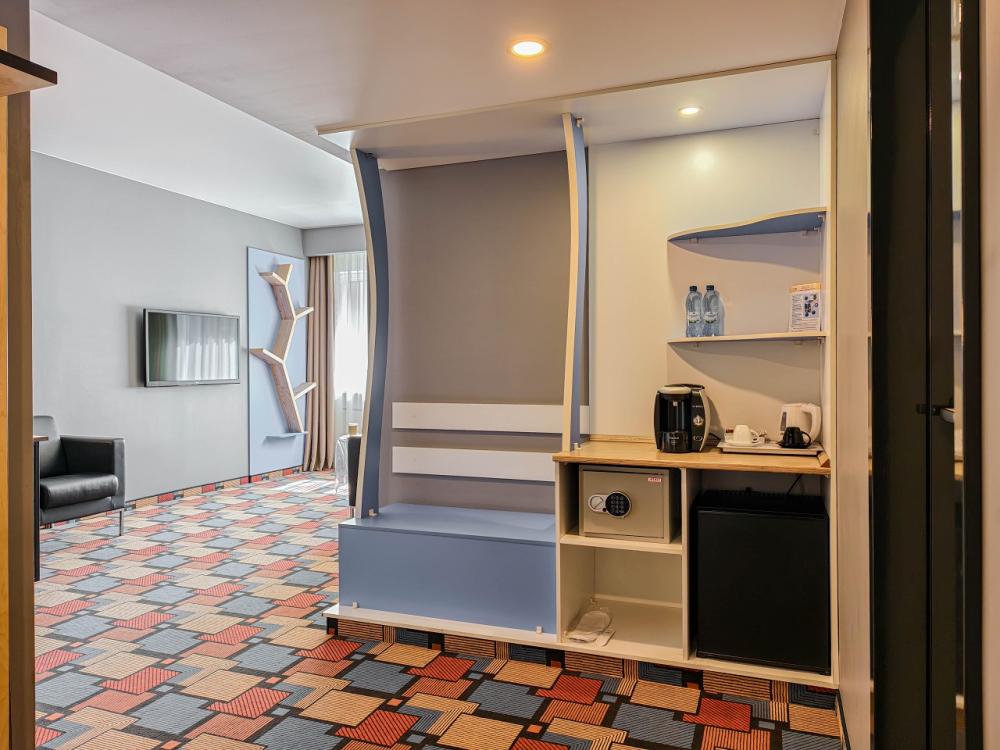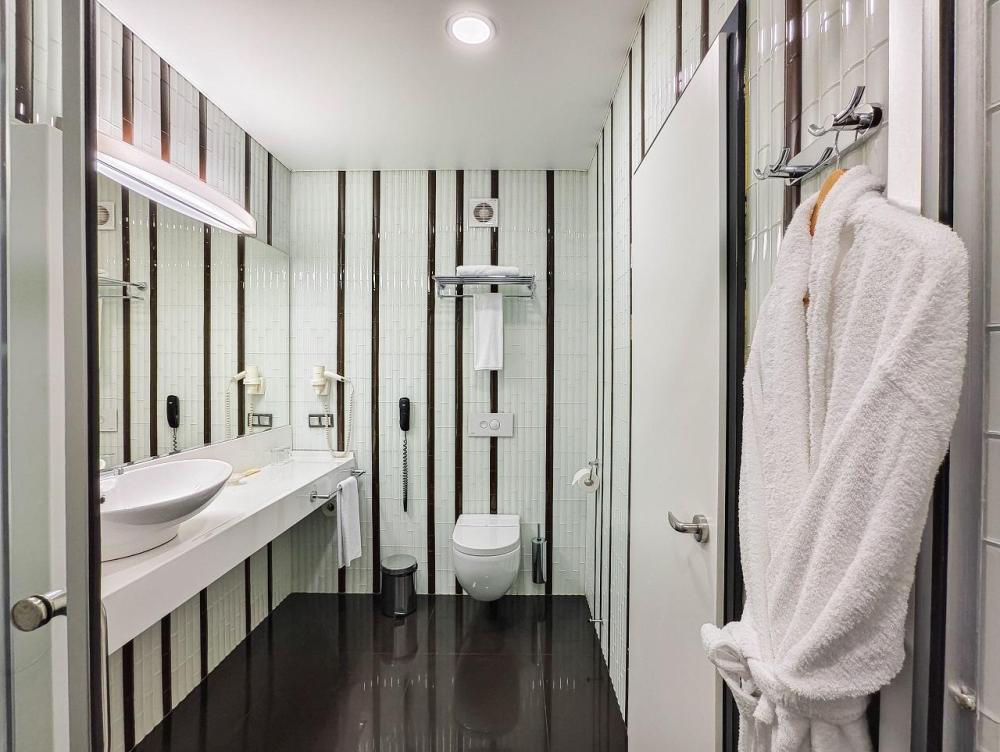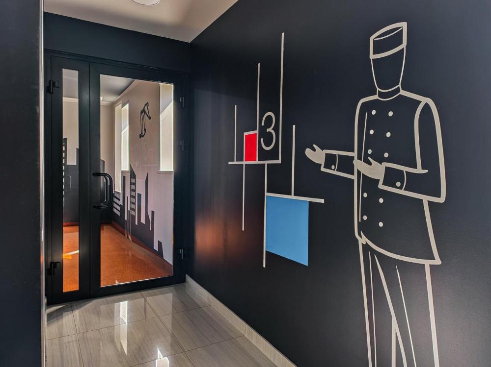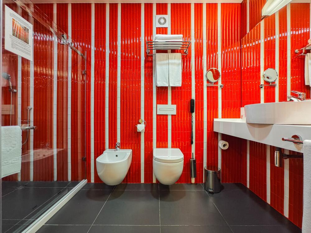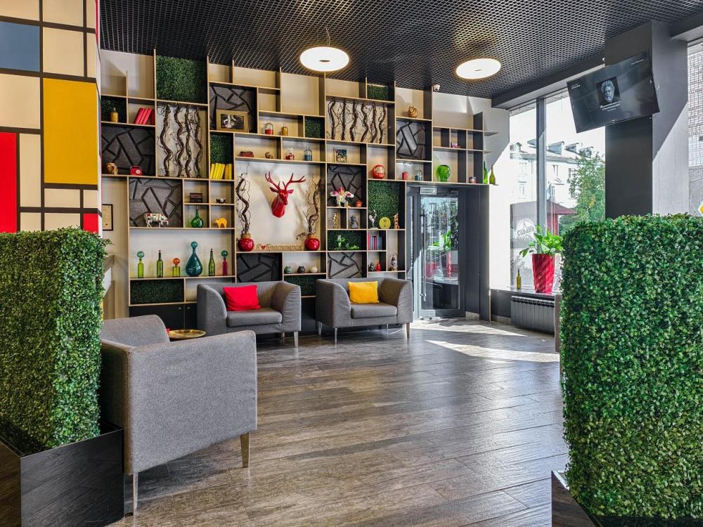 В номере: двуспальная кровать и диван-кровать, Индивидуальная вентиляция, Мини–холодильник, Мягкая мебель, Кондиционер, Двуспальная кровать, Чайник, Халаты и тапочки, Набор гостеприимства с чайными принадлежностями, Яркий стильный интерьер, Кабельное ТВ, TV диагональю 47, 42", Душевая кабина, Фен, Гостиничная парфюмерия.