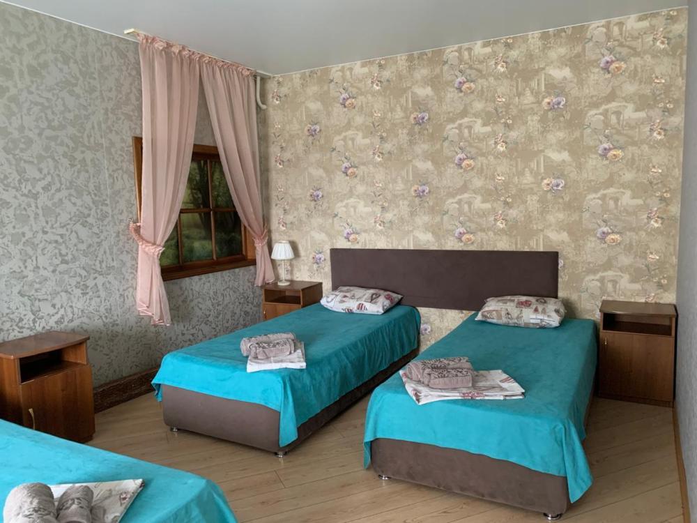 В номере три односпальные кровати, холодильник, шкаф для хранения вещей, прикроватные тумбы. Санузел на этаже рассчитан на несколько номеров. Спальное место с собственным комплектом постельного белья и полотенца.