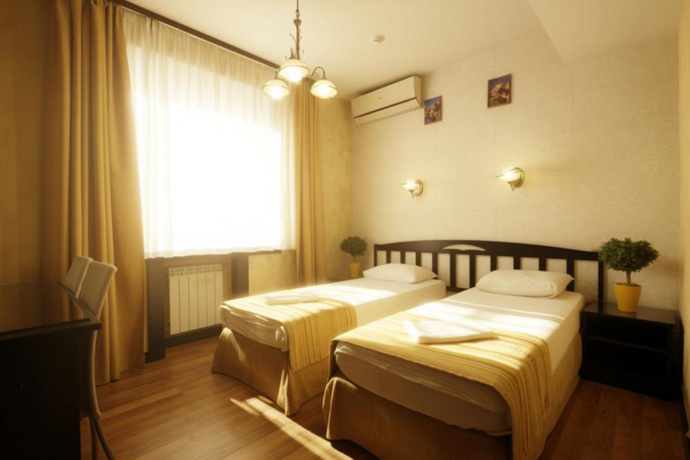 В номере: 2 односпальные кровати, функциональная мебель, рабочая зона, WiFi, свой санузел с водонагревателем и душем.