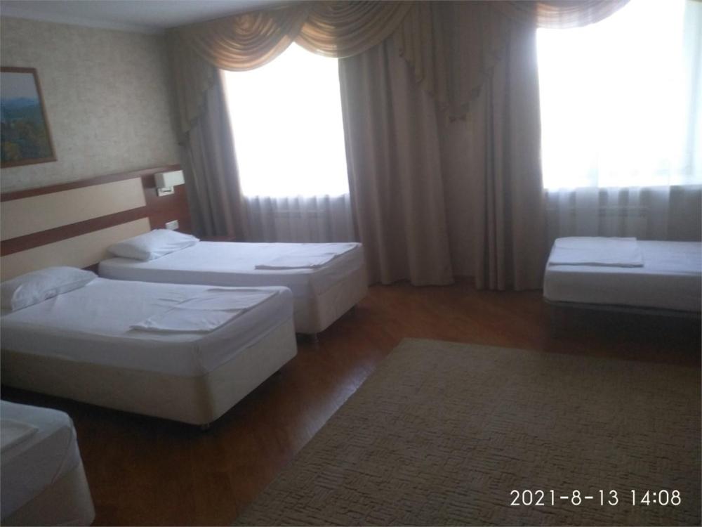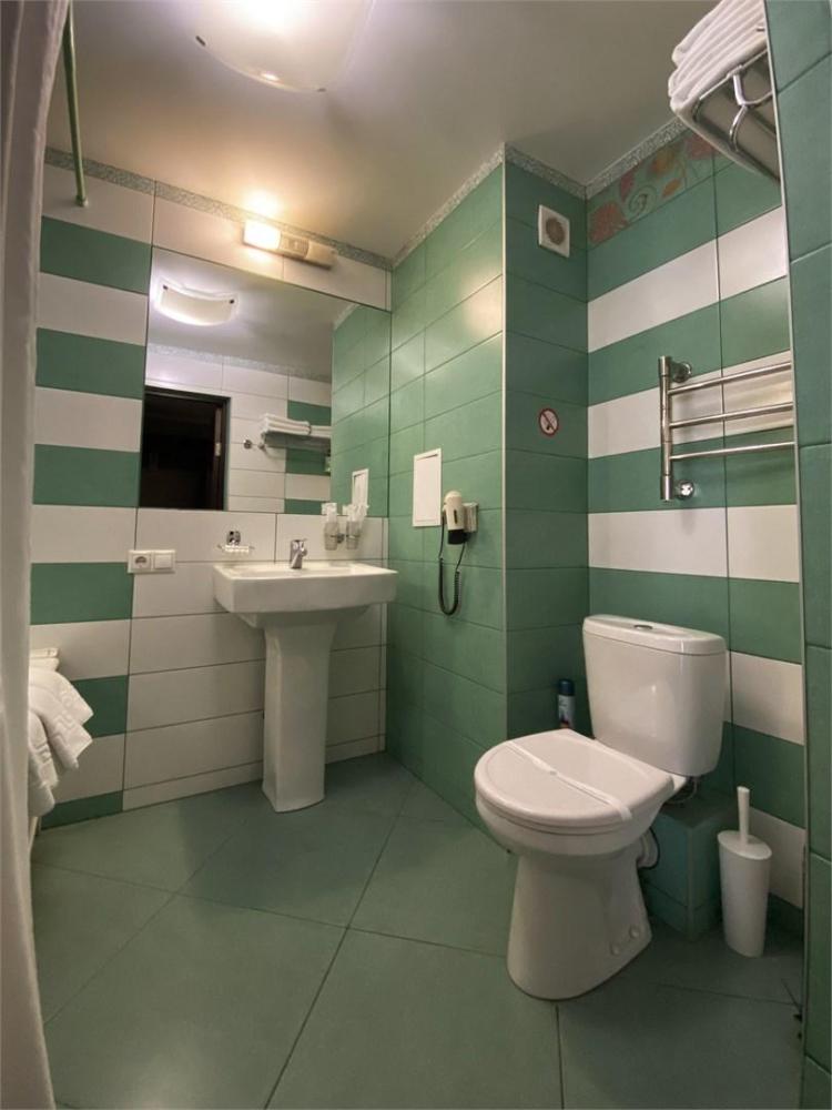 Просторный однокомнатный номер площадью 45 кв.м. с тремя раздельными кроватями. В номере есть балкон. Санузел площадью 5 кв.м. оборудован ванной.