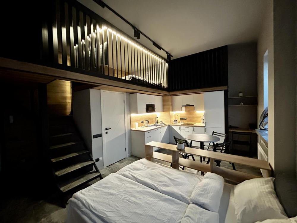 Двухэтажная студия, в которую влюбляешься с первого взгляда Найдите свой источник вдохновения каждый день! Мы представляем эксклюзивную двухуровневую студию с дизайном, который не оставит вас равнодушным. Что вас ждет: · Ощущение простора: Двухуровневая планировка визуально и функционально разделяет пространство, создавая ощущение простора частного дома. · Дизайн, смелые архитектурные решения, премиальные материалы и внимание к деталям подчеркнут Ваш безупречный вкус. · Атмосфера для жизни: Здесь одинаково приятно работать, творчески отдыхать, принимать гостей или просто наслаждаться тишиной за книгой. · Идеальный баланс: Открытость гостиной и камерность спальной зоны на втором этаже — лучший компромисс для динамичной и уютной жизни. Бронируйте и почувствуйте эту магию лично. Начните свой отдых в окружении прекрасного.