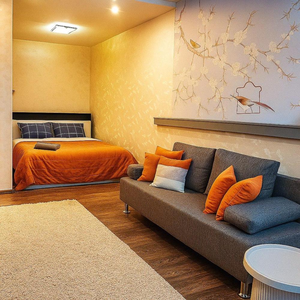 Однокомнатная квартира в новом доме недалеко от центра города. В квартире три раздельных спальных места, 2 двухспальных кроватью и, а также диван. В квартире могут с комфортом разместить 6 человек. Кухонное оборудование: Полностью укомплектованная кухня включает варочную поверхность, духовой шкаф, холодильник, чайник и микроволновку. Гигиенические принадлежности: Для вашего удобства мы предоставляем все необходимое для личной гигиены. Квартира находится в тихом дворе неподалеку от администрации города, ТЦ Атолл, ТЦ Пирамида, рядом магазины и аптеки, рынок. До значимых объектов города можно добраться в течение 10 минут.