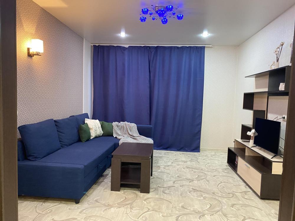 Квартира расположена в центре города, рядом с ТЦ «Атолл» и ТЦ «Пирамида», а также администрацией города и другими важными объектами. Это максимально удобное место для проживания. В квартире три раздельные комнаты. В одной — двуспальная кровать, в двух других — раскладные диваны. Вместительность — до шести человек. Мы позаботились о вашем комфорте. В квартире есть чистое постельное белье, полотенца, средства личной гигиены, Wi-Fi и телевизор. Для удобства гостей предусмотрены утюг, гладильная доска, стиральная машина и раскладная сушилка для белья. На кухне есть всё необходимое для приготовления еды, быстрого перекуса или отдыха: плита, холодильник, посуда, микроволновка, чайник, чай и сахар.