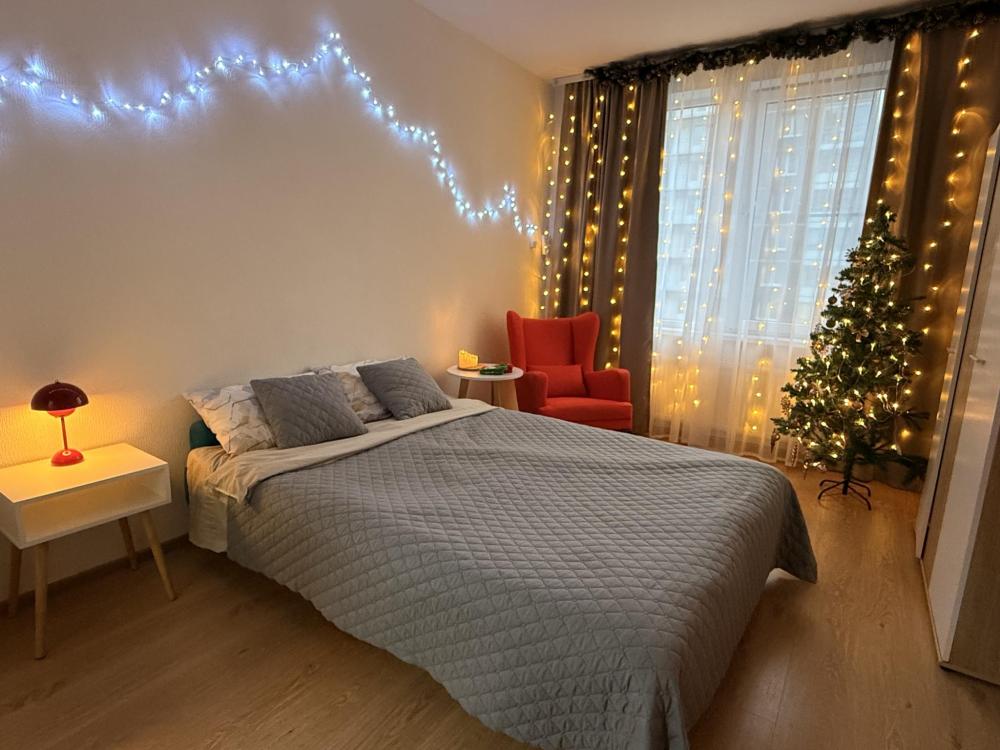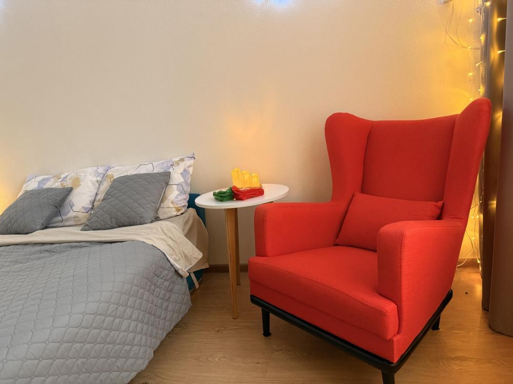 Уютная квартира "Как Дома" В квартире имеется двуспальная кровать с топпером, а также двуспальная тахта на кухне (есть еще и раскладушка для засидевшегося гостя), фeн, стиральная машина + капсулы для стирки, постельное белье и полотенца, шампунь, гель для душа, утюг, гладильная доска. Кухня оснащена индукционной плитой, холодильником, микроволновкой и электрочайником. Также имеется комплект посуды для приготовления и потребления пищи.