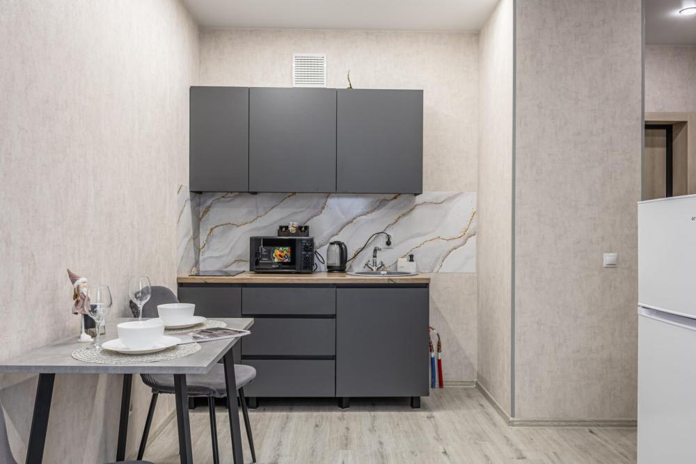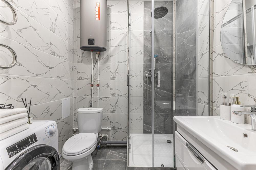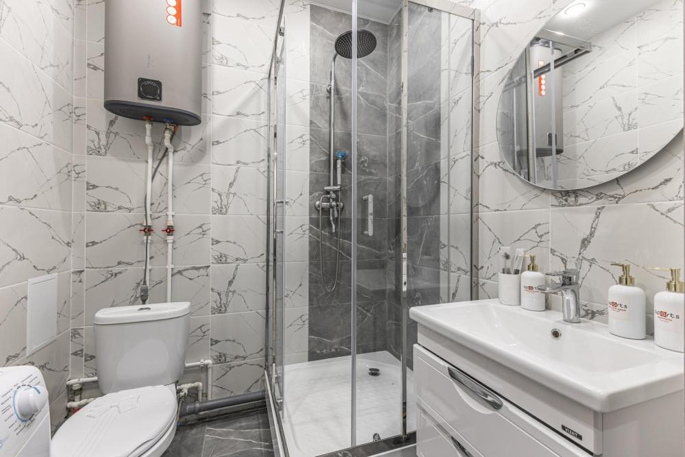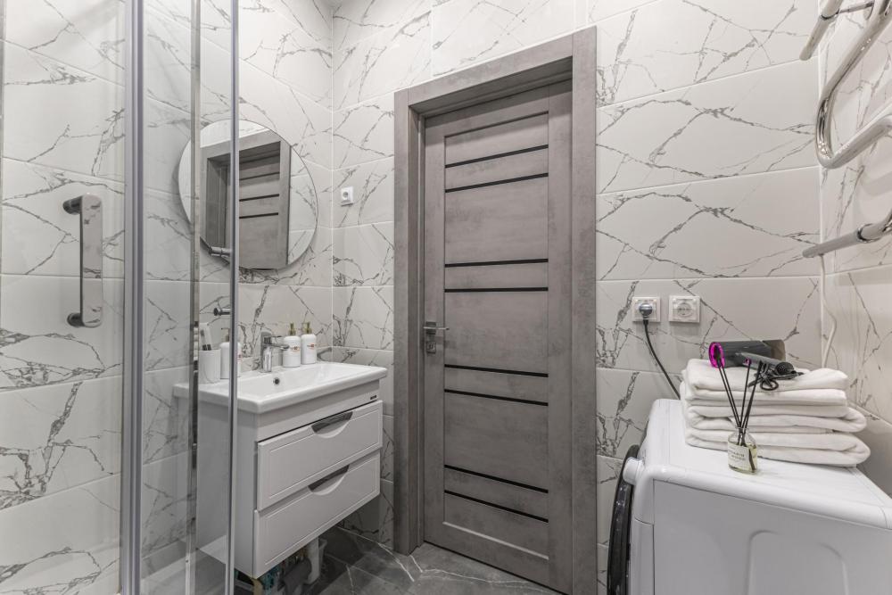 Современный свежий ремонт. Бесплатный WI-FI. В квартире все создано для комфортного проживания: Есть вся необходимая бытовая техника (стиральная машинка, холодильник, плазменный телевизор, микроволновая печь и электрический чайник). Удобная укомплектованная обеденная зона. Комфортная двуспальная кровать с чистым белым постельным бельем для крепкого сна. Душевая кабина + свежие полотенца, фен, утюг, водонагреватель.