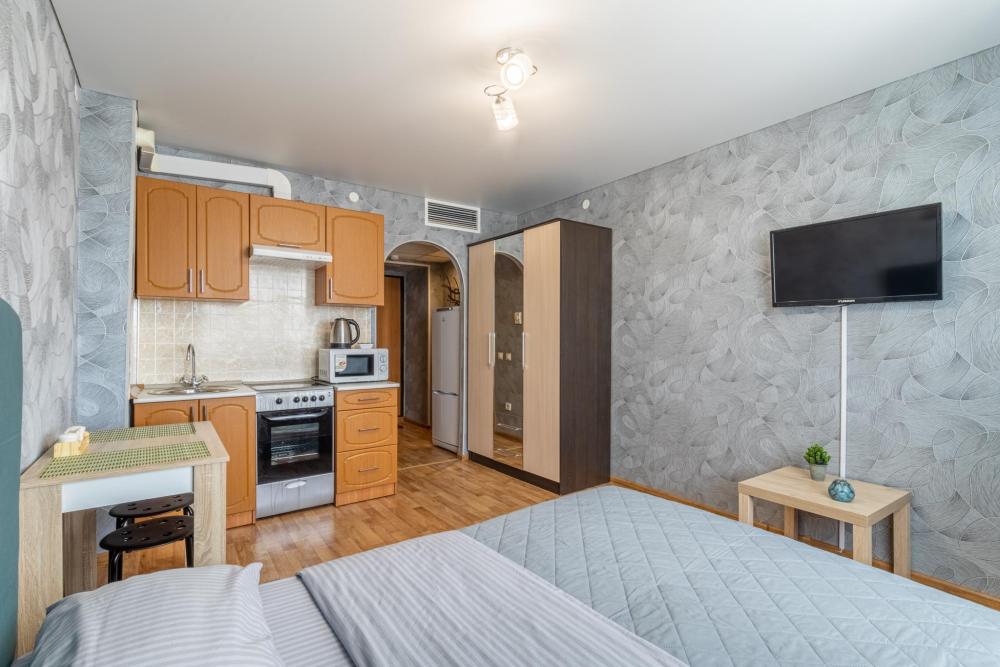 В апартаментах есть все необходимое для комфортного проживания как одного гостя так и семьи: В апартаментах есть: - удобная двуспальная кровать - диван - кухня оснащенная современной бытовой техникой - ванная комната с набором базовых гигиенических принадлежностей - стабильный высокоскоростной Wi-Fi - ЖК телевизор