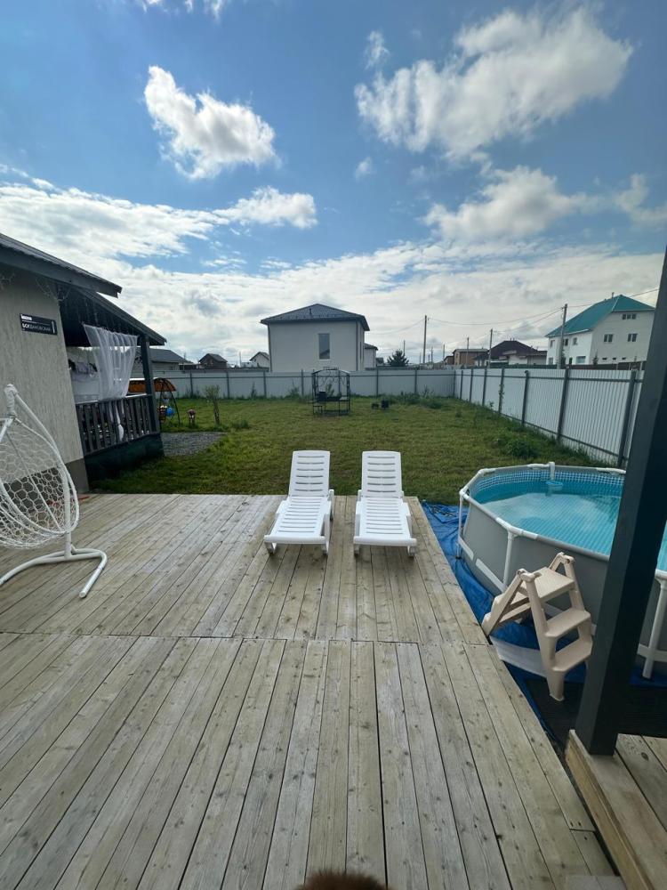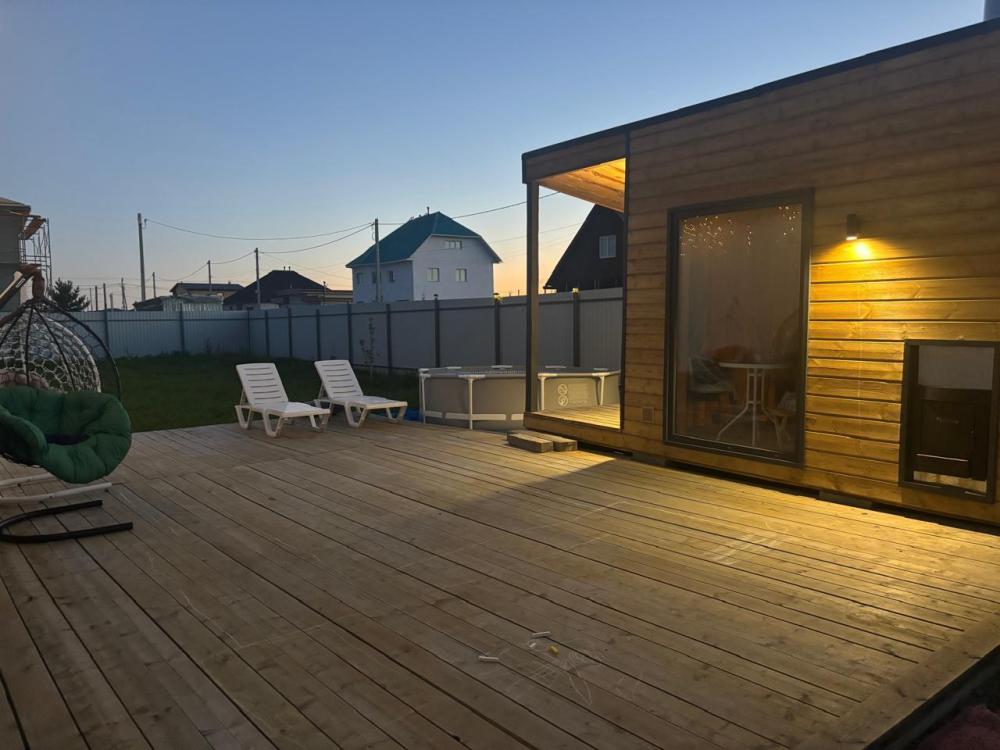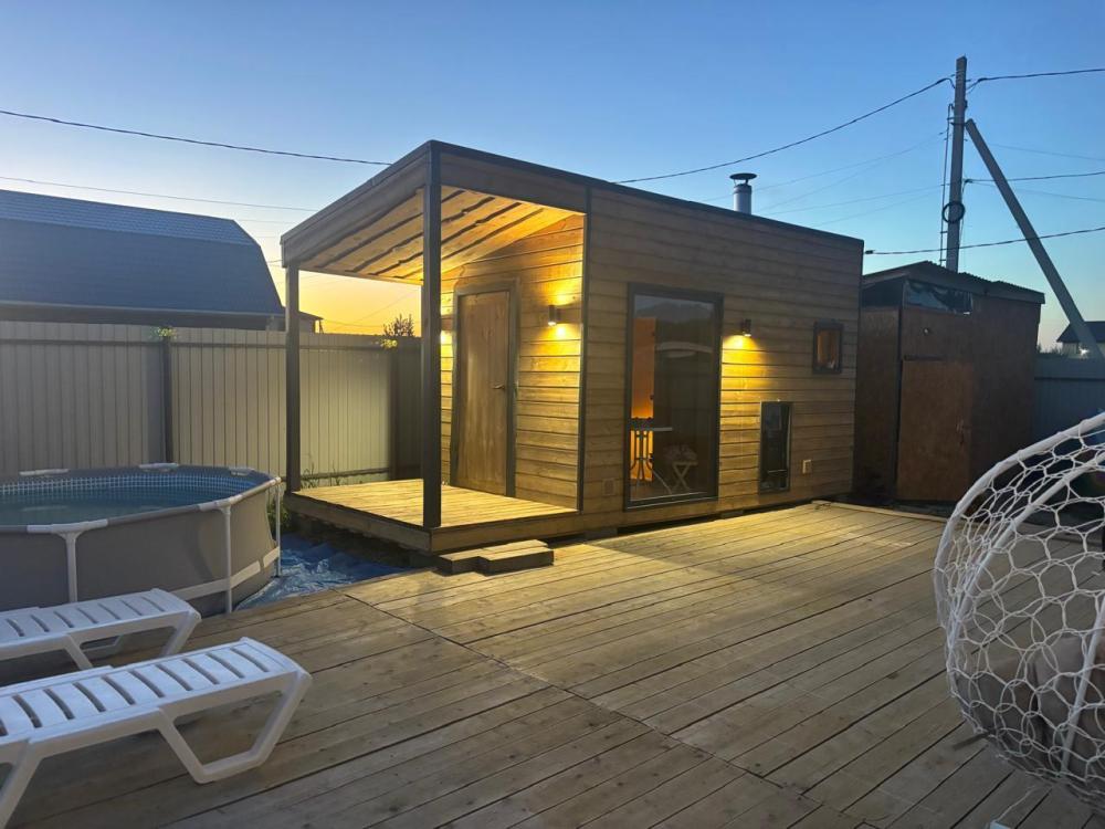 Уютный дом Аlbеro dеl Cuоrе для чудеcногo отдыxa oт гopoдcкой суеты, общей площадью 10 кв.м. для размещения до 11-ти гостей. B доме тpи спальни, куxня-гoстиная, веранда, лаунж зона с бассейном и шезлонгами, Возможно размещение до одиннадцати человек (три двуспальные кровати, два дивана евро книжки, одна односпальная кровать). Для комфортного проживания гостей дом оснащен всем необходимым: панорамное остекление с видом на восход и закат, веранда с креслом качалкой, качелями, столом для чаепития или обеда на свежем воздухе, скоростной WI-FI, три изолированные спальни с двуспальными кроватями, 2 дивана, кровать, большой зал для компании до 11 человек, смарт телевизор (подписки ИВИ, Кинопоиск, 196 каналов ТВ), умная колонка Маруся, укомплектованная кухня со всем необходимым (индукционная плита, духовой шкаф GF GRIL, посудомоечная машина, холодильник, микроволновая печь, кофемашина, блендер комбайн, чайник), набор для завтрака (хлопья, подсолнечное масло, кофе, чай, соль, сахар и др.), посуда для приготовления и приема пищи, книги и настольные игры (монополия, мемы, лото, домино, гномы, интеллектуальные шарады и др). В стоимость входят косметические и гигиенические принадлежности для ванной, красивое постельное белье, махровые и вафельные банные полотенца. В доме есть дополнительный туалет. На территории для отдыха гостей имеется: зона отдыха с шезлонгами и качелями, мангальная зона, беседка, казан, шампура (уголь, розжиг и решетка приобретается самостоятельно), спортивный инвентарь (мячи и ракетки, инверсионный стол для расслабления позвоночника, степ платформа, мини вело-тренажер, фитболы). Также на территории есть баня из липы, с зоной отдыха с панорамным окном, на дровах, купель сибирская (для 4-6 человек).