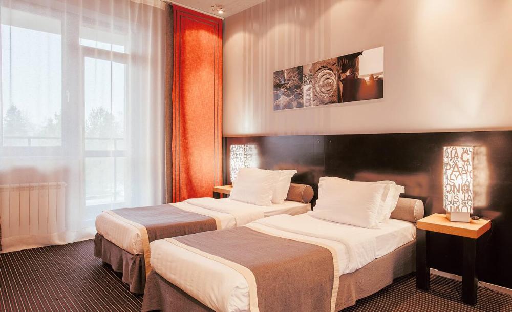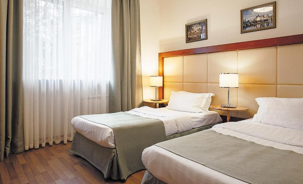 Номер с двумя односпальными кроватями, с/у с ванной, без балкона. Площадь 22 м2. В номере: кондиционер, ЖК-телевизором 26” с центральным телевидением, бесплатным Wi-Fi, сейфом, фен, халат, тапочки.