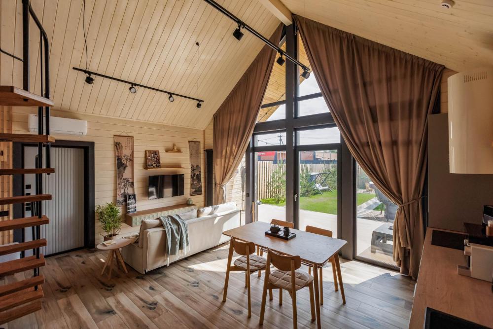 Коттедж площадью 58 кв. м. подойдет для комфортного размещения 6 человек на основных местах. В доме имеются две уютные спальни с двуспальными кроватями и просторная гостиная с раскладным диваном . Для комфортного проживания доступны: WI-FI и TV, фен, утюг. На кухне: посудомоечная машина, холодильник, микроволновая печь, капсульная кофемашина, тостер, плита, чайник, посуда и кухонные принадлежности. Современный санузел с душевой кабиной и теплым полом. Постельное белье, полотенца и средства личной гигиены предоставляются. В доме панорамные окна с захватывающим видом на горнолыжный курорт. Есть уличная беседка с мангальной зоной, шампурами и решеткой для приготовления блюд на свежем воздухе.