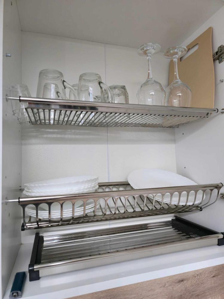 — Полностью оборудована: холодильник, микроволновка, электрический чайник, вся необходимая посуда и столовые приборы