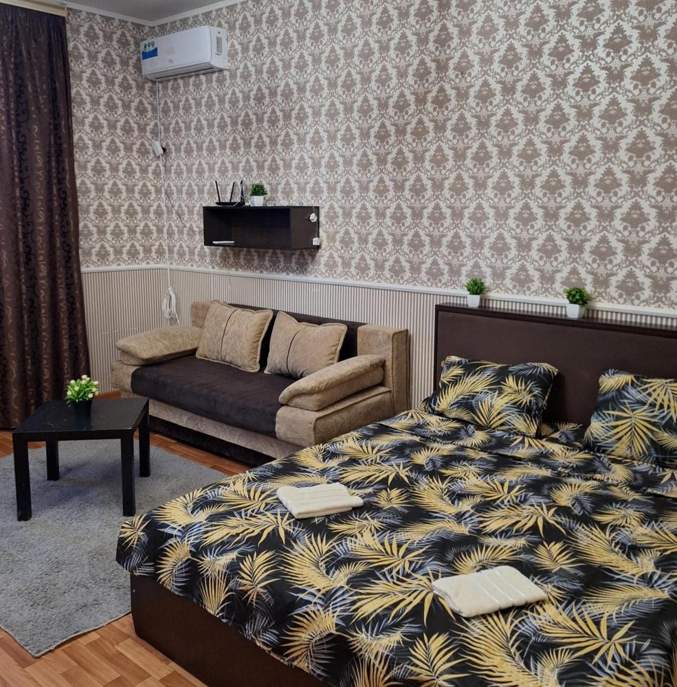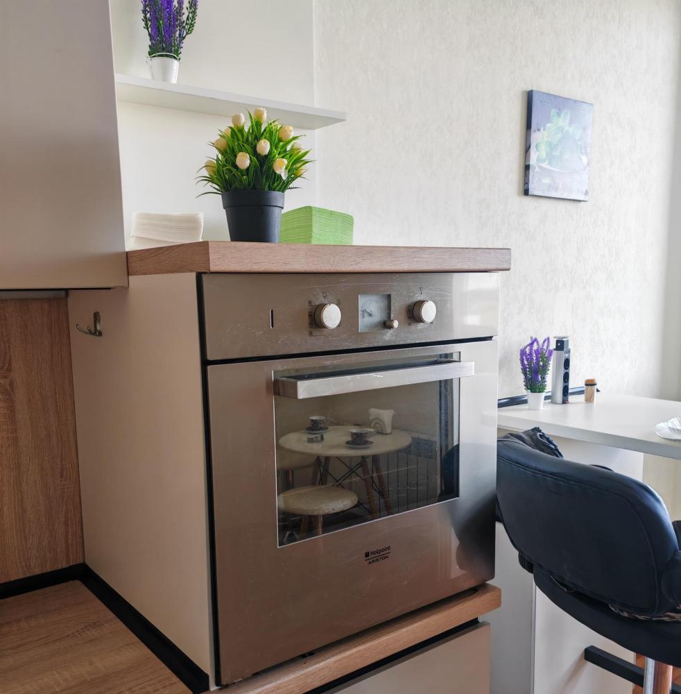 Квартира с видом на достопримечательность города на проспекте Победы. Спальные места (вместимость до 4 гостей): двуспальная кровать 160×200 см, раскладной диван 140×200 см. В апартаментах полностью оборудованная кухня: посудомоечная машина; фильтр для воды (встроенный), холодильник, варочная панель, микроволновая печь, чайник, стиральная машина, полный набор посуды, чай/кофе/сахар. Дополнительные удобства: телевизор и Wi-Fi, сушилка для белья, гладильные принадлежности, фен, качественное постельное белье, мягкие полотенца, средства гигиены.