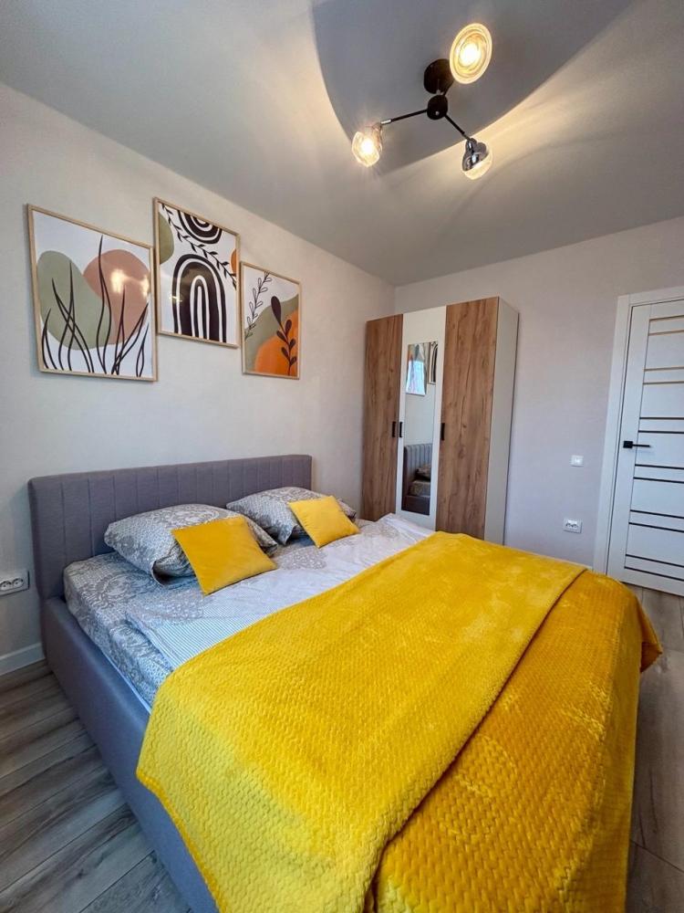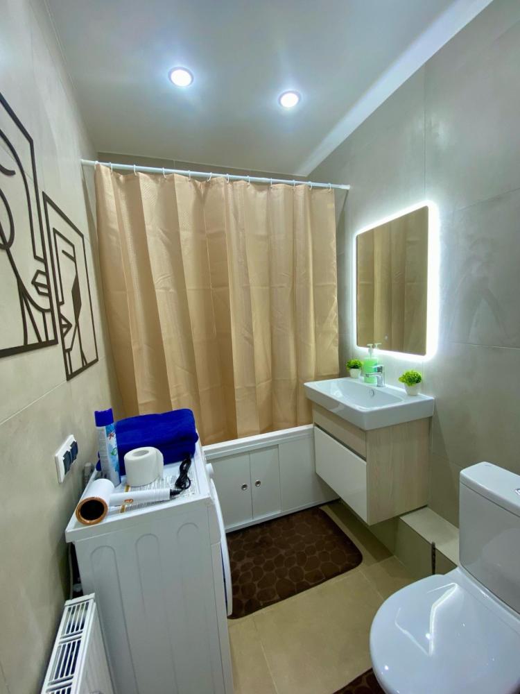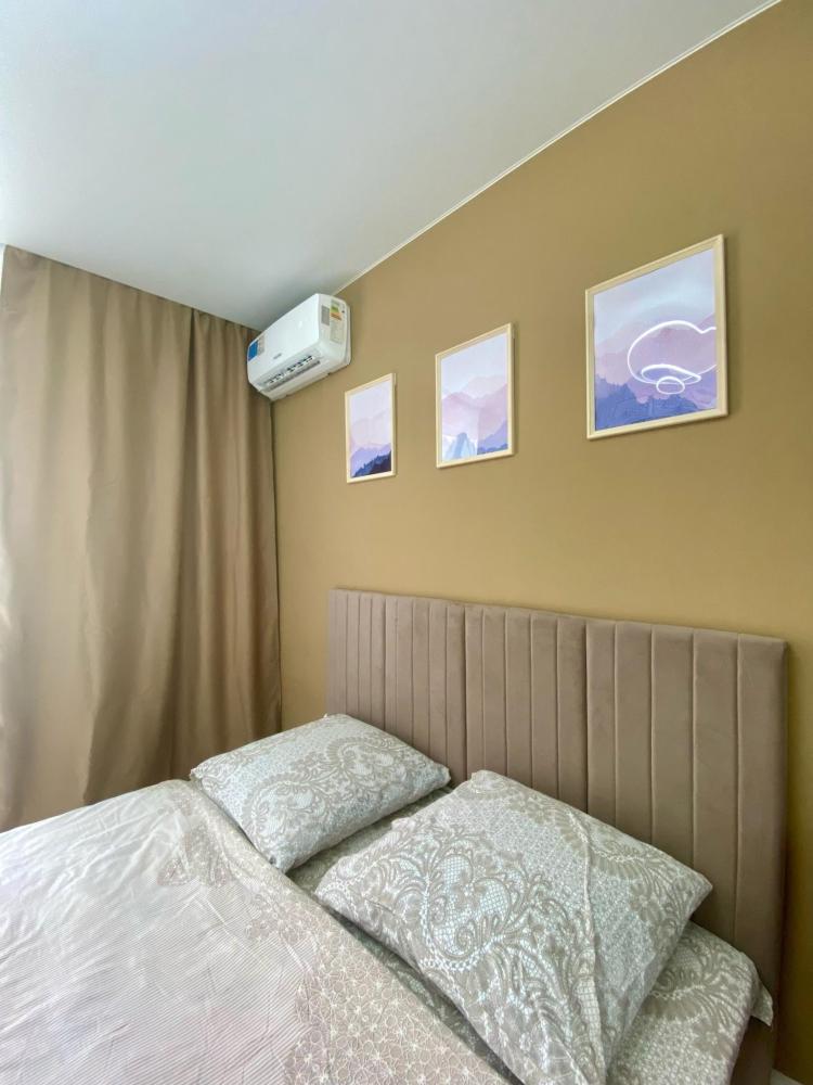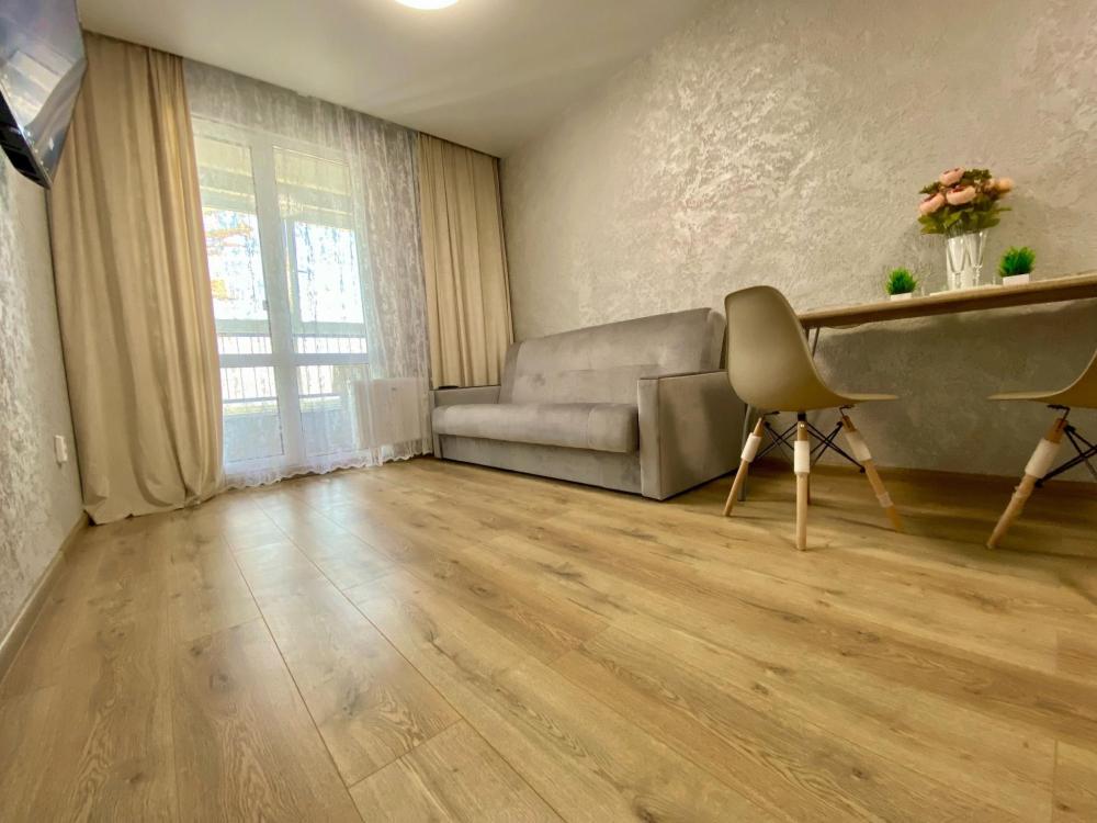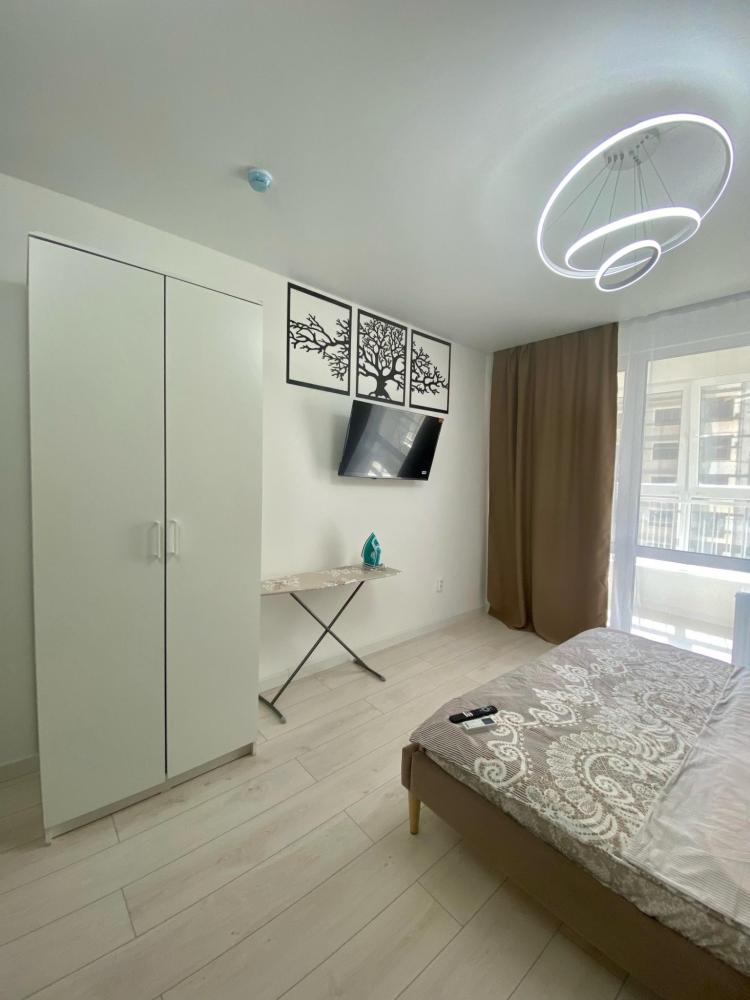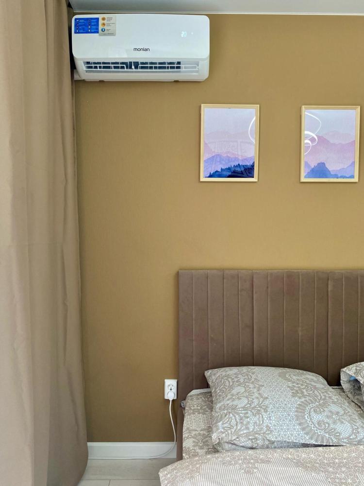 Апартаменты студия для 2 гостей. Спальные места: двуспальная кровать. В квартире есть всё для комфортного проживания. Посуда, столовые приборы, постельное бельё, телевизор SMART TV, wifi, утюг и доска, чистые полотенца, холодильник, кондиционер, микроволновка, чай , кофе, сахар.