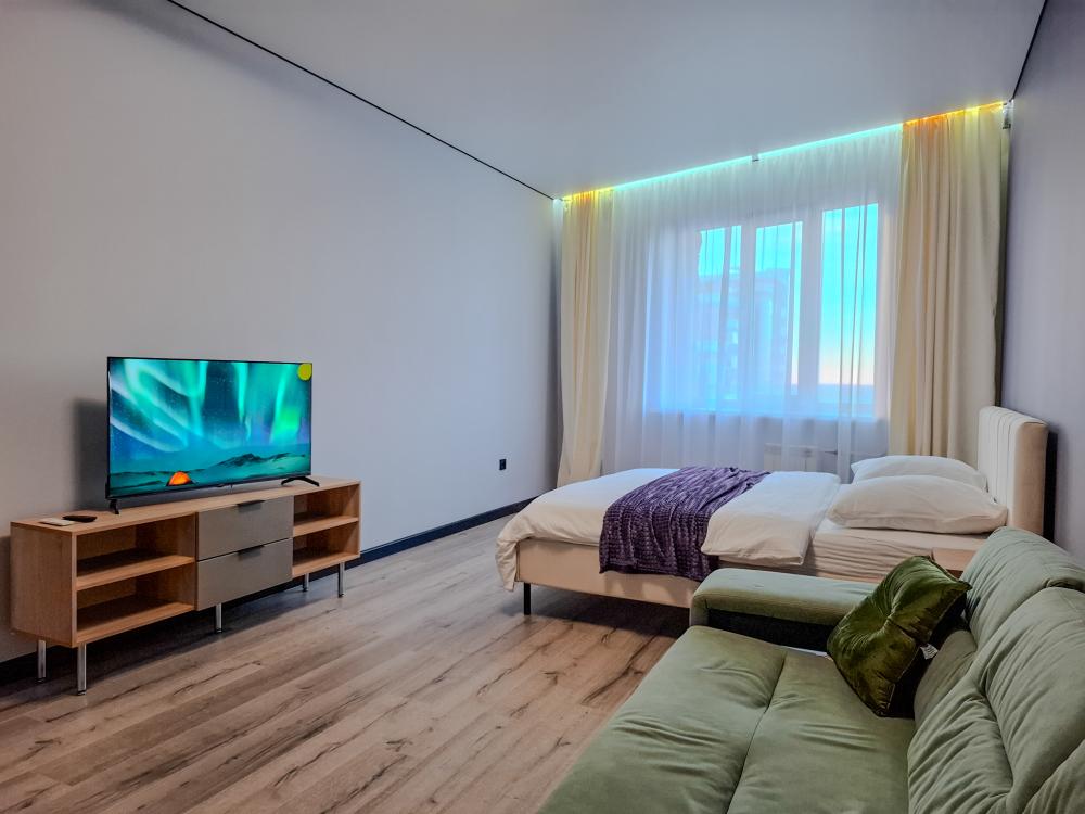 Мы рады приветствовать вас в сети посуточных квартир CheckInn! 2х комнатная квартира с изолированными комнатами в новом современном районе пр. Дериглазова. В шаговой доступности от жилья Супермаркет Европа, Магнит, 5 Пятерочка, К&Б, кафе, БургерКинг.15-20 минут до центра на общественном транспорте, остановка рядом с домом. Парковка во дворе и перед домом. Всегда есть свободные места. Во дворе есть детская площадка. Спальные места: Двуспальная кровать (160х200)Удобный раскладной диван в другой комнате (160х200)В квартире есть все необходимое для проживания: Оборудованная кухня (холодильник, варочная панель, микроволновка, чайник, посуда для готовки и сервировки) чай, кофе, сахар. Стиральная машинка, сушилка, гладильная доска, утюг, фен, телевизор со смарт-приставкой, wi-fi роутер. Постельное белье и полотенца, жидкое мыло, гель для душа, туалетная бумага.