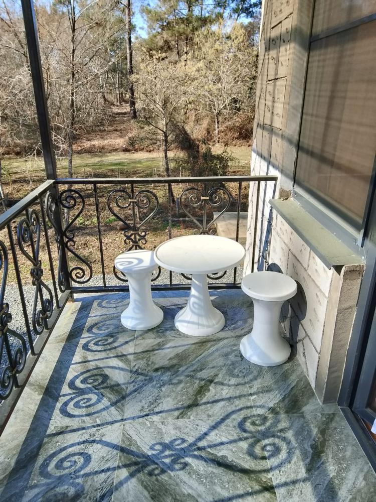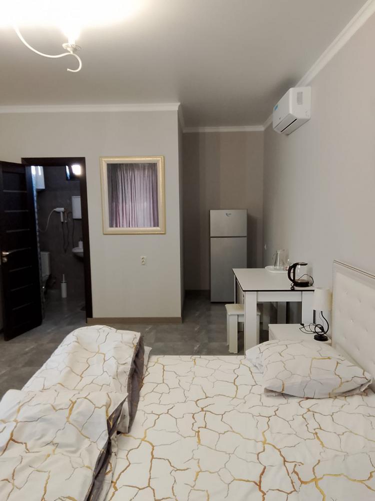 В номере двуспальная кровать, диванчик раскладной, душ, туалет, фен, кондиционер, тв, холодильник, чайник, общий балкон.