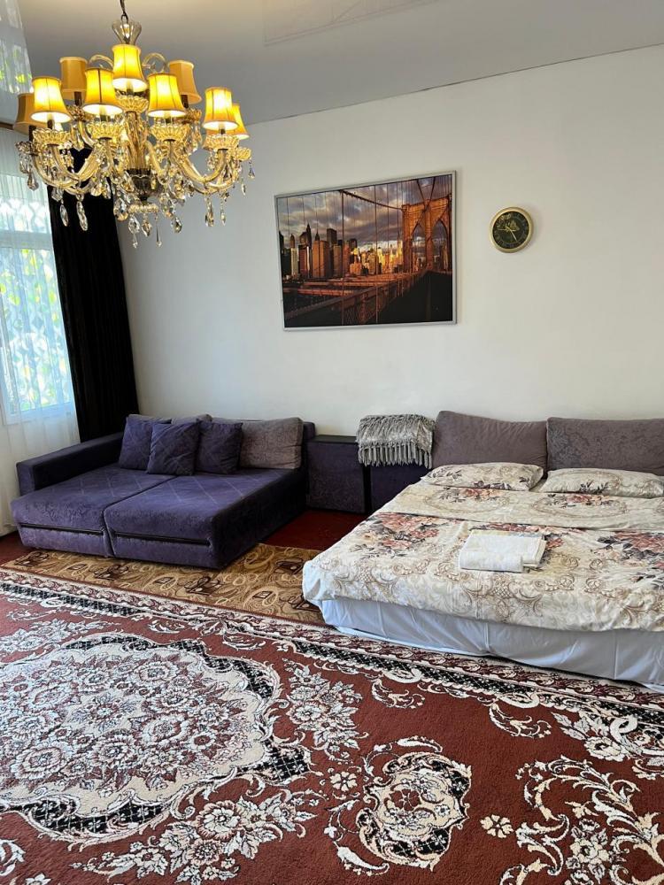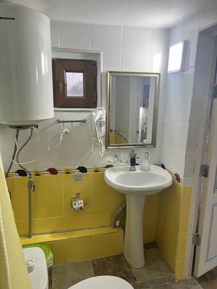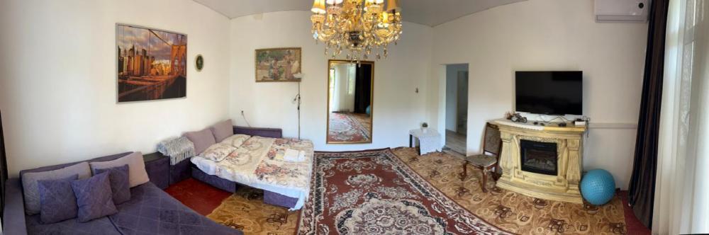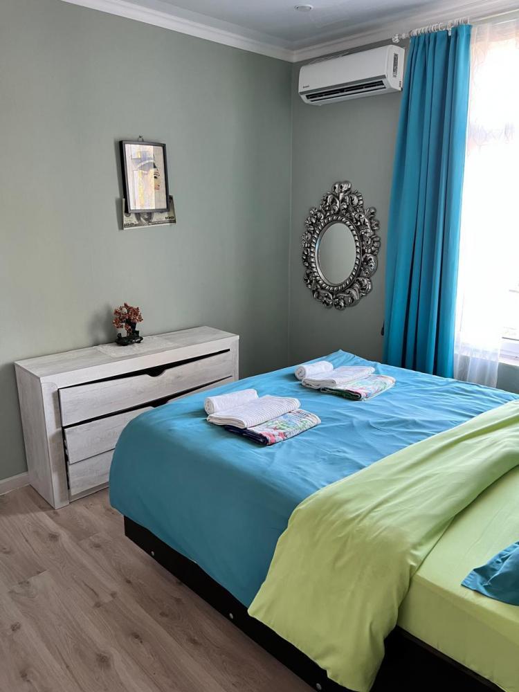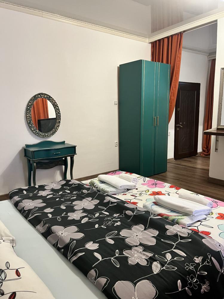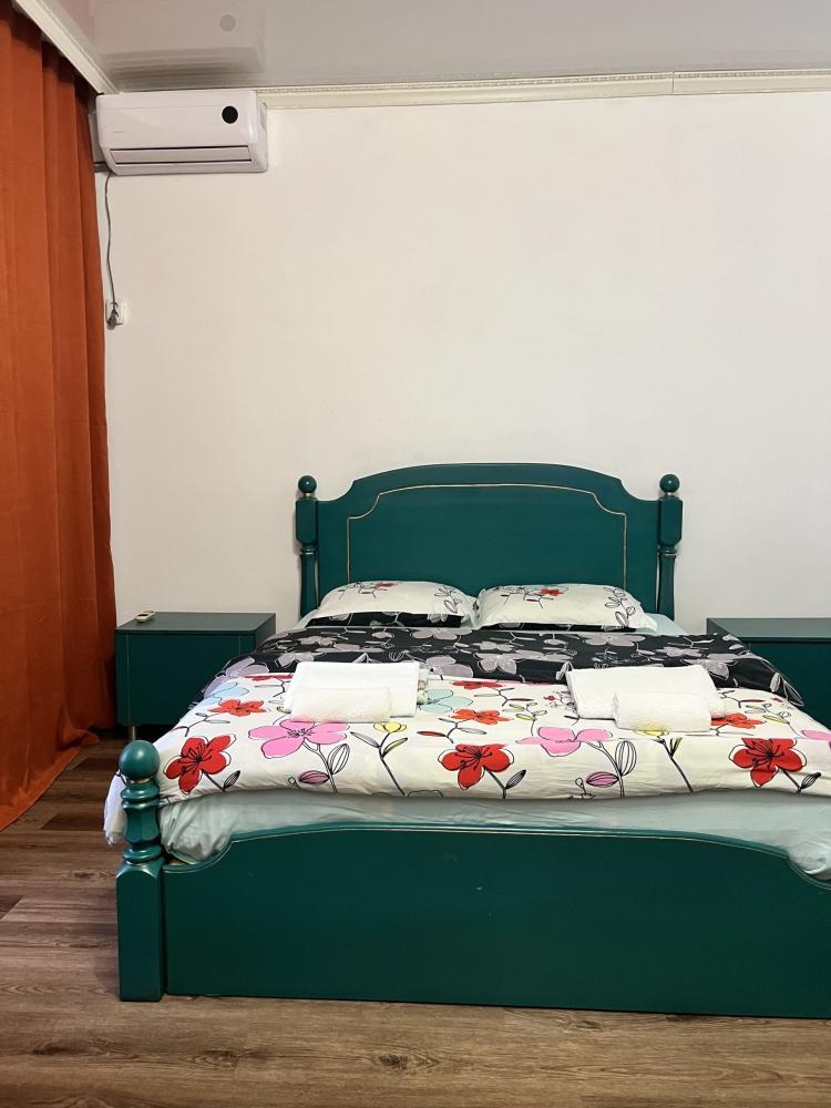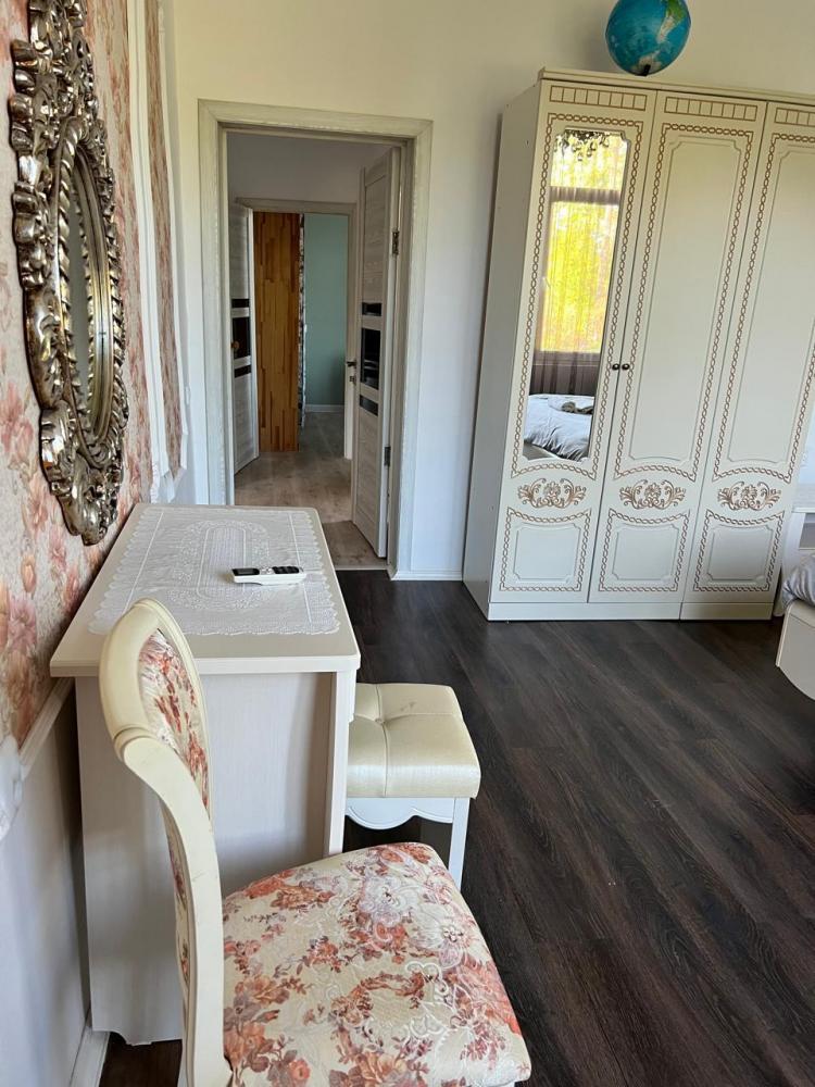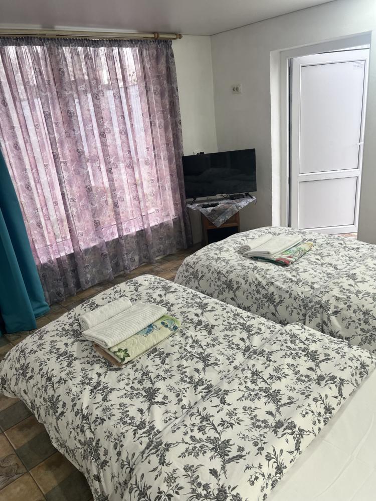 Апартаменты находятся на втором этаже гостевого дома. Апартаменты с отдельным входом. Апартаменты состоят из большой гостиной с двумя большими диванами, журнальным столиком, изолированной комнаты с двуспальной кроватью, шкафом для одежды, двумя тумбочками, еще одной изолированной комнаты с двуспальной кроватью. Отдельный туалет, ванная комната с джакузи, и центральным балконом с видом на сад и море. Имеется веранда с уютными диванчиками. Максимум 6 человек. Кухня общая.