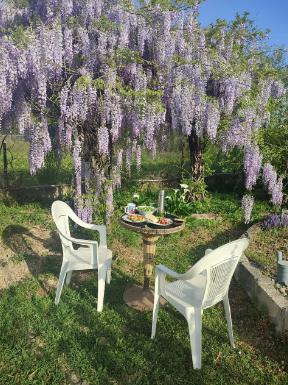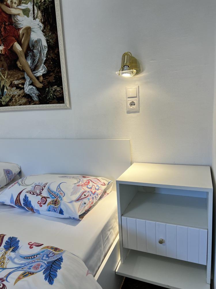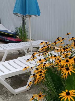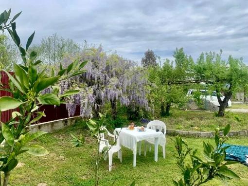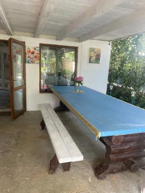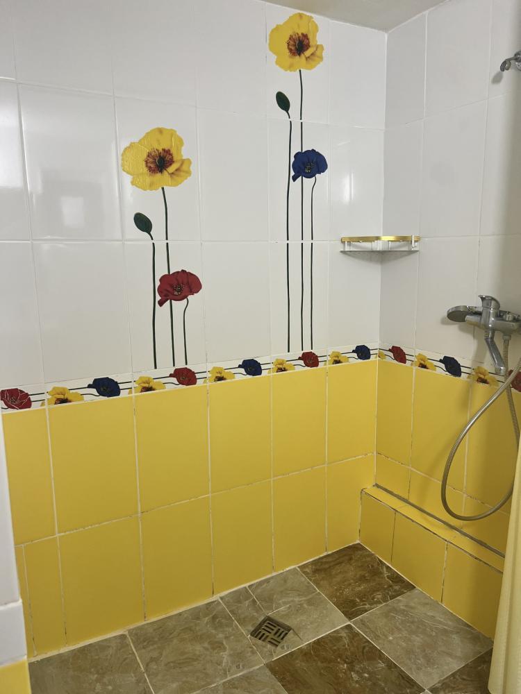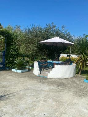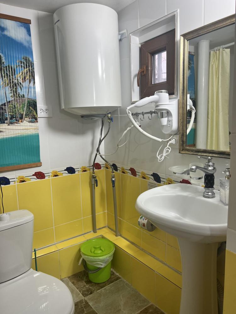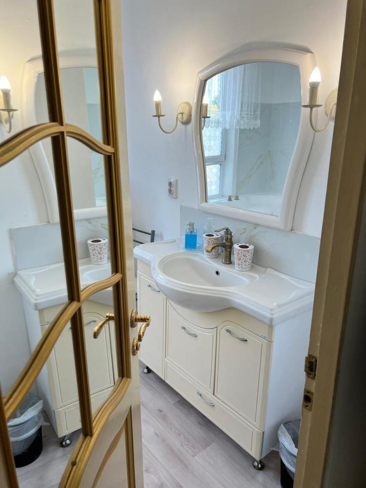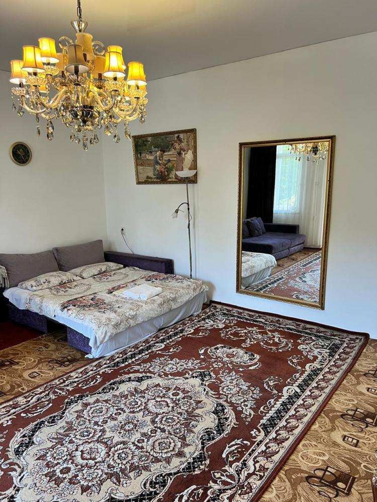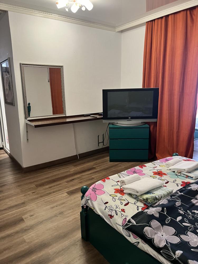 Апартаменты находятся на втором этаже гостевого дома. Апартаменты с отдельным входом. Апартаменты состоят из большой гостиной с двумя большими диванами, журнальным столиком, изолированной комнаты с двуспальной кроватью, шкафом для одежды, двумя тумбочками, еще одной изолированной комнаты с двуспальной кроватью. Отдельный туалет, ванная комната с джакузи, и центральным балконом с видом на сад и море. Имеется веранда с уютными диванчиками. Максимум 6 человек. Кухня общая.
