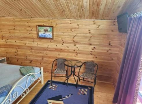 В домиках 2 односпальные кровати или двуспальная, доп место раскладное с 14 лет платно - 500р/сутки. Площадь домиков 25 м2. Есть 2 домика с двухъярусной кроватью. В домиках есть тв.