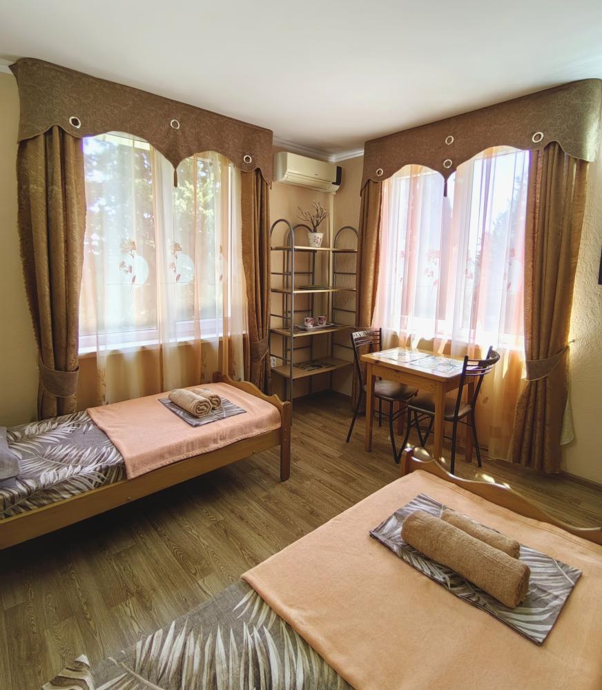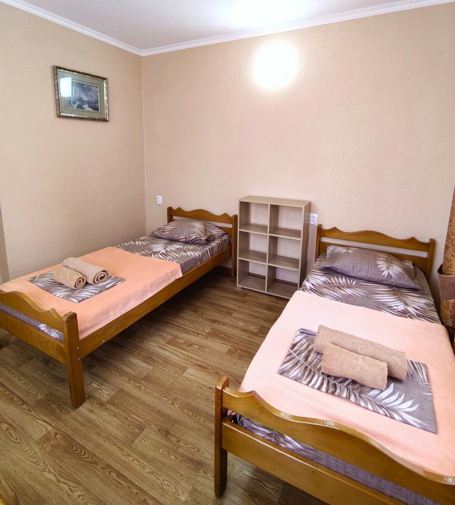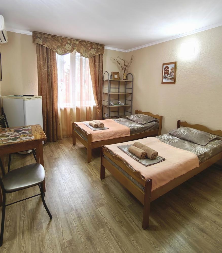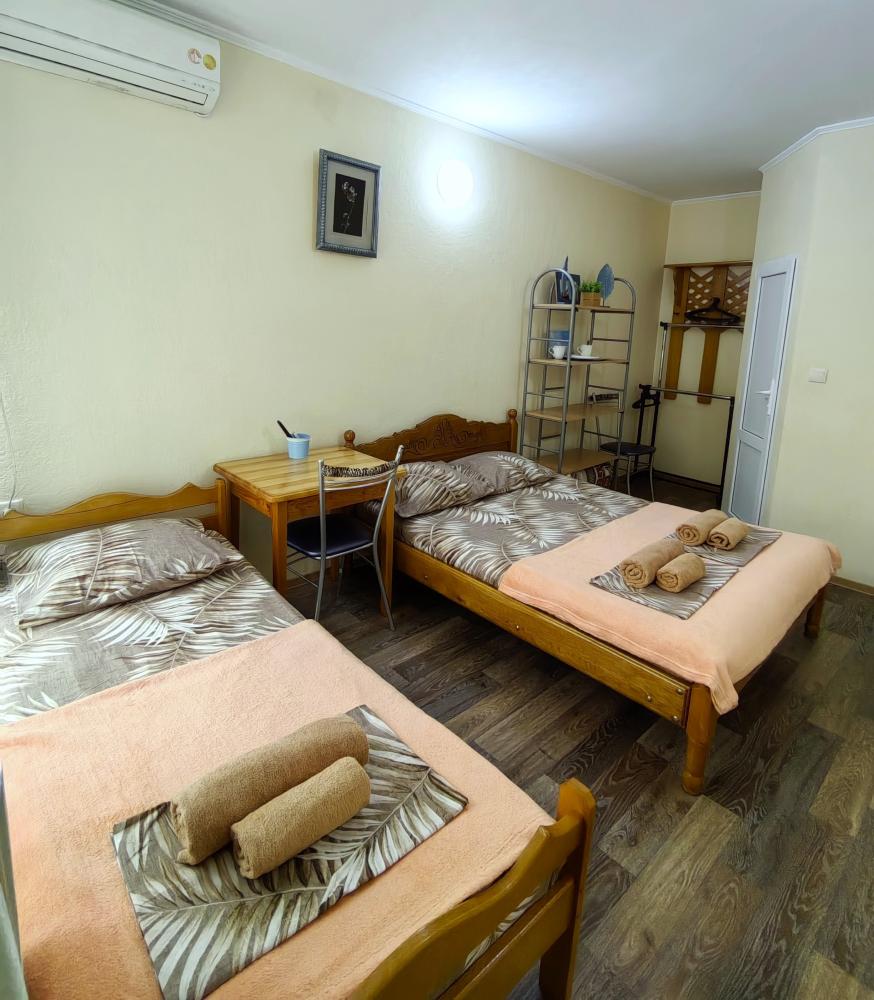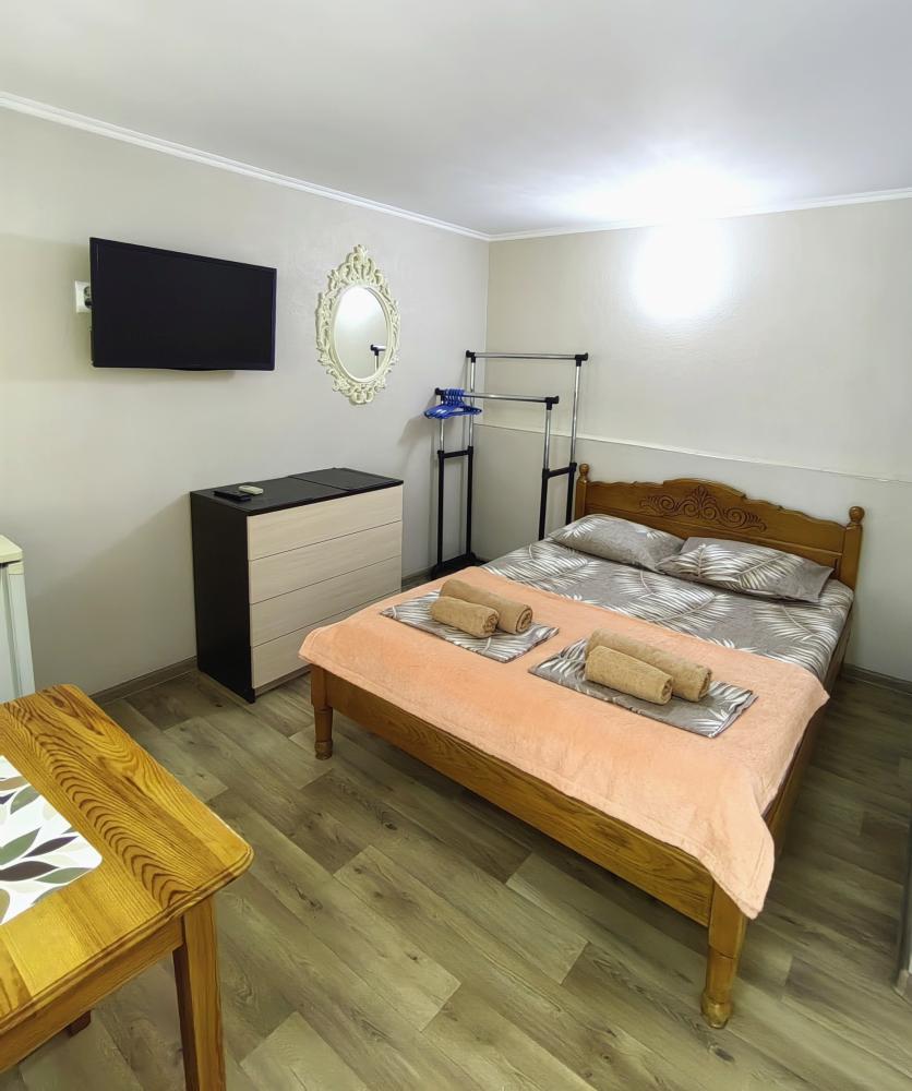 Уютный двухместный номер. Для комфортного проживания в номере телевизор, wi-fi, холодильник, кондиционер, стол, стулья, необходимая посуда. Санузел в номере. Постельное бельё, пледы и полотенца предоставляем. Чайник, гладильная доска и утюг на этаже.